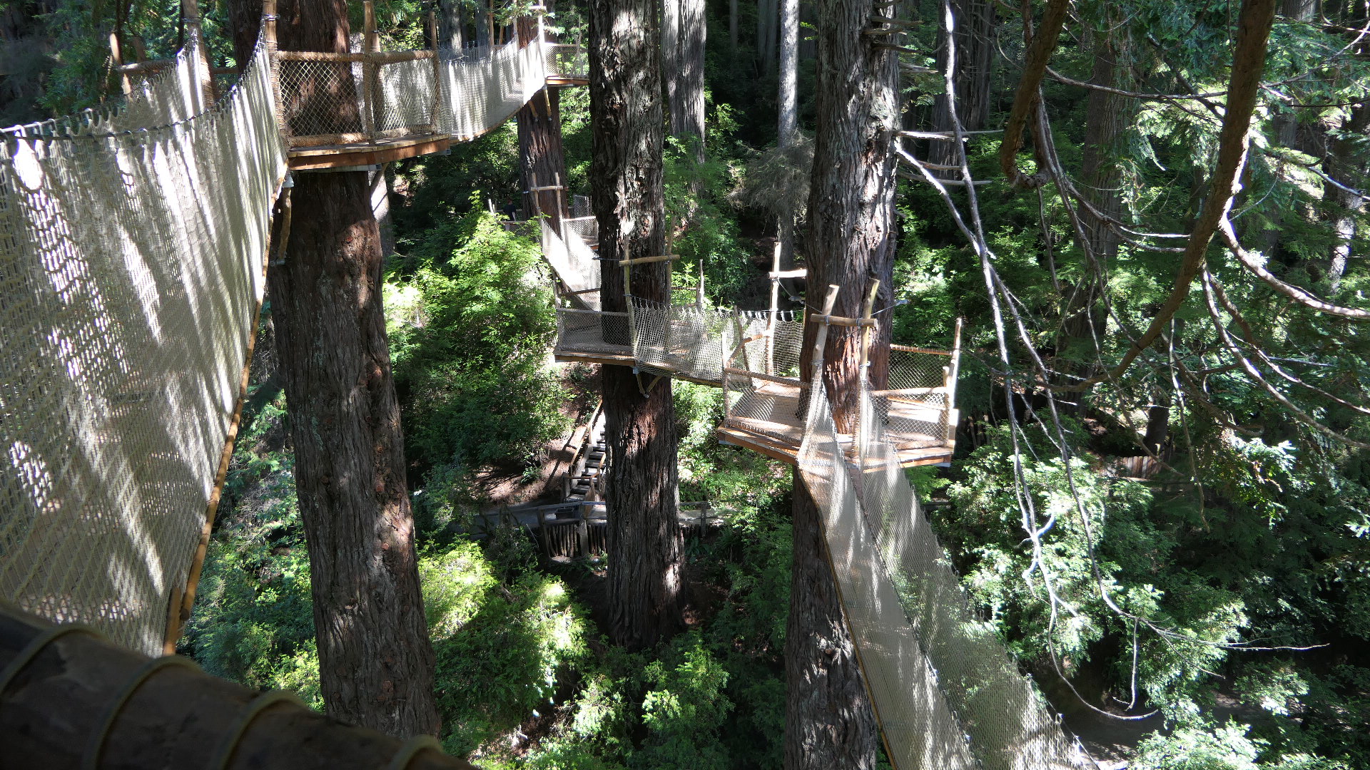 Canopy Trail은 10개의 나무에 전망대를 설치하고 그 사이를 9개의 출렁다리로 연결한 것으로, 높이 50 – 100 ft, 다리의 길이는 23 – 130 ft이다.