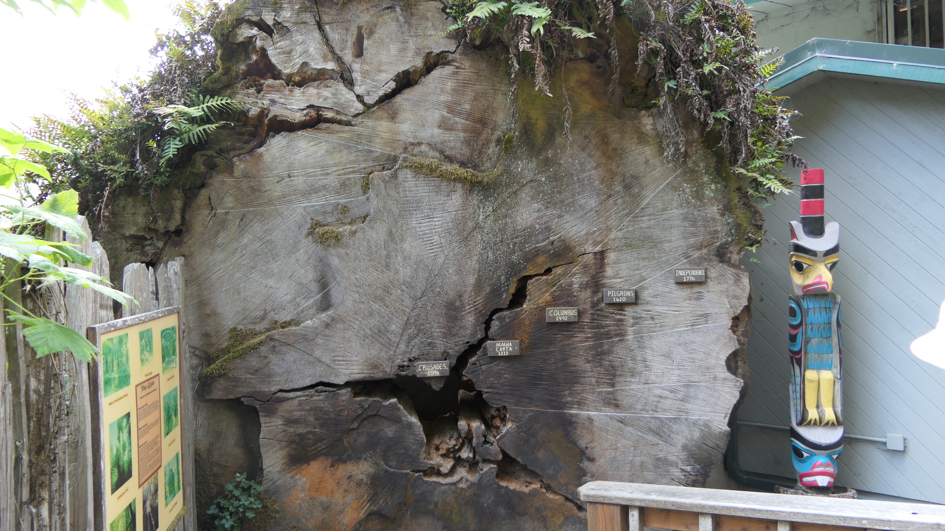 Trail이 끝나고 나가는 길에 나무의 수명과 나이테에 추정된 연도와 이에 연관된 역사적 사건을 표시해 놓은 거대한 Redwood가 있다.