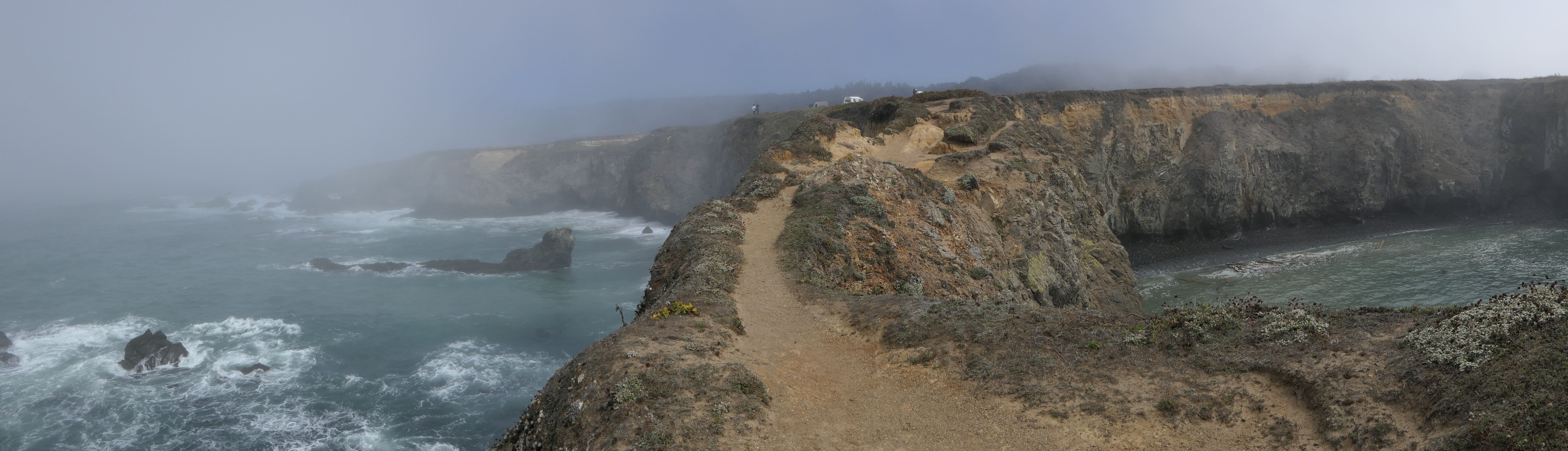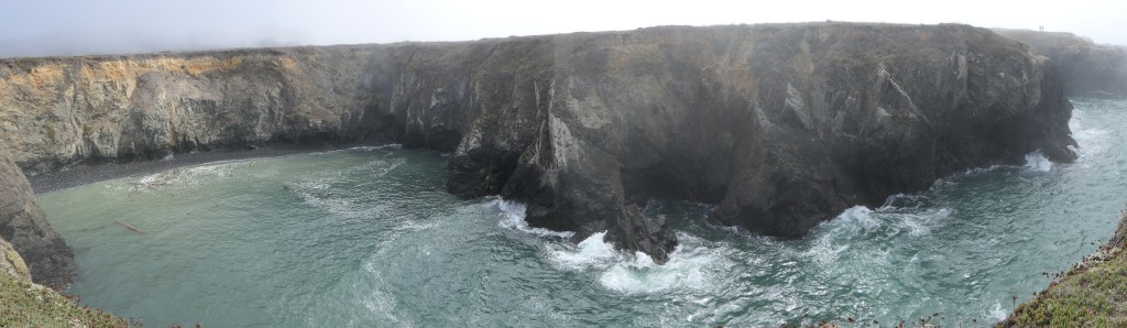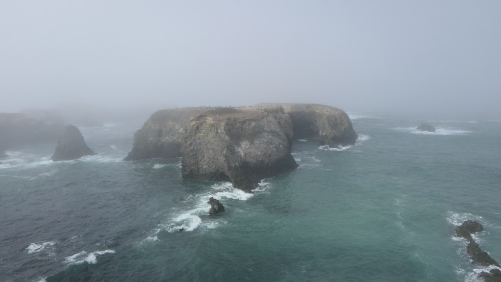 Mendocino는 19세기 중엽에 북가주에 세워진 몇 안 되는 도시 중 하나이다. 외따로 떨어져 있고 구불구불한 산길을 달려야 하기 때문에 선듯 가기가 쉽지 않은 동네이다. 그러나 바위투성이의 거친 해변과 억센 파도가 이루는 묘한 아름다움에 이끌려 모여든 예술가들이 많이 사는 동네로 알려져 있다. 1974년에 이 일대의 곶(headland)을 포함한 347 acre(1.4 Km2)의 Mendocino Headlands State Park이 제정되었다. 우리도 소문으로만 듣던 황량함의 아름다움에 이끌려 방문하여 짙은 안개 속에 Goat Island와 그 북쪽 바다를 찍은 사진을 몇 장 소개한다.