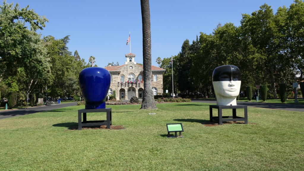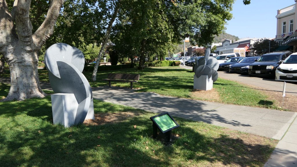 Sonoma County는 인구가 50만이 채 안되는 데 연간 방문객이 천만을 넘는다. 대부분의 방문객들은 Sonoma를 출발점으로 포도원과 시음장을 마치 순례하듯 돌아보곤 한다. 평상시에는 winery 관광 프로그램이 많이 있지만 코로나로 인하여 대부분이 운영되지 않고 있었다. 시내에 종합 시음장들이 몇 있었지만 유명한 포도주는 없었다. 우리는 Sonoma Plaza를 중심으로 Sonoma State Historic Park을 포함한 시내관광이나 하기로 하였다. Sonoma Plaza는 앞에서 간략하게 언급했던 Bear Flag Revolt가 시작된 곳으로 시청과 동상 및 임시 전시회로 설치된 조형물들이 있다. 주변에는 많은 역사적 건물들이 있고 유럽풍의 상점과 식당들이 있어서 관광객들의 발길이 끊이지 않는 곳이다.
