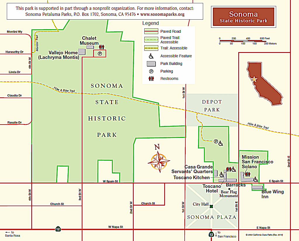 Mission San Francisco Solano에서 Spain St.을 따라 서쪽으로 가면 당시 이 지역에 주둔했던 멕시코 군인들의 막사와 Toscano Hotel이 나온다. 이 막사는 Bear Flag Revolt 후 잠시 California Republic 본부로 사용되었고 이후 미군 막사로 사용되기도 하였다. 호텔은 가게들이 있던 건물을 호텔로 개조하였고 당시 유럽에서 이민 온 이태리 사람들을 위하여 이름을 Toscano라고 바꾸었다. Vallejo 가족이 1852년까지 살았던 관저 Casa Grande는 1867년에 화제로 소실되었고 하인들의 숙소건물만 남아있다.