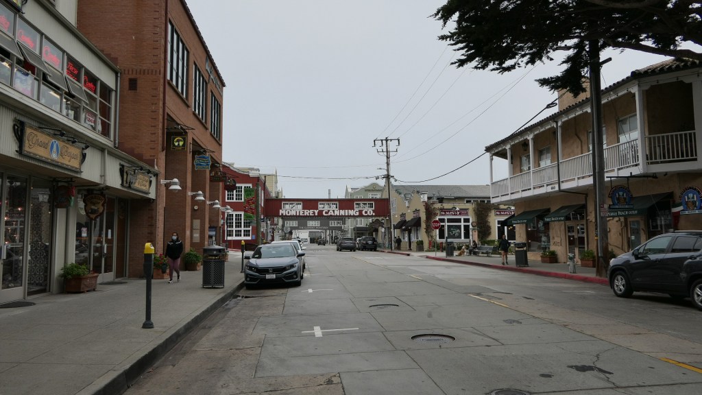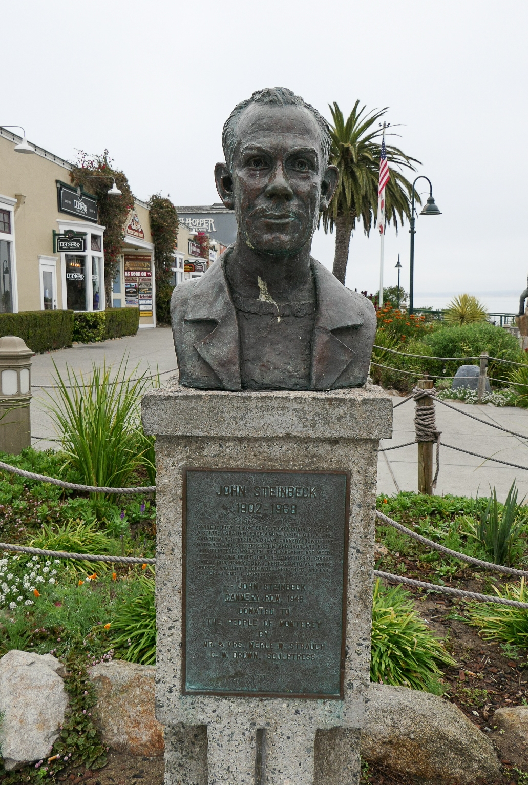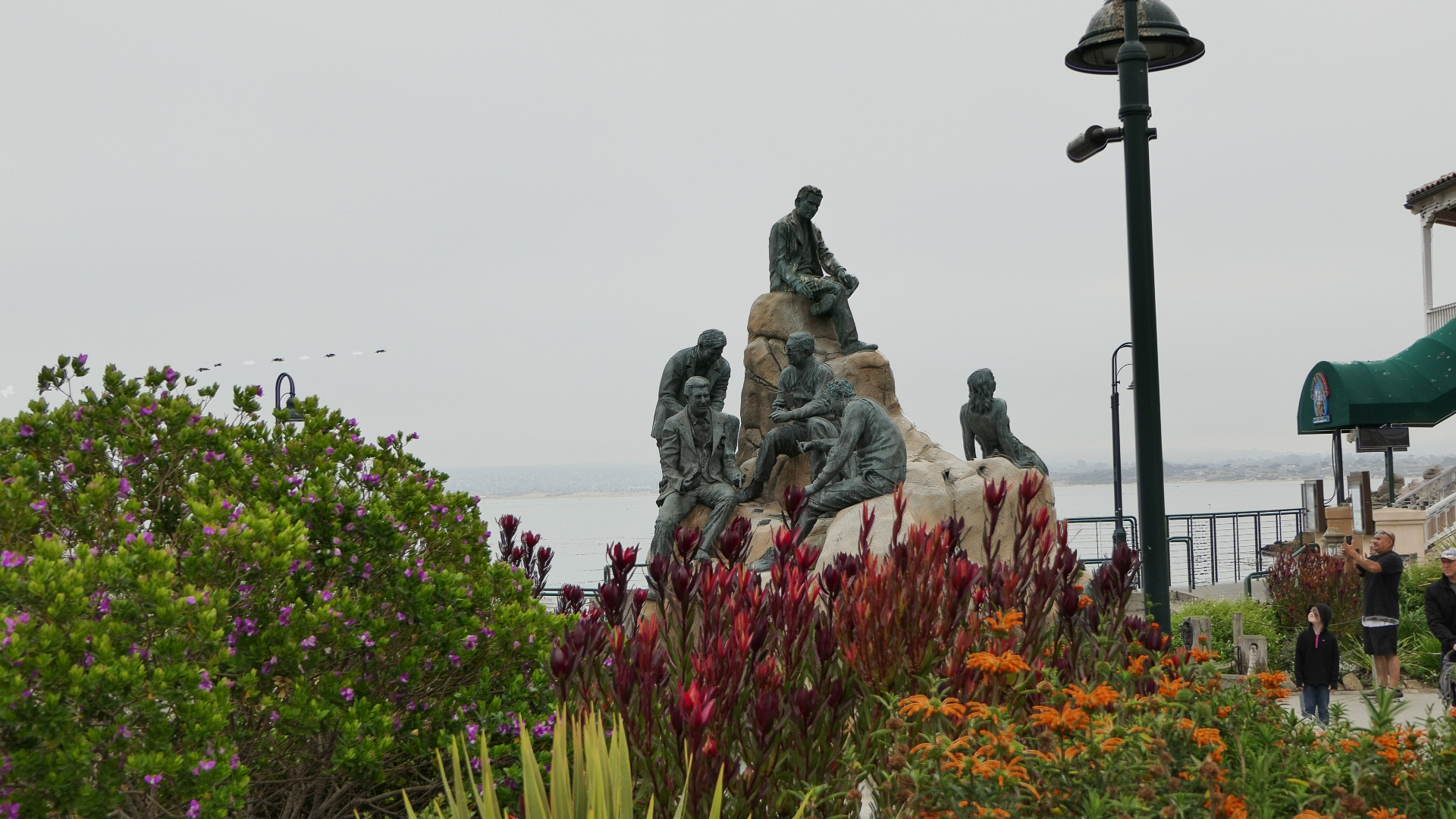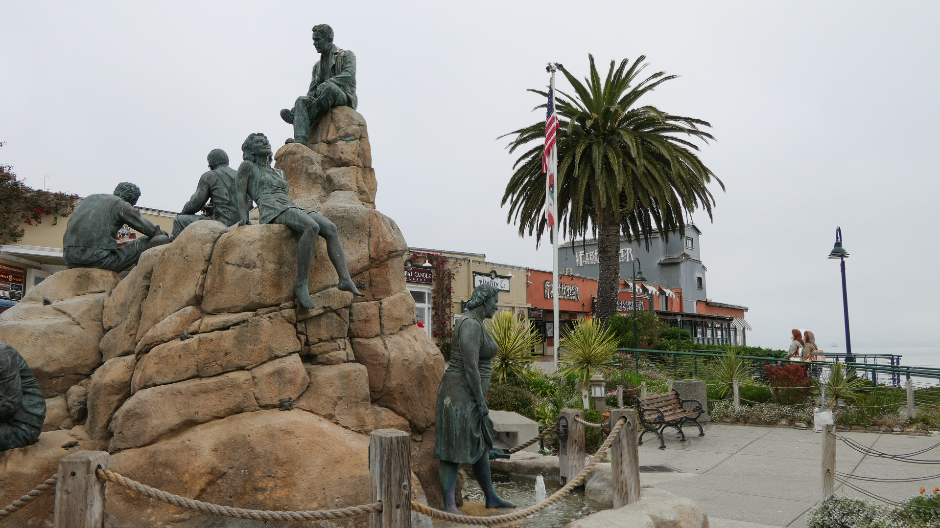 19세기 초중반까지 Colorado 산맥 서쪽일대를 지배하던 스페인은 일종의 영토로 Alta California를 수립하였고, 멕시코가 스페인을 물리치고 이를 이어받았다. Monterey는 Alta California의 수도였으며, 미국과 멕시코 전쟁에서 미국이 승리한 후 California가 미국의 주로 편입되기위한 California 최초의 Constitutional Convention이 열린 곳이기도 하다. 당시 해상을 통하여 California로 오는 물품은 Monterey항을 거쳐야만 들어올 수 있었고 주요 산업은 어업과 수산물 가공 통조림이었다. 그러나 지속적인 남획으로 인하여 20세기 중반부터 어업이 쇠퇴하기 시작하였다. 이에 통조림 공장들도 문을 닫기 시작하여 1973년에 마지막 공장이 폐업하기에 이르렀다. Cannery Row는 정어리 통조림 공장들이 있던 길로 원래 이름은 Ocean View Avenue였다. 1945년에 John Steinbeck은 소설 Cannery Row를 발표하였는데 통조림 공장 일대에 사는 사람들의 이야기를 다루었고 그의 대표작 중 하나이다. 1958년에 이를 기념하기위해서 길 이름을 Cannery Row로 바꾸었고 오늘에 이르렀다. Cannery Row에 있는 통조림 공장들 대부분에는 상점이 들어서서 관광객의 발길을 끌고 있다. Steinbeck Plaza라 명명된 상점가의 open space에 Cannery Row Monument라는 조형물이 2014년에 공개되었다. 10여년만에 오는 필자에게는 새로운 것이라, 아침안개가 걷히기 전이라 뿌옇지만, 사진 몇 장 소개한다.