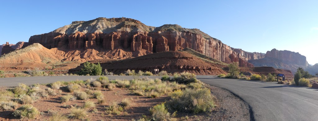 Capitol Reef National Park은 남북으로 길이가 약 60 mile(97 Km), 동서의 폭이 평균 6 mile(9.7 Km)로 총 면적 241,904 acre(878.95 Km2)를 점유하고 있다. 이 일대는 1937년에 Capitol Reef National Monument로 지정되었다. 1950년 초에 일대에서 우라늄이 발견되며 광산개발의 움직임이 있었다. 그러나 자연보호자들의 반대에 부딪쳤고, 우라늄 매장량이 예상보다 적은 것으로 판명이 나며 광산개발은 중단되었다. 1971년에 이 일대의 자연환경을 보다 확실하게 보존하기 위해서 국립공원으로 격상되었고 매년 120만명 이상의 관광객들이 방문하는 곳이 되었다. 가장 많이 방문하는 곳은 교통이 편한 UT-24번에서 가까운 Fruita 동네 일대이다.