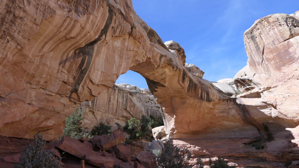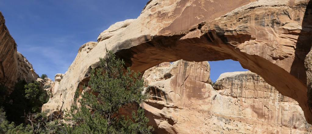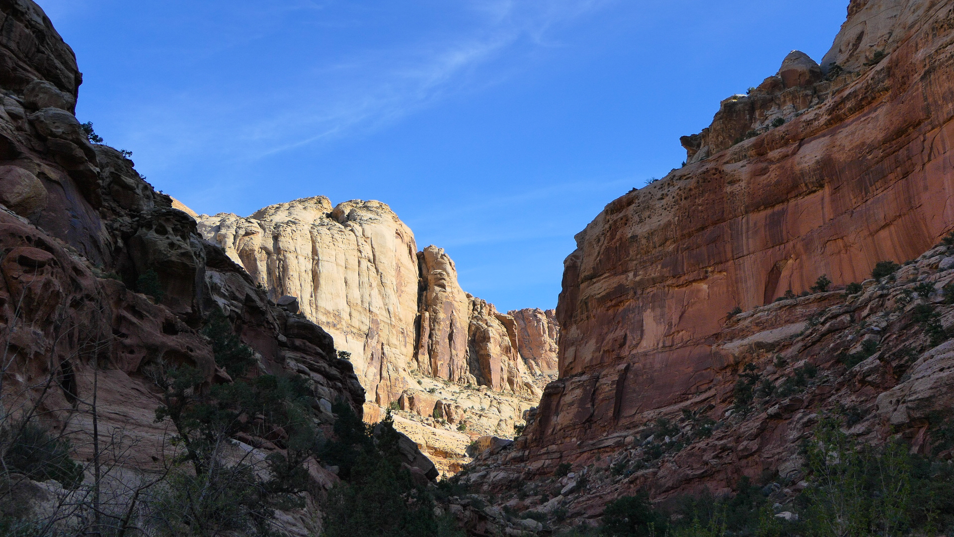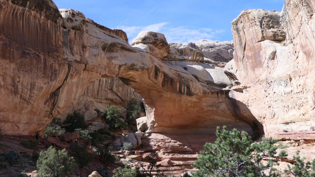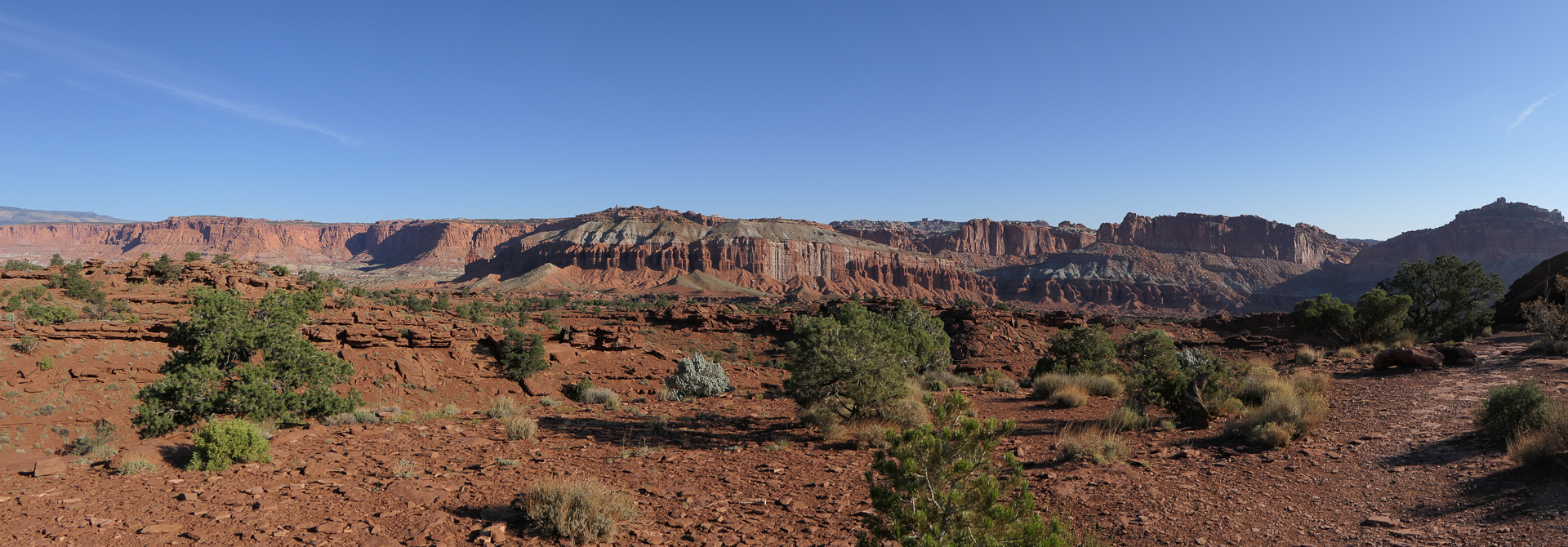 10세기경부터 Capitol Reef 주변에 흐르는 Fremont 강변에 원주민들이 살았었는데 13세기에 있었던 대 가뭄으로 이들이 떠났다. 오랜 세월이 흐른 후 Paiutes족이 이주하여 이 곳에서 살기 시작하였다. 1880년대에 모르몬교도들이 Fremont 강 주위에 이주하기 시작하여 지금의 Fruita를 형성하였지만 워낙 외따로 떨어져 있어 겨우 10가정 정도가 살았다. 결국 이들도 떠나고 아무도 살지 않는 황무지가 되었다. 20세기 초부터 시작된 지질학적 가치 및 탁월한 자연경관을 보존하기 위한 운동이 결실을 맺어 1971년에 국립공원이 되기에 이르렀다. 2015년에는 International Dark Sky Park으로 선정되었다. 여기에 소개하는 사진들에 나오는 지형지물의 위치 및 hiking trail에 관한 정보는 Capitol Reef Fruita Area Map and Guide 참조.