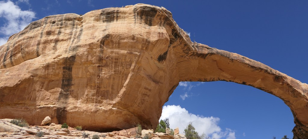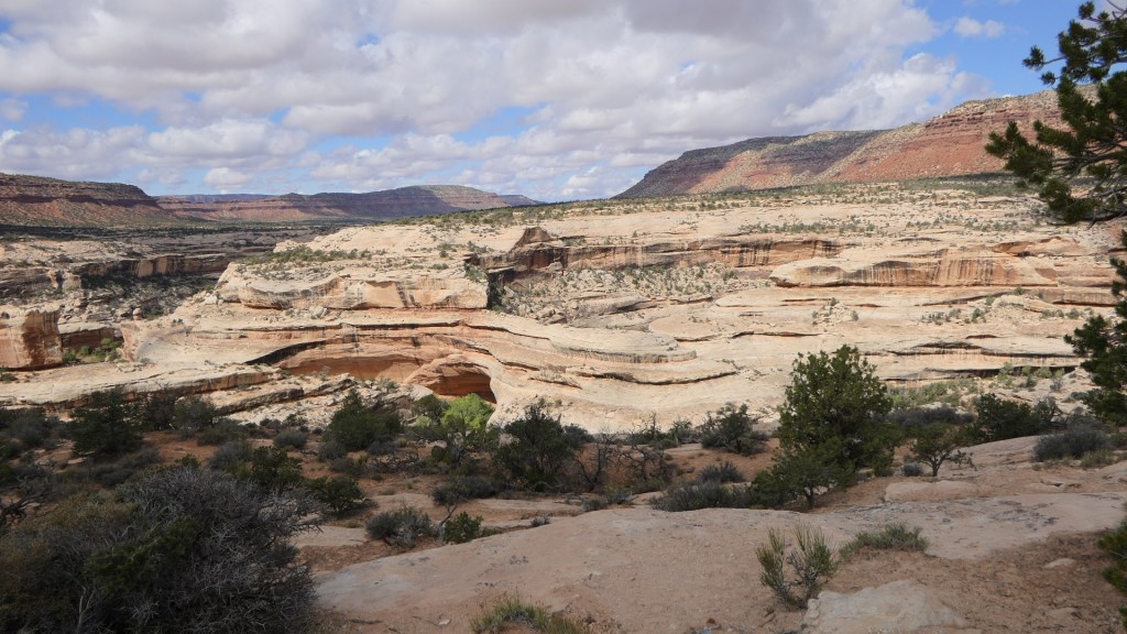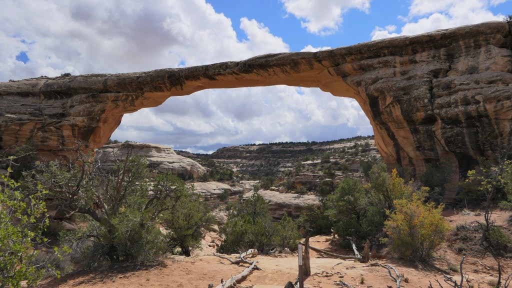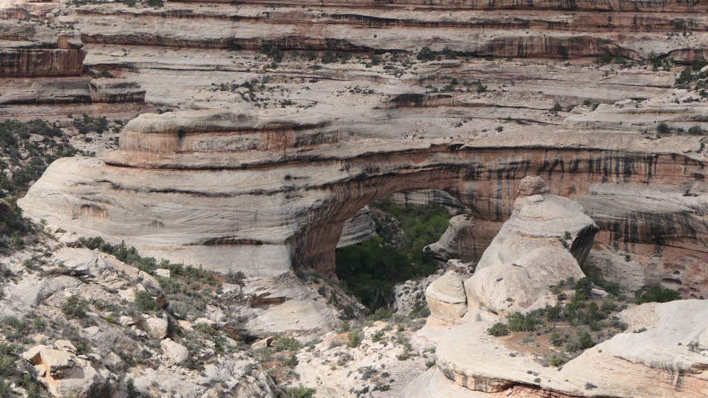 아치는 주로 얼고 녹는 과정이 반복되며 일어나는 풍화작용에 의해 형성되고 브리지는 흐르는 물에 의한 침식작용에 의해서 만들어진다. 따라서 브리지는 물이 흐르던 협곡에 주로 있고 아치는 불쑥 튀어나와 덩그마니 있다. Natural Bridges 일대의 지질은 흰색을 띤 Permian Sandstone으로 브리지가 있는 협곡의 이름도 White Canyon이다. 현재 White Canyon은 우기를 제외하고는 아주 적은 양의 물이 흐르고 있다. Natural Bridges National Monument는 약 9 mile 길이의 일방통행인 Bridge View Drive로 한바퀴 돌 수 있다. 이 곳에는 3개의 브리지가 있으며 각 브리지 앞에 주차장이 따로 있고 전망대와 trail head가 있다. 참고로 이런 자연 지형지물의 높이, 길이, 폭 등 크기에 관한 측정기준은 좀 애매한 편이다. 그래서 미국 국립공원과 Natural Arch and Bridge Society에서 발표한 숫자에 약간씩의 차이가 있으며 그에 따라 순위에도 차이가 있다. 이 글에서는 Natural Arch and Bridge Society가 발표한 순위만 소개한다.
