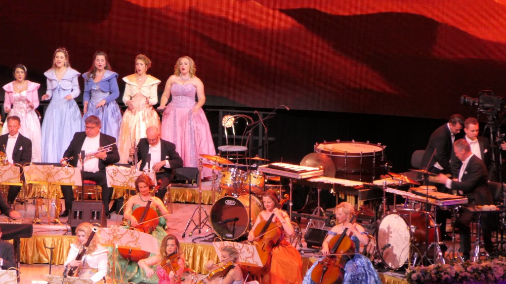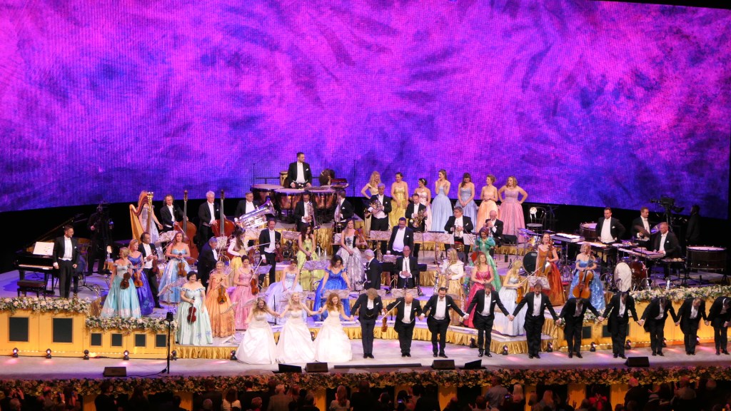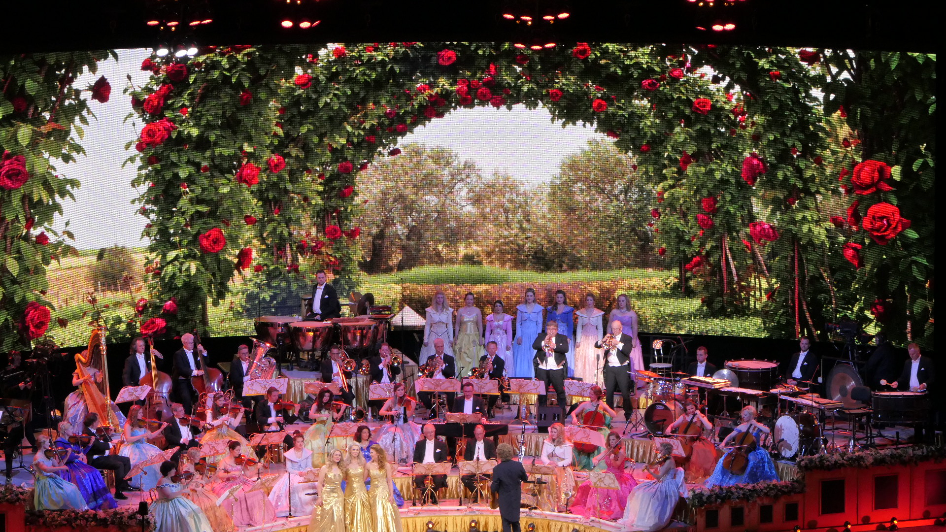 코로나로 인하여 André Rieu Concert 일정이 2020년 초부터 2021년에까지 완전히 취소되었다가 실로 2년만에 재개되었다. 집에 갇혀 지내던 우울한 시기를 떨쳐버리고 미국은 2021년 여름 정도부터 많은 사람들이 국내여행도 시작하고 2022년 들어서는 사회생활이 거의 회복되었다. 우리는 나이가 나이인지라 거리두기나 마스크 착용을 알아서 하며 조심스럽게 road trip 위주로 바람을 쐬던 참에 André Rieu 연주회가 집에서 1시간 반정도 거리에서 있으니 가기로 하였다. 3월 19일에 Anaheim에 있는 Honda Center에서 André Rieu 연주회가 열린 것이다. 1993년에 개장한 이 실내체육관은 원래 Arrowhead Pond of Anaheim으로 명명되었는데 이는 초기에 개명권(改名權, Naming Right)을 따낸 식수회사 Arrowhead Water의 이름에서 연유하였다. 이 실내체육관은 Anaheim의 아이스하키 팀인 Mighty Ducks의 홈경기장이 되었다. 그 후 Mighty Ducks는 Anaheim Ducks로 이름을 바꾸었고, 체육관의 개명권은 Honda로 넘어가 지금의 Honda Center가 되었다. 주로 아이스하키, 농구 및 기타 공연장으로 쓰이며 객석은 행사에 따라 17,174에서18,900으로 미국에 있는 실내체육관 중에는 중간정도 크기에 속한다.