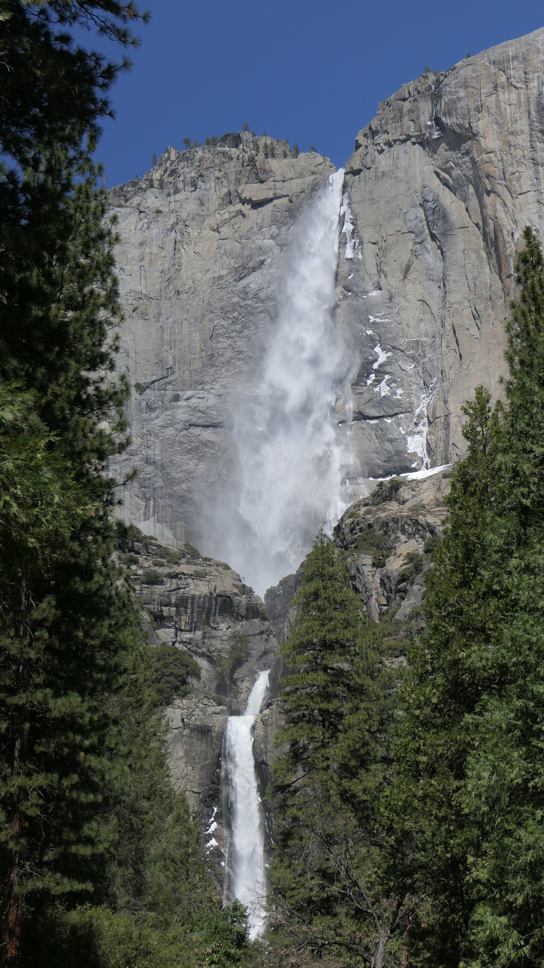 Yosemite 국립공원의 상징이라고도 할 수 있는 Yosemite Falls는 6개의 폭포를 합쳐서 부르는 이름이다. Upper Yosemite Fall은 1,430 feet (440 m), Middle Cascade 675 feet (206 m), Lower Yosemite Fall 320 feet (98 m), 총 2,425 feet (739 m) 높이로 California주에서 제일 높고 미국에서 6번째로 높은 폭포이다. Middle Cascade는 4개의 작은 폭포들을 합쳐서 부르는 이름인데 Yosemite Valley에서는 잘 보이지 않고 특정 지점에서 일부가 보인다.