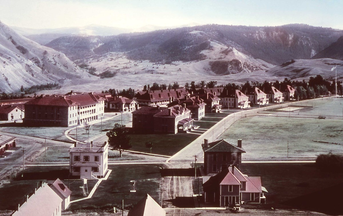 1872년에 Yellowstone 일대는 국립공원으로 지정되었지만 원주민들과 전쟁 및 밀엽꾼들과 갈등이 계속되었고, 관광객들의 증가로 자연 훼손도 심각하였다. 급기야는 1886년에 군대를 주둔시키기에 이르렀으며 지금의 Mammoth Hot Springs 지역에 Fort Yellowstone을 지었다. 한편으로 Roosevelt는 1887년에 자연보호를 목적으로 시민단체 Boone and Crockett Club을 창립하였다. 대통령에 당선된 그는 1903년에 Yellowstone 국립공원을 방문하여 공사 중이었던 개선문 형태의 이 건축물에 주춧돌을 직접 쌓았다. 그 문은 Roosevelt Arch라 명명되었고 Yellowstone 국립공원에 이르는 관문의 상징이 되었다. 주춧돌 밑에는 성경과 Roosevelt의 사진 및 지방 신문 등이 들어 있는 time capsule을 함께 묻었다 한다. 아치 위쪽에는 Yellowstone 국립공원의 설립 근거인 Organic Act of 1872에서 따온 “FOR THE BENEFIT AND ENJOYMENT OF THE PEOPLE”이라는 문구가 새겨져 있다.