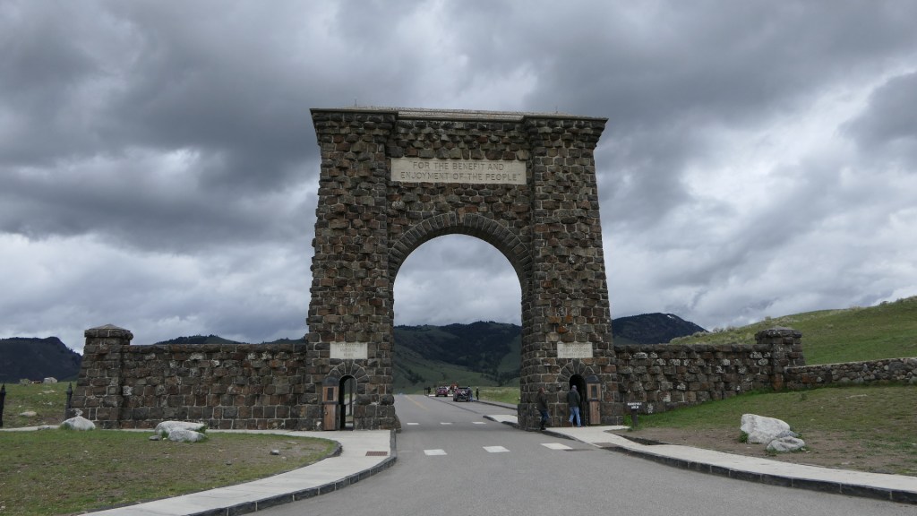 북쪽 입구의 관문도시는 Gardiner라는 작은 마을인데 우리가 다녀온 2주 후에 홍수로 도로가 유실되어 고립되었고, Yellowstone 국립공원 또한 Grand Loop Road의 피해가 커서 관광객 대피 및 잠정적 폐쇄령이 내려졌다. 이번 홍수로 가장 많은 피해가 발생한 곳이 Gardiner와 북쪽 입구, Mammoth Hot Springs를 잇는 도로인데 복구에 상당한 시간이 걸릴 것 같다. 이 북쪽 입구로 들어가는 길목에 Roosevelt Arch가 있다.