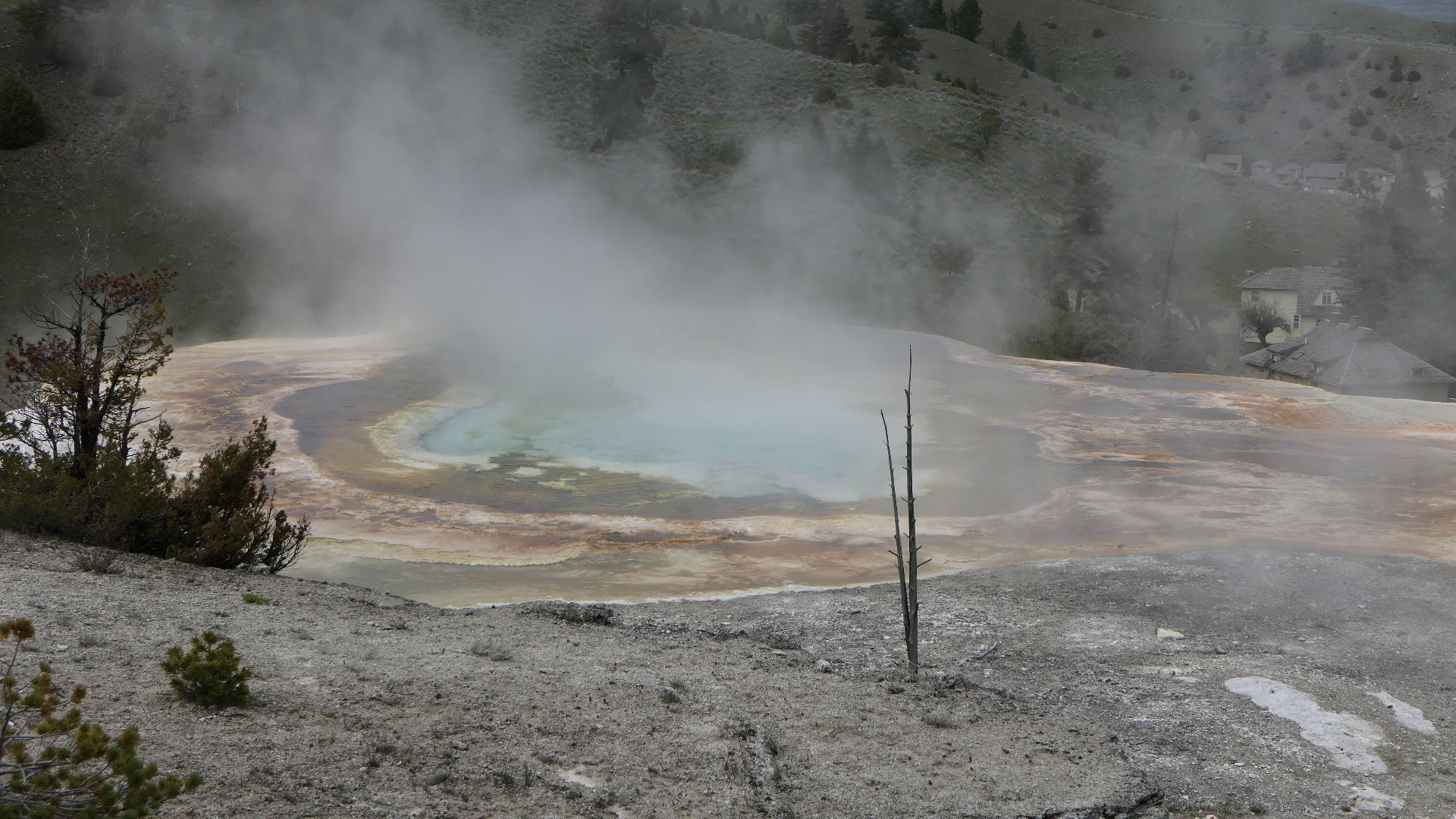 Mammoth Hot Springs는 Yellowstone 국립공원 안에 있는 8자모양의 Grand Loop Road 북서쪽 모퉁이에 있는 지역으로 Fort Yellowstone, Visitor Center 및 기타 편의시설들이 있는 곳이다.