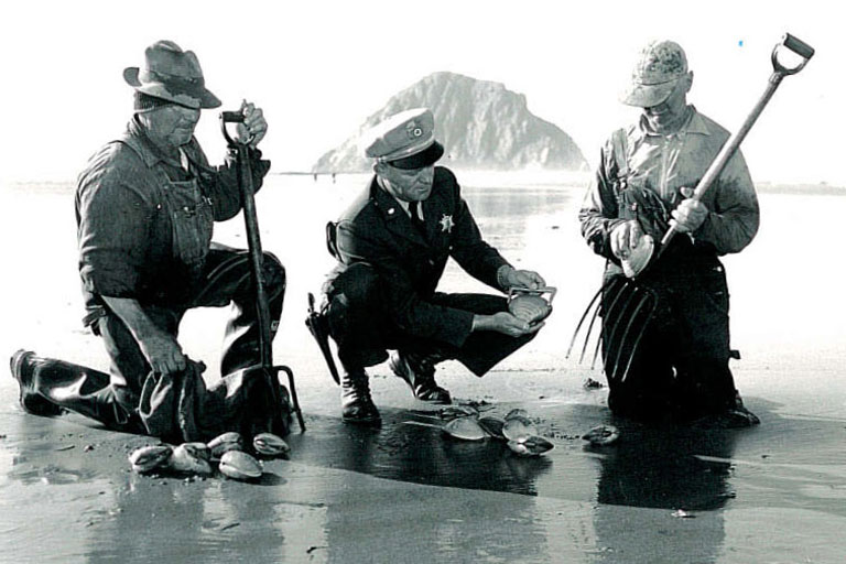 이 지역에는 원주민 Chumash 족이 살고 있었는데 그들의 언어 pismu에서 동네이름 Pismo가 연유한다. Pismu는 타르(tar)를 뜻하는데 인근 Price Canyon에 있는 구덩이에서 타르가 채취되었기 때문에 원주민들이 이 일대를 그렇게 불렀다 한다. 당시 타르는 배를 건조할 때 방수제로 사용되는 소중한 물질이었다. Pismo Beach가 유명하게 된 것은 모래사장에 수도 없이 많았던 Pismo Clam으로 불리는 큰 조개들 때문이었다. 이 조개는 보통 성인 한 뼘 정도의 크기로 자란다. 1950년대에 Pismo Beach에는 ‘Clam Capital of the World’라는 별명이 붙여졌는데, 씨가 마를 정도의 과잉채취로, 이제는 큰 조개는 보기가 힘들다. 우리가 미국에 도착했던 1976년만 해도 그저 모래사장을 발로 슬슬 긁어도 조개가 나올 정도였는데 이젠 그런 이야기를 해도 사람들이 믿지 않는다. 정부는 조개 채취에 대해 많은 규제를 하고 있는데 우선 Salt-Water Fishing License를 사야 하고, 채취할 수 있는 조개의 크기는 최소 4.5 inches를 넘어야 하며, 하루에 10마리까지 잡을 수 있다. 그런 가운데에도 매년 10월이면 Clam Festival이 열리며 Clam Chowder 만들기 및 조개를 주재로 한 행진 등이 볼거리로 꼽힌다. 최근에 Pismo Clam의 개체 수가 늘고 있다는 보고도 있어 과거의 명성을 되찾을 수 있을지 흥미롭다.