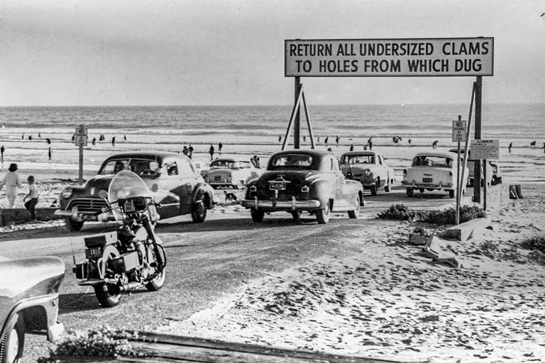 이 지역에는 원주민 Chumash 족이 살고 있었는데 그들의 언어 pismu에서 동네이름 Pismo가 연유한다. Pismu는 타르(tar)를 뜻하는데 인근 Price Canyon에 있는 구덩이에서 타르가 채취되었기 때문에 원주민들이 이 일대를 그렇게 불렀다 한다. 당시 타르는 배를 건조할 때 방수제로 사용되는 소중한 물질이었다. Pismo Beach가 유명하게 된 것은 모래사장에 수도 없이 많았던 Pismo Clam으로 불리는 큰 조개들 때문이었다. 이 조개는 보통 성인 한 뼘 정도의 크기로 자란다. 1950년대에 Pismo Beach에는 ‘Clam Capital of the World’라는 별명이 붙여졌는데, 씨가 마를 정도의 과잉채취로, 이제는 큰 조개는 보기가 힘들다. 우리가 미국에 도착했던 1976년만 해도 그저 모래사장을 발로 슬슬 긁어도 조개가 나올 정도였는데 이젠 그런 이야기를 해도 사람들이 믿지 않는다. 정부는 조개 채취에 대해 많은 규제를 하고 있는데 우선 Salt-Water Fishing License를 사야 하고, 채취할 수 있는 조개의 크기는 최소 4.5 inches를 넘어야 하며, 하루에 10마리까지 잡을 수 있다. 그런 가운데에도 매년 10월이면 Clam Festival이 열리며 Clam Chowder 만들기 및 조개를 주재로 한 행진 등이 볼거리로 꼽힌다. 최근에 Pismo Clam의 개체 수가 늘고 있다는 보고도 있어 과거의 명성을 되찾을 수 있을지 흥미롭다.