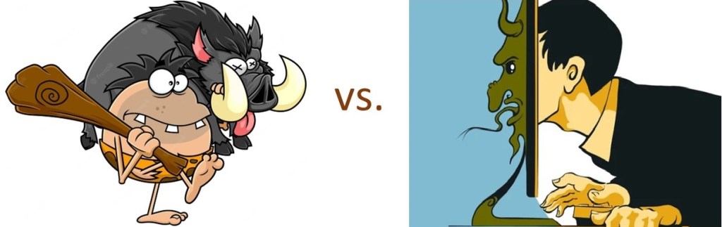 인류는 선사시대 때부터 동굴에 살기 시작했는데 그들을 Cave Dweller 또는 Caveman이라는 애칭으로 부른다. 이 단어를 영한사전에서 찾아보니 혈거인(穴居人)이라 나오는 데 나는 이 글에서 경우에 따라 동굴족이라는 이름과 함께 쓰려 한다. 혈거인은 일반적으로 동물의 가죽으로 만든 옷을 입고 몽둥이 같은 원시적인 무기를 사용하며 짐승 등의 먹잇감을 잡아 동굴로 돌아오는 식으로 그려져 있다. 그래서 caveman은 거칠고 무례한 사람을 지칭하기도 하며, 때로는 couch potato와 비슷한 뜻으로 하루 종일 맥주나 마시며 운동중계만 보는 게을러 빠진 남자를 가리키기도 한다. 많은 사람들이 Social Media를 애용하는 현대에 와서 caveman은 하루 종일 동굴 같은 방에서 컴퓨터를 들여다보고 자판이나 두드리고 있는 부류의 인간들을 가리키기도 한다. 나는 이들을 동굴족이라 부른다.