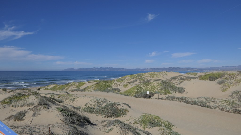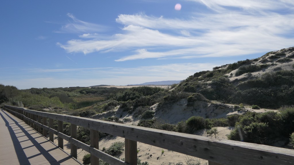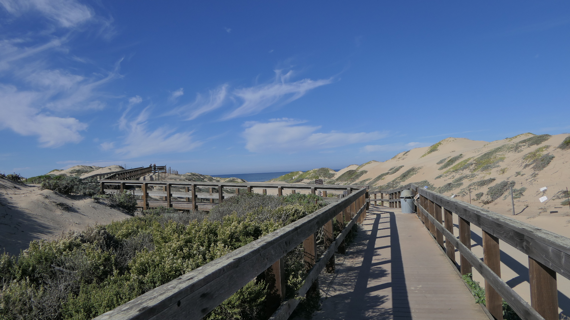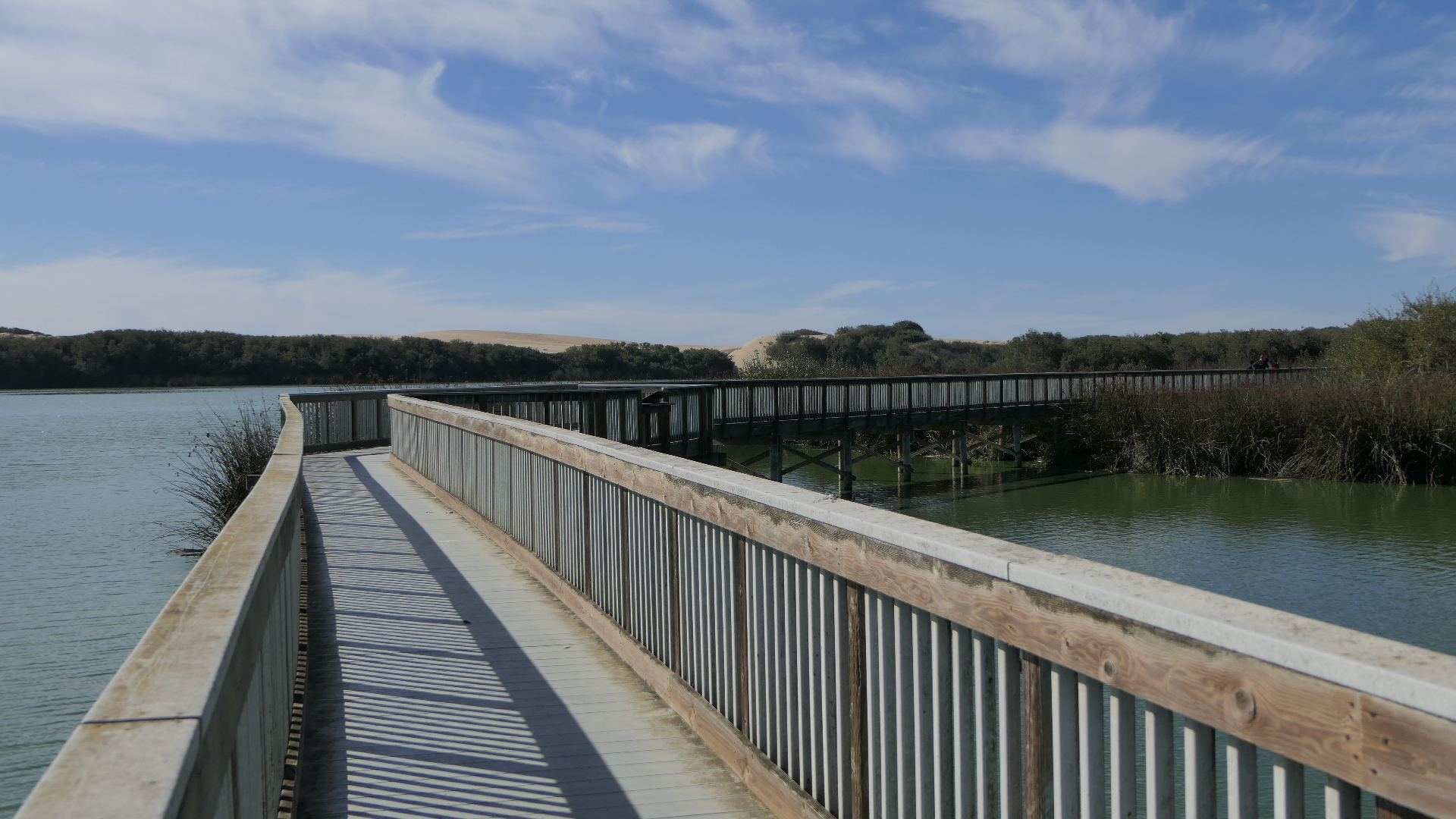 Trailhead는 Oso Flaco Lake Road의 서쪽 끝에 있다. 주차료는 2022년 11월 현재 $5, smart phone App으로 결재하게 되어있다. 우리는 주차장 입구 바로 앞 길가에 차를 세웠다. Trail은 왕복 약 2 mile, 평탄하고 호수와 바다 그리고 모래사장을 볼 수 있는 흔치 않은 조합을 하고 있다. 호수에는 여러 종류의 새들이 서식하고 있어 야생 조류 관찰자(bird watcher)들이 즐겨 찾는다 한다.