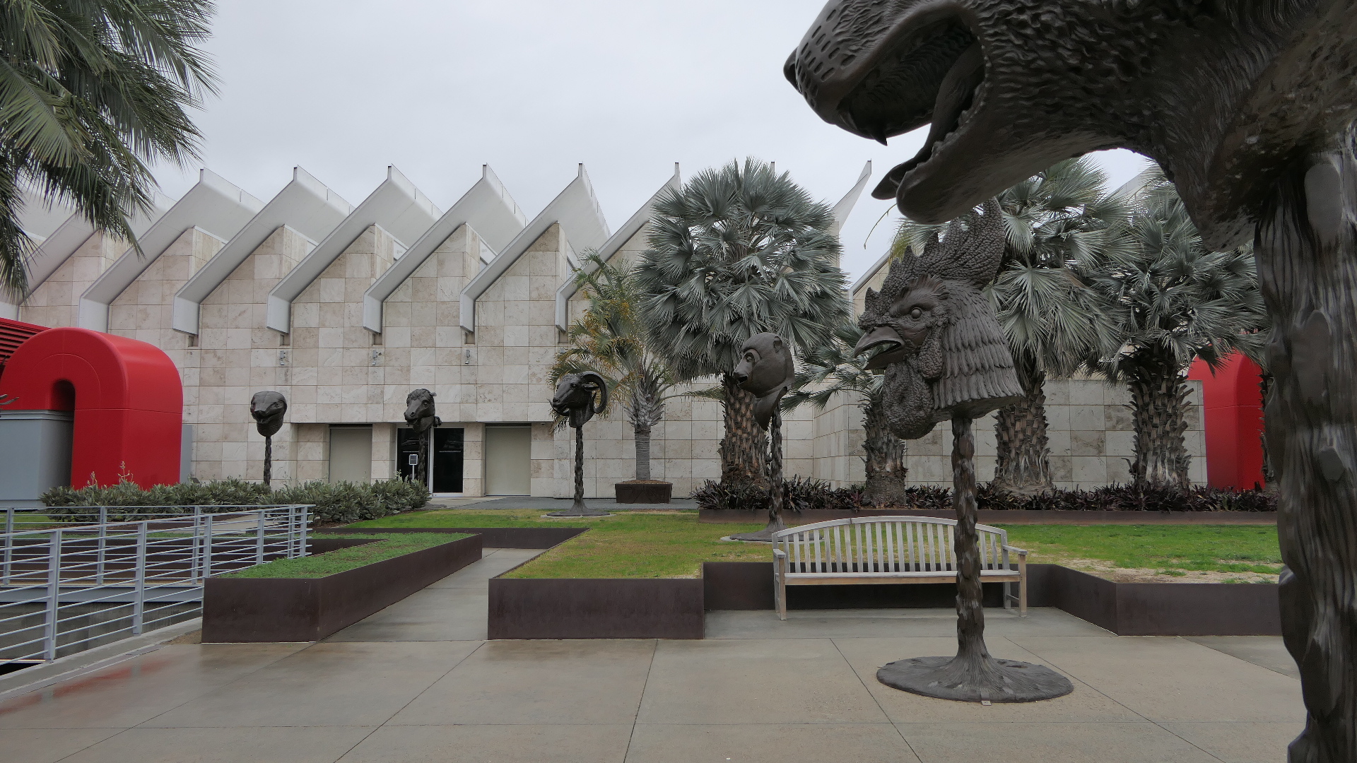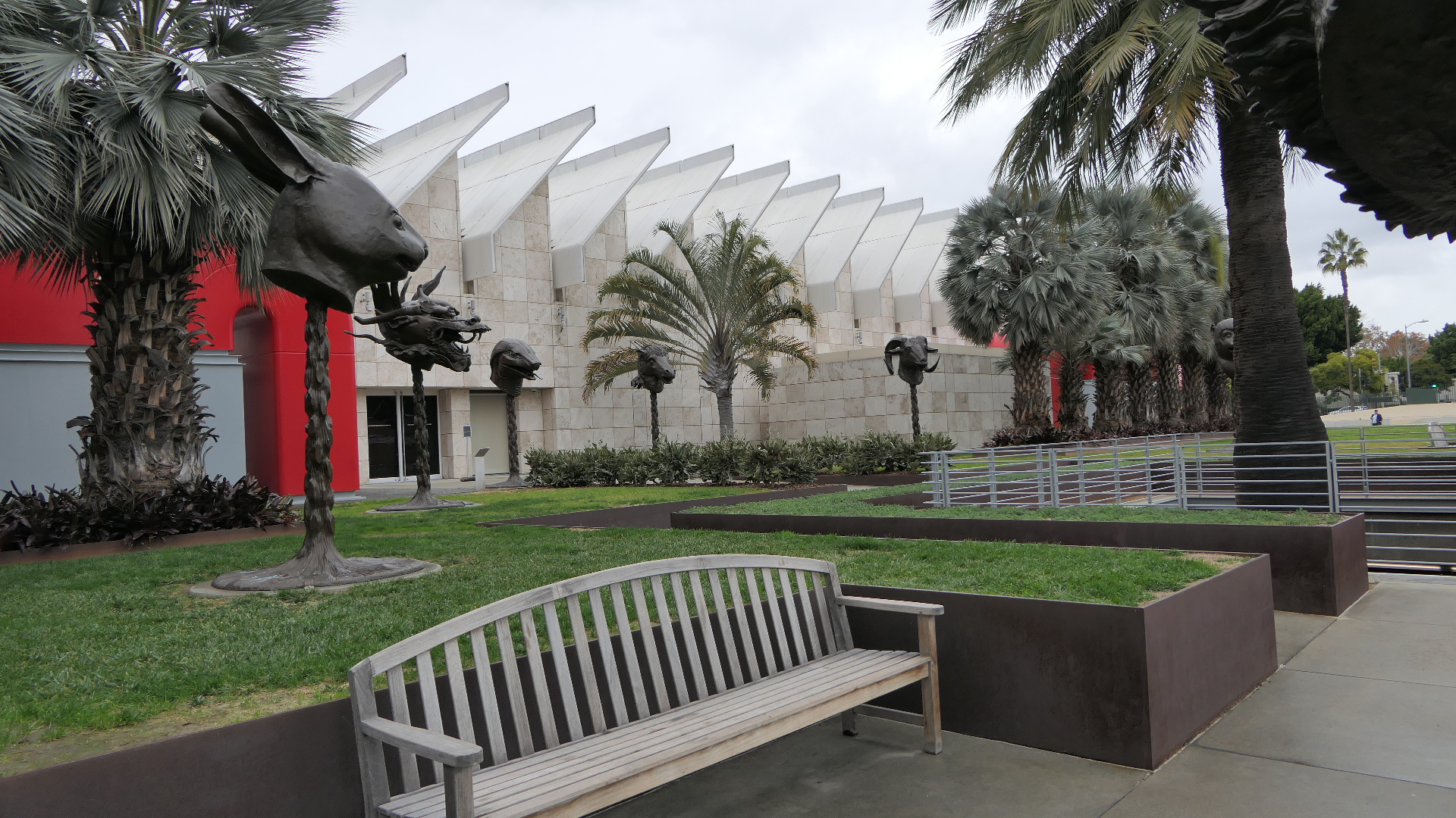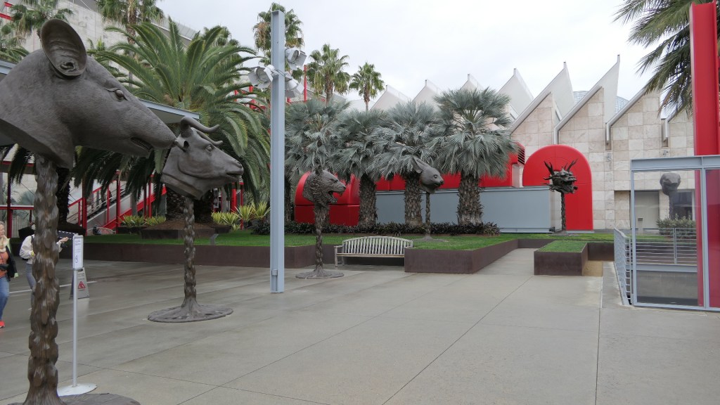 Urban Light에서 6가쪽으로 조금 가면 Zev Yaroslavsky 광장이 나온다. 1975년부터 근 40년간 Los Angeles시 의회의원 및 County Board of Supervisors로 재직하며 Hollywood Bowl 보수공사, Walt Disney Concert Hall 건축, Los Angeles Opera 지원 등 각종 문화예술 방면의 프로젝트에 기여한 공을 기리기 위해서 그의 이름으로 명명된 광장이다. 이 광장에서 Resnick 전시관 쪽을 향해 중국인작가 Ai Weiwei의 12간지(Chinese Zodiac)에 의거한 12동물의 머리 상들로 구성된 Circle of Animals/Zodiac Heads가 반원형으로 전시되어 있다. 청나라 때 베이징 북서쪽에 있던 원명원(圓明園, Yuánmíngyuán, 이화원과 대비해서 Old Summer Palace로 불린다)의 분수시계에 12간지에 의거한 12개의 동물 머리 상을 설치해 각 2시간씩 물을 뿜게 했는데 이를 본뜬 작품이다. 원래 18세기에 이태리 선교사 Giuseppe Castiglione에 의해서 서양풍이 가미되어 설계되고 지어져서 당시에 최고급이라는 명성을 얻었다. 그러나 제2차 아편전쟁 중인 1856년에 프랑스와 영국 연합군에 의해 대규모의 파괴와 수많은 문화재들이 약탈당하고 말았다. 그 중 대표적인 것이 분수시계에 설치되었던 fountainhaeds, 동물 머리 상들이었다. 이 fountainhaeds 중 소, 원숭이, 호랑이, 돼지, 말 상들이 국제예술품 경매장에 등장하여 중국애국단체가 구입하여 중국정부에 기증하였다. 그후 전쟁 중 약탈한 문화재는 본국에 돌려줘야 한다는 주장도 있었지만 중국정부의 인권문제를 들어 이를 거부하는 사태도 일어났다. 실제로 토끼와 쥐 상이 경매에 붙여져 중국 측에 낙찰되었지만 중국의 인권문제로 양도를 거부하는 일이 벌어졌다. 이런 와중에 Weiwei는 청나라를 지배하던 만주가 의뢰해서 서양사람이 설계한 이 fountainheads를 과연 ‘누가 자랑스러워해야 하는가’, ‘이것은 세계의 아니면 중국의 유산인가’라는 질문을 던졌다.
