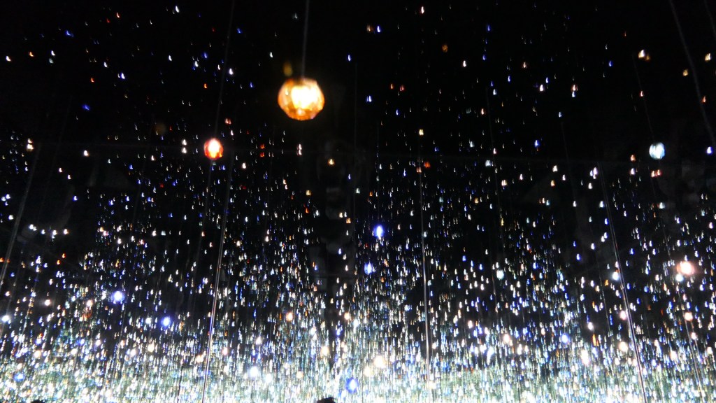Yayoi Kusama의 Infinity Mirrored Room 시리즈는 1965년에 시작해서 현재 20여개의 작품이 있다 – Complete List of Yayoi Kusama’s Infinity Mirrored Rooms 이 시리즈는 그의 대표적 주제인 polka dot을 입체적으로 표현한 것이라고 할 수 있다. 그중 2개를 The Broad가 소장하고 있는 것이다. The Souls of Millions of Light Years Away는 여러 개의 거울과 LED를 설치해 놓은 작은 방에 들어가서 1분이라는 짧은 시간동안 감상하게 되어 있다. 보는 사람에 따라 느끼는 점은 다를 수 있지만 제목으로 유추해 보건대 LED로 수백만 광년(lightyears) 전으로부터 존재해온 인간의 영혼들 그리고 거울로 우주를 표현했다고 보인다. 무한한 우주 안에 존재하는 지극히 미세한 나 자신의 모습이 갑자기 느껴진다면 너무 과장한 것일까? 시간제한은 인원통제도 중요하지만 작품에서 받는 첫 영감을 간직하라는 뜻으로 느껴진다.