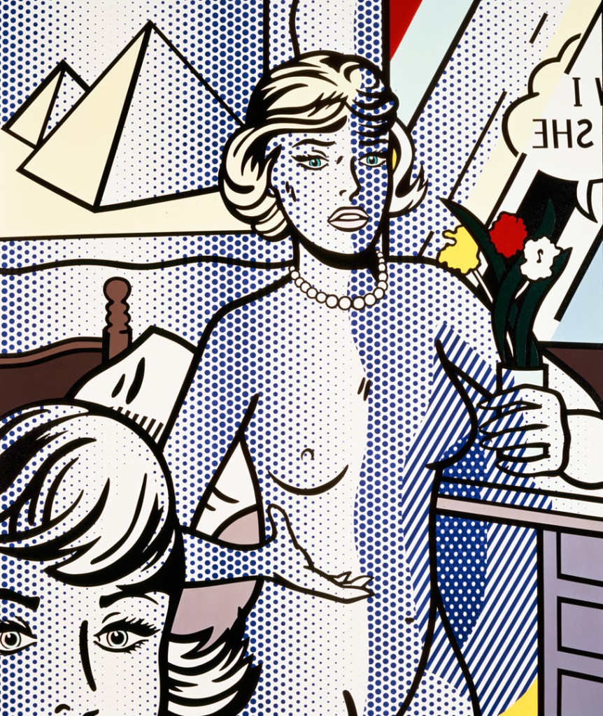 Roy Lichtenstein는 미국의 대표적인 Pop Artist이다. 1950년대 중반에 Fine Art에 대비하여 나타나기 시작한 Pop Art는, 당시 주류를 이루었던 추상주의를 탈피 내지는 확장하여, 구상주의적 작품을 발표하기 시작하였다. 이 분야의 작품들은 따로 설명이 필요 없고 쉽게 이해하고 접근할 수 있다는 대중성이 있다. Lichtenstein은 초기에 미국의 전래된 신화 내지는 역사에 기인한 작품들을 많이 발표하였다. 1960년대에 들어서며 그의 화풍(畵風)은 급진적으로 변하여, 전통적인 미술작품의 대상이 아닌, 광고 또는 만화에 등장하는 장면들을 그의 식으로 해석하여 그리기 시작하였다. 그의 그림들은 Benday Dots – 점들로 인쇄했던 초기의 dot printing 기술을 창안한 Benjamin Day의 이름으로 붙여진 화법, Hatch Marks – 색상이나 음영을 근접한 평행선들로 나타내는 화법, Color Blocking – color wheel에서 반대되는 색상들을 조합하는 화법, 그림자 등이 주요한 요소로 등장한다. 전시된 그의 작품 중 몇 점을 사진으로 소개한다.