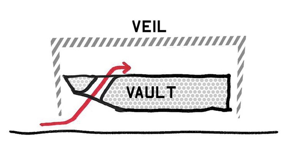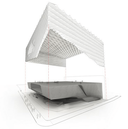 약 129,000 square-foot에 이르는 전시장을 포함한 미술관 건물에는 ‘the veil and the vault’라는 별명이 붙여졌다. 이는 미술관 건물의 두 주요한 요소, 즉 전시장과 소장품 보관 시설을 통상대로 분리하지 않고, 혼합하여 설계했음에 기인한다. 소장품 보관시설인 ‘the vault’는 공중에 떠 있듯이 설계되어 미술관을 들어갈 때부터 나올 때까지 사람들의 눈에서 떠나지 않는다. ‘the vault’의 윗부분은 3층 전시장의 바닥이며, 아랫부분은 1층에서 천장에 해당되며 곡선을 이루고 있는 하부구조는 통로를 형성하고 있다. 외벽의 벌집 모양은 건물 내부로 연결되고 ‘the veil’을 형성하여 ‘the vault’를 감싸고 있다.