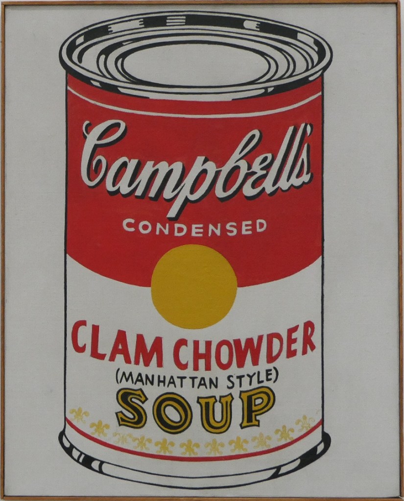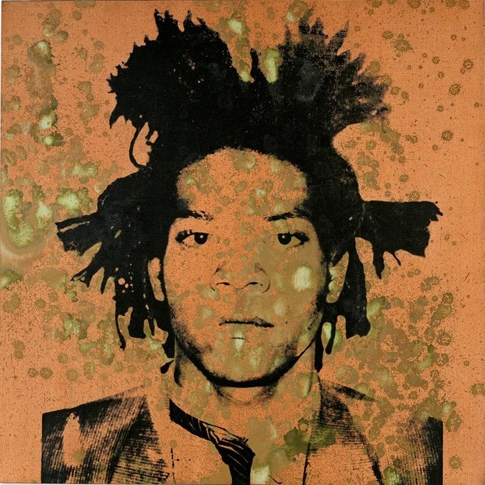Andy Warhol은 미국의 대표적 Pop Art 작가이다. 1950년대에 상업 및 광고예술가로 활동하다 1960년대에 들어서며 그를 대표하는 Pop Art 작품들을 발표하기 시작하였다. 추상주의로부터 탈피하여, 상업미술을 누구나 이해하기 쉬운 시각적 예술로 전환하며 미국적 자유의식을 표현하였다. 사진을 기반으로 명암, 색상과 구도에 변화를 주고 silkscreen 기법으로 제작한 그의 작품들은 유명인, 죽음, 재난 및 일반상품들을 주제로 다루었다. Silkscreen 기법은 같은 작품을 여러 장 만들어 낼 수 있어서 마치 대량생산한 느낌을 주기도 한다. 그러나 다른 색상으로 여러 장 만들어 같은 그림 다른 느낌을 창조하기도 한다. 당시 미국을 상징한다고 해도 과언이 아닌 상표 내지는 상품들을 주제로한 작품들은 그런 상품들을 세계적으로 더욱 유명하게 만들었다. 그는 산화화법(Oxidation Painting)을 창안하였는데, 구리 등 산화가 쉽게 되는 광물질을 물감에 더하여 그림을 그리고 그 위에 소변을 보아 화학반응을 유도하여 특이한 색상과 흔적 등의 효과를 창출해 낸 것이다. 소변의 성분에 영향을 주기위해서 비타민이나 특이한 음식까지도 먹으며 실험했다 한다. 아래에 소개되는 Jean-Michel Basquiat와 말년에 협업하게 되는데 그의 초상화가 이 산화화법으로 그려진 작품 중 하나이다.