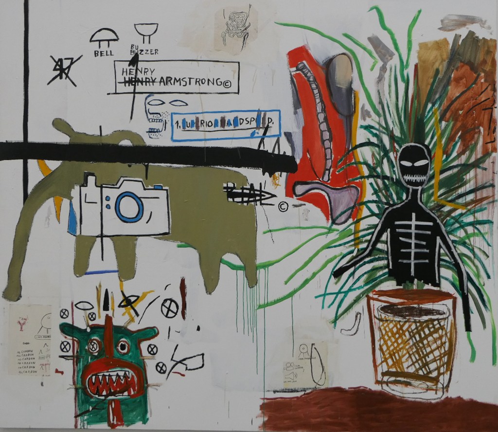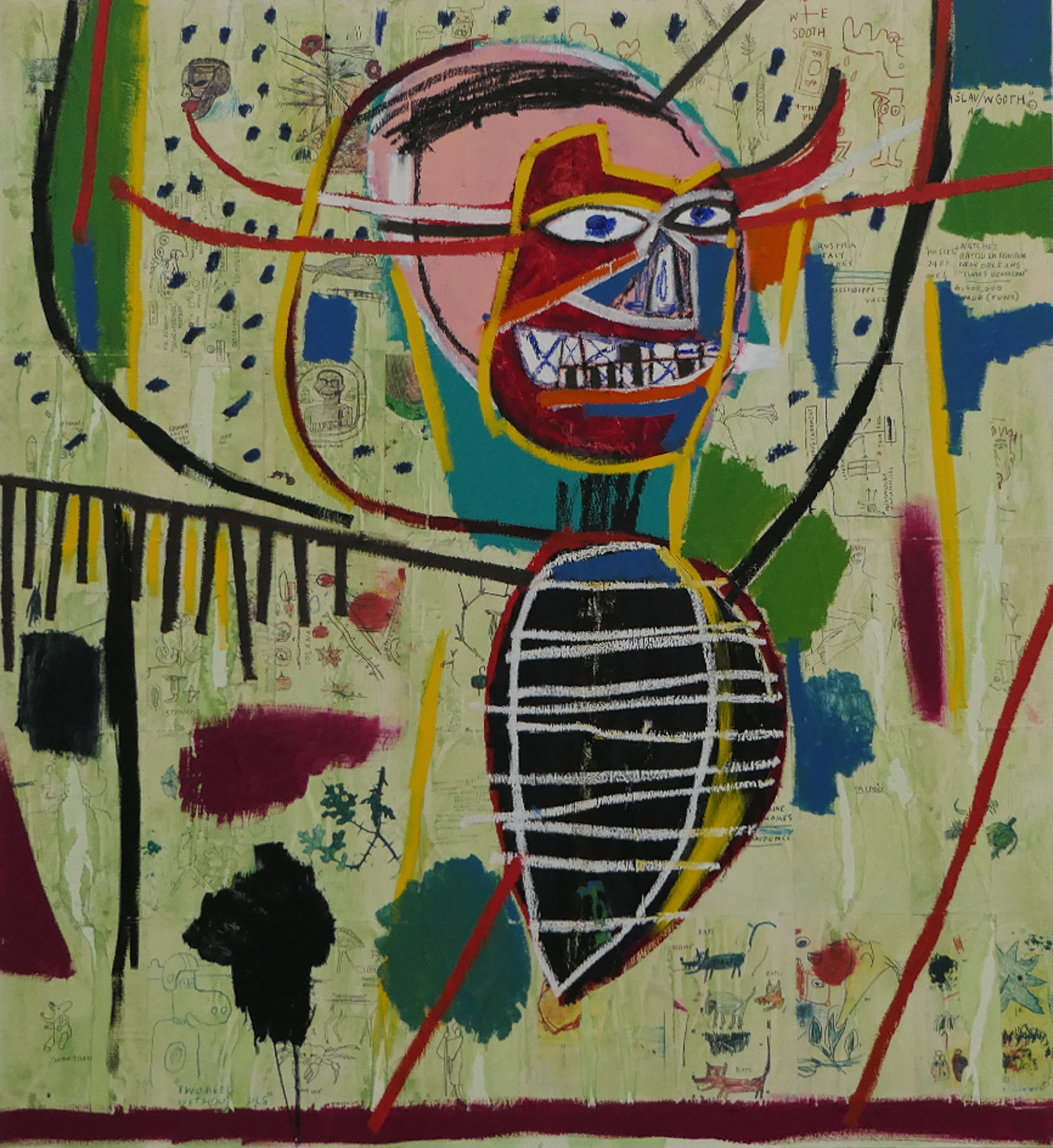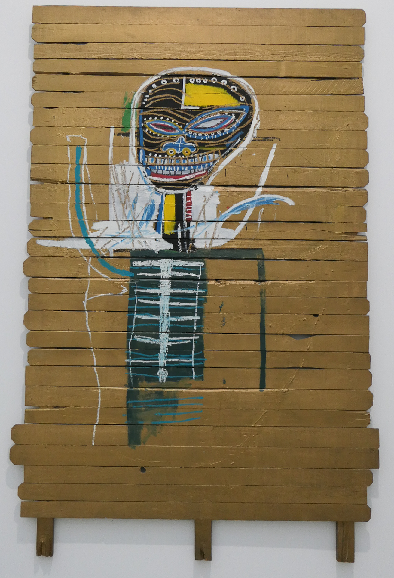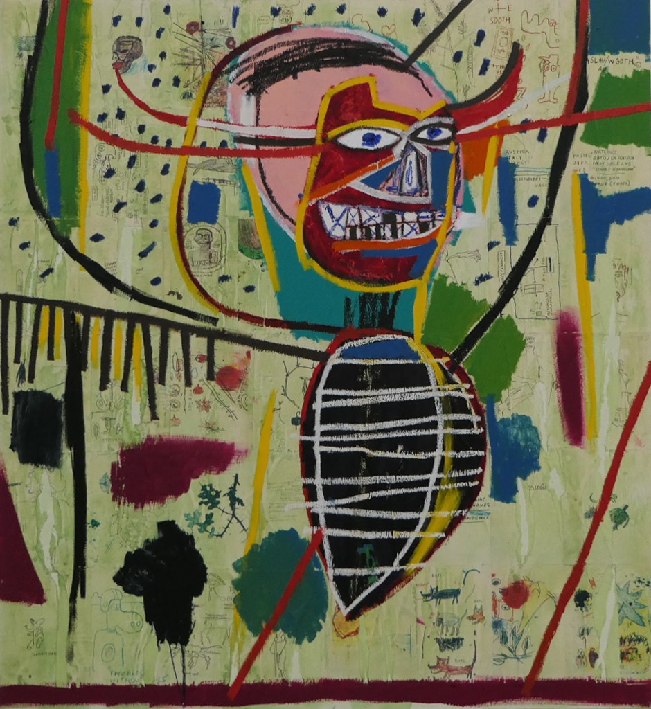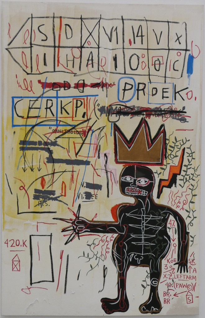 Jean-Michel Basquiat는 1960년에 Haiti와 Puerto Rico 부모사이에 태어나 불우한 유소년기를 지냈다. 일찍이 기출하여 허드렛일과 밴드에서 활동하며 생계를 이어가던 그는 1970년대 말에 graffiti art로 이름이 나기 시작하였다. 1980년 초에 New York의 Times Square에서 있었던 graffiti 전시회에서 주목을 받고 예술성을 인정받기 시작하였다. 그의 작품들 중에는 그가 겪었던 인종차별적 요소가 긍정적 또는 부정적으로 포함되어 있는 것이 많이 있다. 당시 미국사회에 만연하고 있던 배타성 (인종간, 계층간, 지역간 등등), 비가시성(非可視性, Invisibility, 앞에 언급된 배타성을 넘어서 있어도 없는 것 같은 취급), 온정주의 (paternalism, 개인이나 계층의 복지를 위해서 그들의 자유의지에 반하여 결과에 관계없이 일정의 제약을 가하는 것) 등등의 부당하고 위선적인 사회현상들을 그는 그림을 통하여 통렬하게 표현하였다. 그는 미술 뿐 아니라 음악, 시, 종교 등 다방면에서 예술성을 빛냈다. 1980대 초기부터 Andy Warhol과 협업도 하고 천재성을 발휘하였는데 27이라는 아까운 나이에 약물 과복용으로 요절하였다. 그의 작품에는 그가 겪은 내면의 분노와 고통들이 역력히 보인다. ‘눈부시게 탔는데 갑자기 불은 꺼졌지만 남은 숯은 아직도 뜨겁다’라는 당시의 평이 그의 천재적 예술성을 잘 표현했다고 보인다.