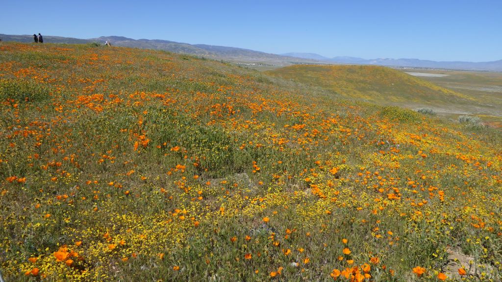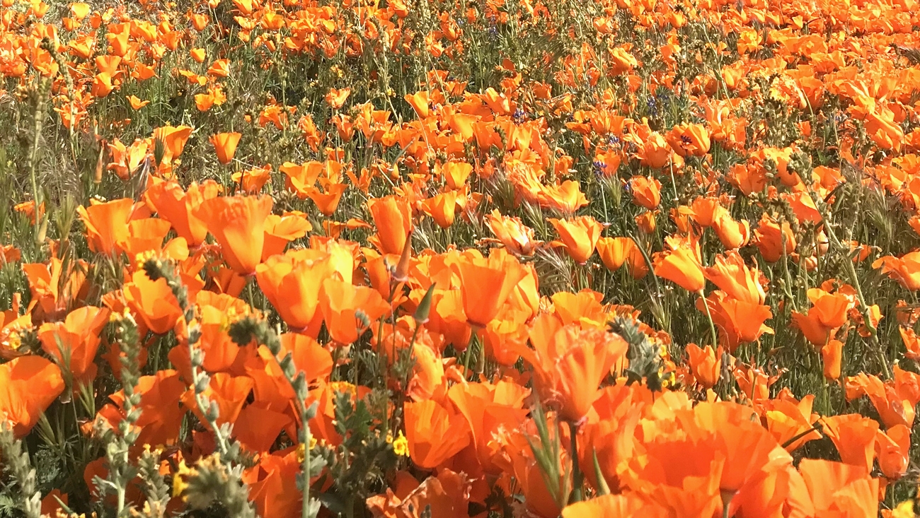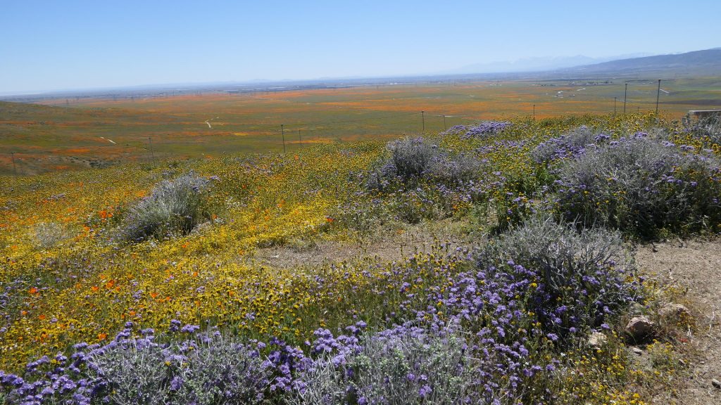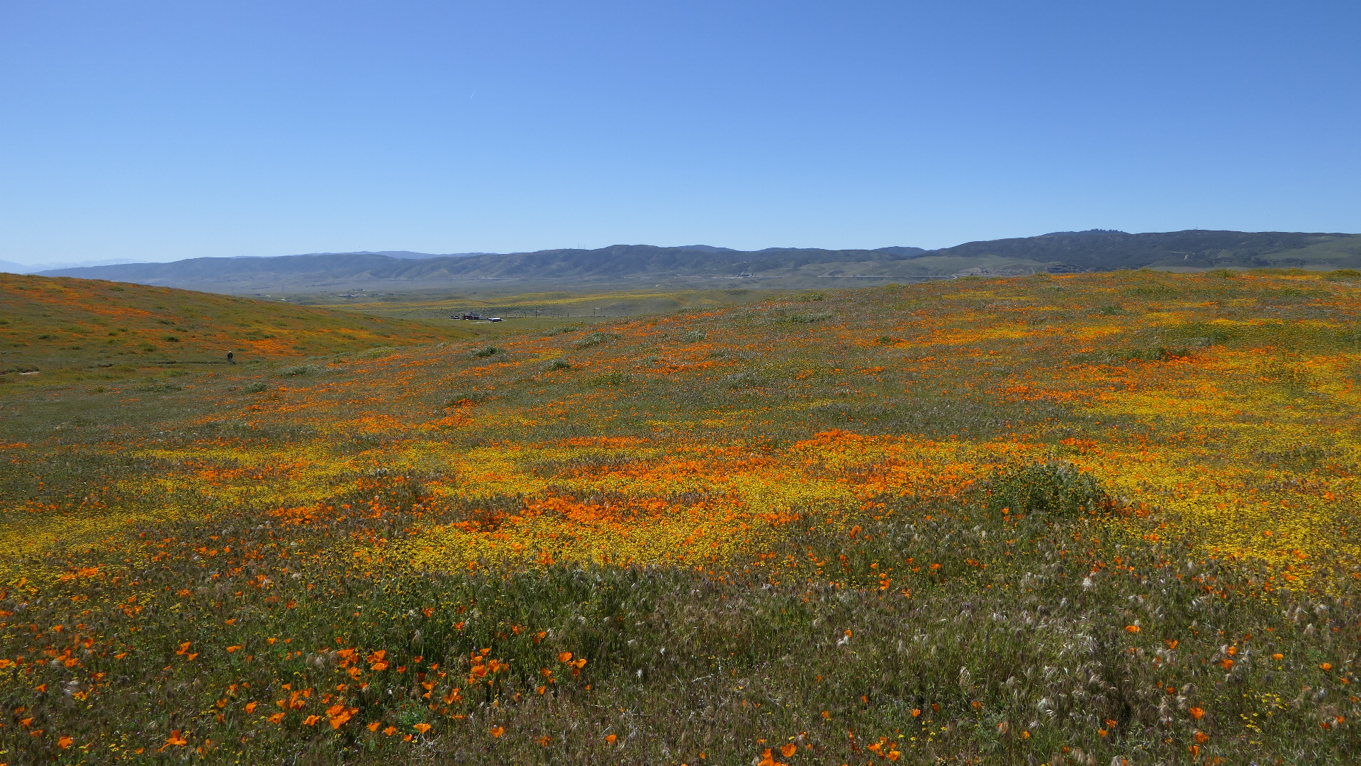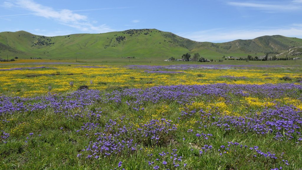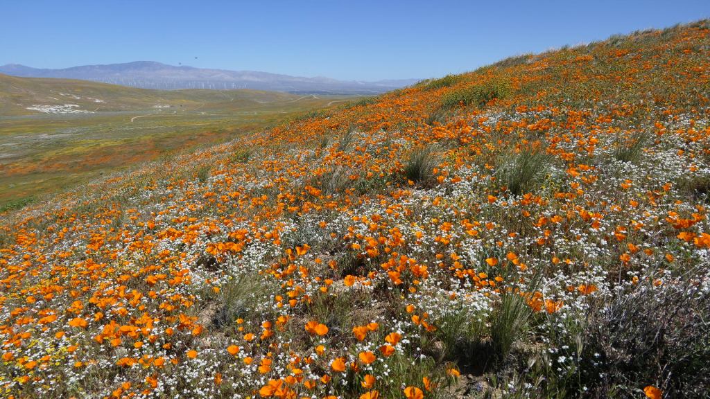 Albert Hammond가 부른 ‘It Never Rains in Southern California’ (https://youtu.be/Gmq4WIjQxp0)라는 노래가 암시하듯 남가주에서는 비가 귀하다. 겨울이 우기인데 그것도 근래에 와서는 아주 드문 일이 되었다. 그래도 가끔씩 비가 오는데 특히 금년에는 Atmospheric River (대기천: 大氣川, 대기 중에 농축된 수분이 띠 모양으로 강같이 형성되어 폭우를 유발한다) 현상으로 엄청난 폭우가 내려 피해도 심각한 상황이다. 적당량의 비에 햇빛이 동반되면 야생화들이 만개하는데 이를 super bloom, 또는 신조어로 superbloom이라 한다. 근자에는 2017년과 2019년에 그런 현상이 있었다. 금년에는 많은 비가 내려서 미국의 매체들이 경쟁하듯 이를 보도하고 있다. 그래서 super bloom의 대표적인 명소 Antelope Valley California Poppy Reserve와 Carrizo Plain National Monument를 찾아보았다.