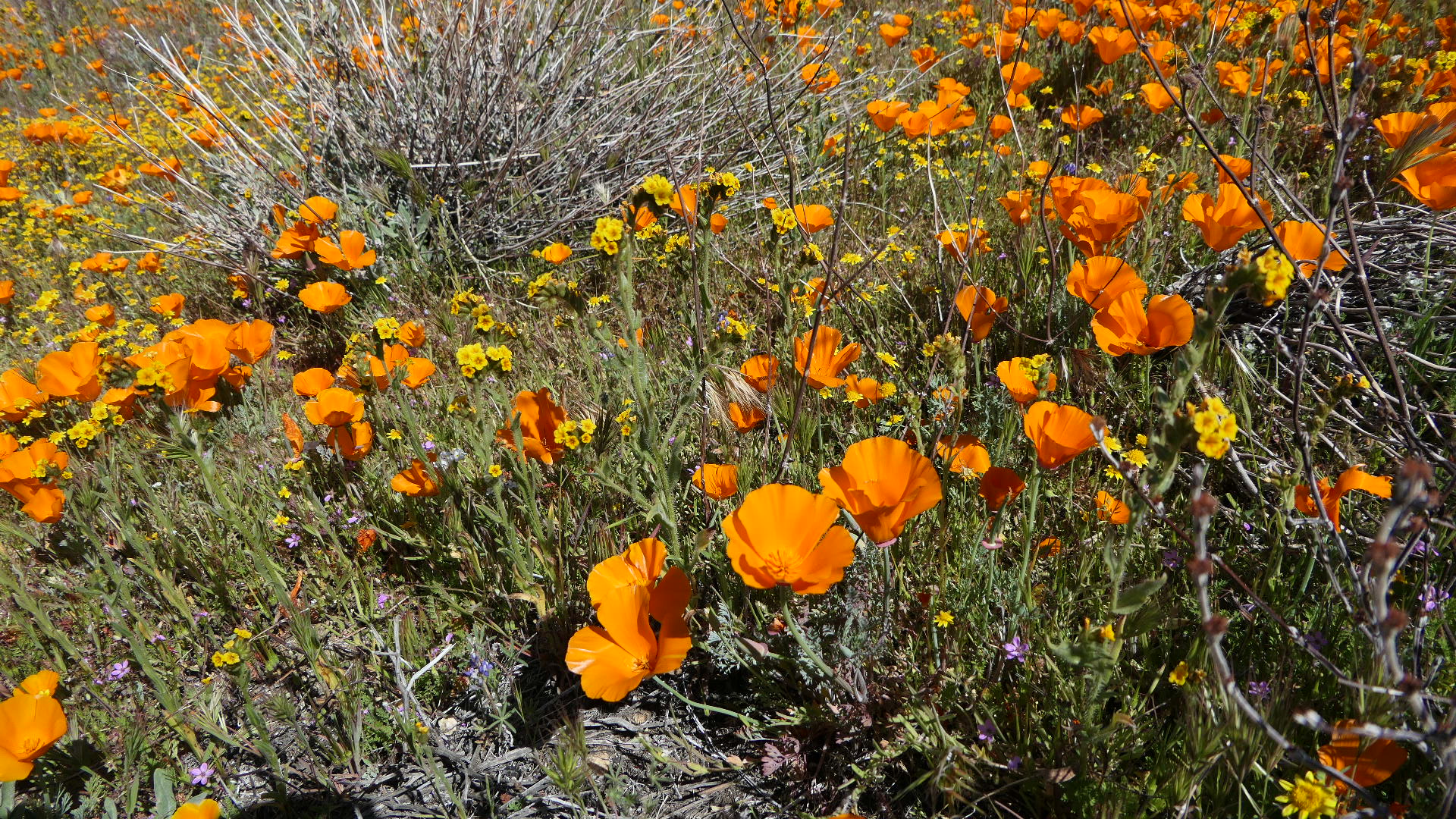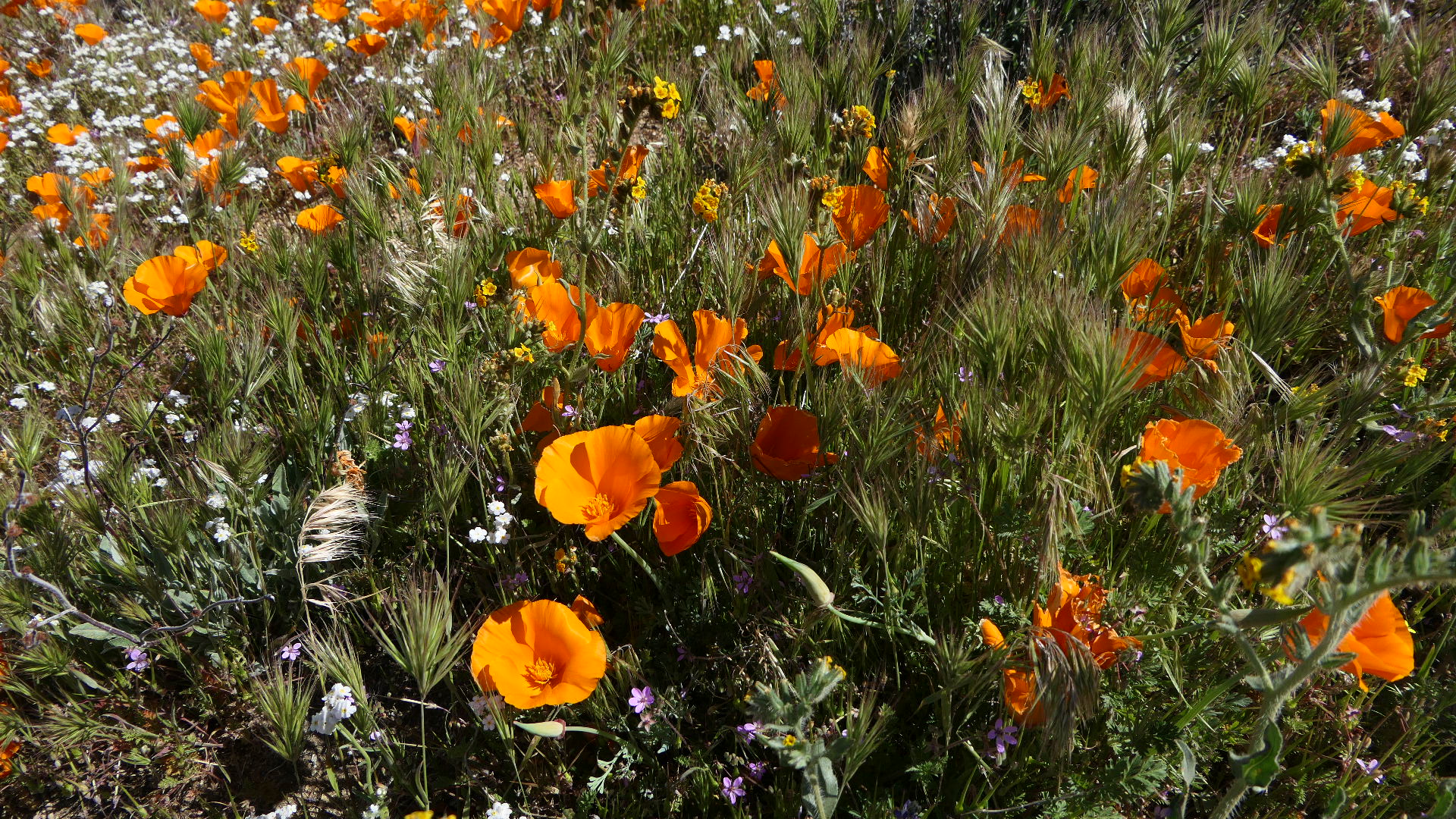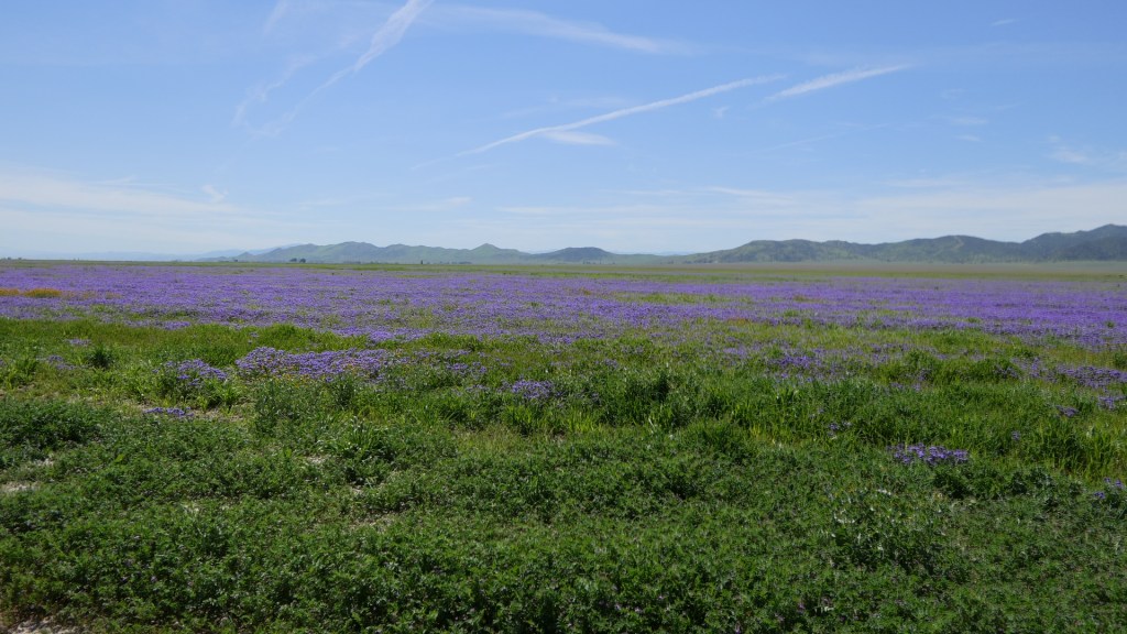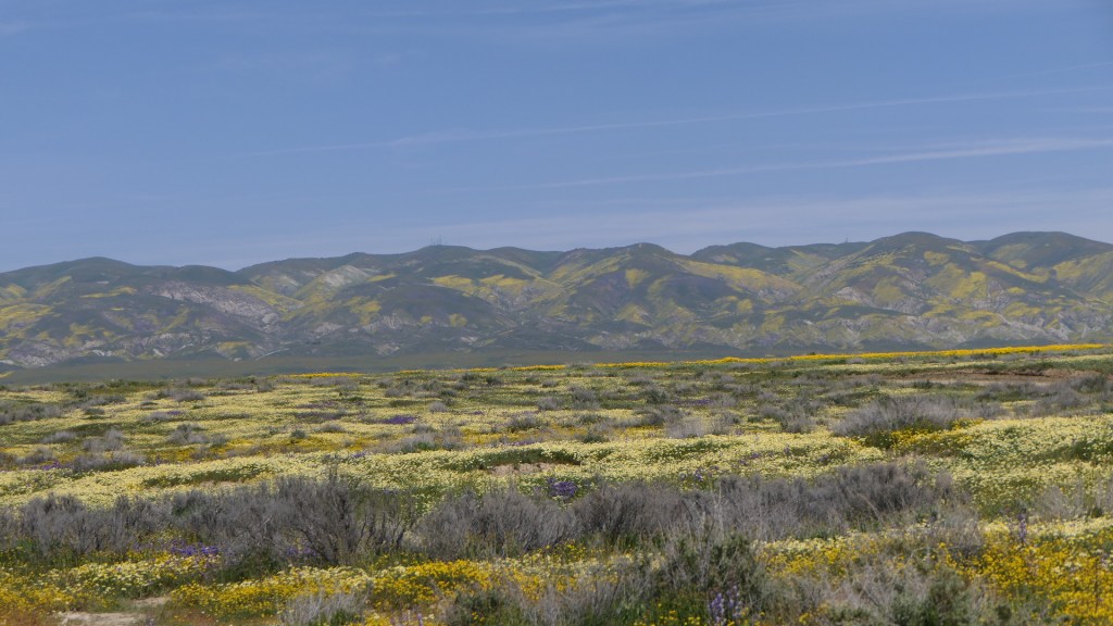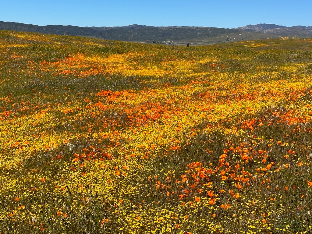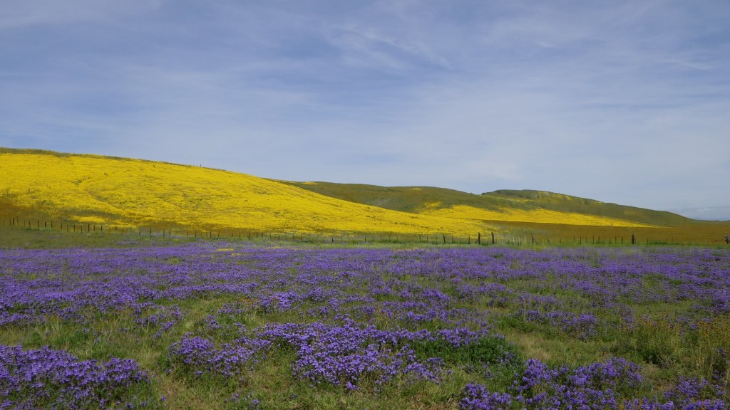 Albert Hammond가 부른 ‘It Never Rains in Southern California’ (https://youtu.be/Gmq4WIjQxp0)라는 노래가 암시하듯 남가주에서는 비가 귀하다. 겨울이 우기인데 그것도 근래에 와서는 아주 드문 일이 되었다. 그래도 가끔씩 비가 오는데 특히 금년에는 Atmospheric River (대기천: 大氣川, 대기 중에 농축된 수분이 띠 모양으로 강같이 형성되어 폭우를 유발한다) 현상으로 엄청난 폭우가 내려 피해도 심각한 상황이다. 적당량의 비에 햇빛이 동반되면 야생화들이 만개하는데 이를 super bloom, 또는 신조어로 superbloom이라 한다. 근자에는 2017년과 2019년에 그런 현상이 있었다. 금년에는 많은 비가 내려서 미국의 매체들이 경쟁하듯 이를 보도하고 있다. 그래서 super bloom의 대표적인 명소 Antelope Valley California Poppy Reserve와 Carrizo Plain National Monument를 찾아보았다.