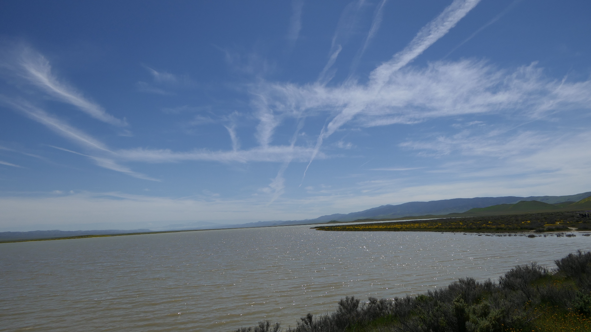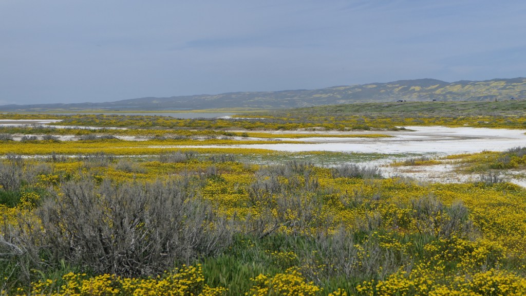 Carrizo Plain National Monument는 Los Angeles downtown에서 북서쪽으로 약 150 miles 떨어져 있는 면적 246,812 acres (999 Km2, 면적 605 Km2인 서울특별시의 약 1.7배인)의 국립 자연보호구역이다. 이 일대는 수백만 년 전에 Endorheic Drainage(바다로 연결되지 않은 강)가 있었는데, 태평양판과 북아메리카판 두 지각판의 충돌로 San Andreas Fault가 형성되며 출구가 없는 호수가 형성되었다. 세월이 흐르며 강수량보다 많은 호숫물이 증발하여 황산염과 탄산염이 주성분인 소금호수가 되어 Soda Lake이라 명명되었다. 그런 척박한 환경 속에도 호수 주변에 다양한 들꽃들이 서식하며, 자연조건이 맞아 꽃들이 다 피게 되면 엄청난 색깔의 향연을 볼 수 있는 곳이다. 우리는 남쪽 입구로 들어가서 전장 약 45 miles인 Soda Lake Road를 종주하여 북쪽으로 나가는 행로를 택하였다. 남쪽에서 들어가면 처음 약 7 miles가 포장도로이고 그 후 약 18 miles가 비포장, 나머지 20 miles 정도가 포장도로이다. 비포장 구간은 비가 온 후에는 통행이 제한된다. 달력에서 보는 사진들을 찍기 위해서는 곁길로 좀 들어가서 hiking으로 산등성이까지 올라가야 되는데, 비포장도로가 패인 곳이 많아서 high clearance vehicle이 아니면 위험하여 포기한 게 좀 아쉽다.