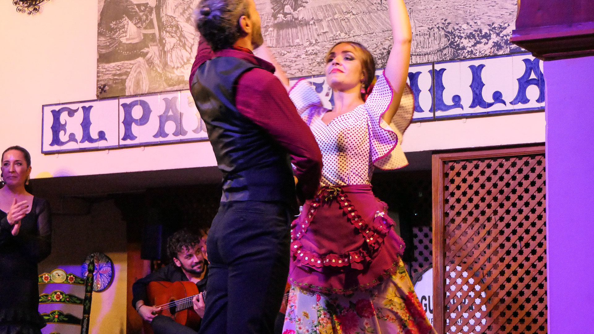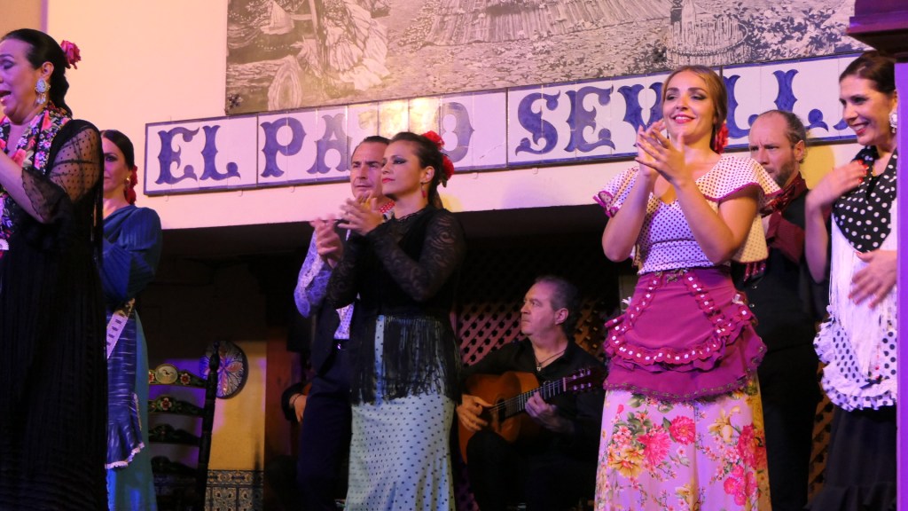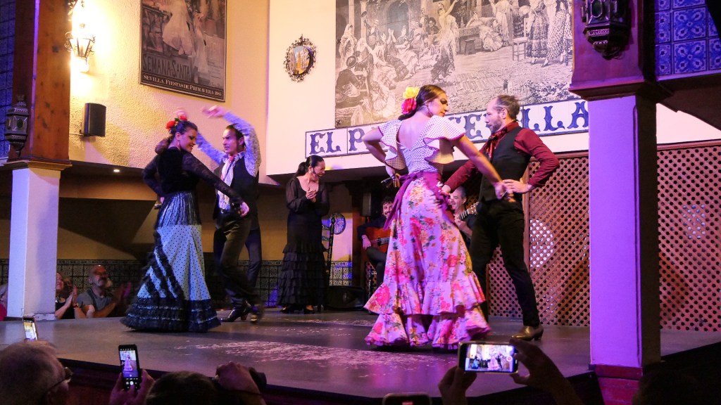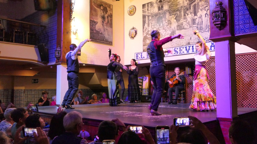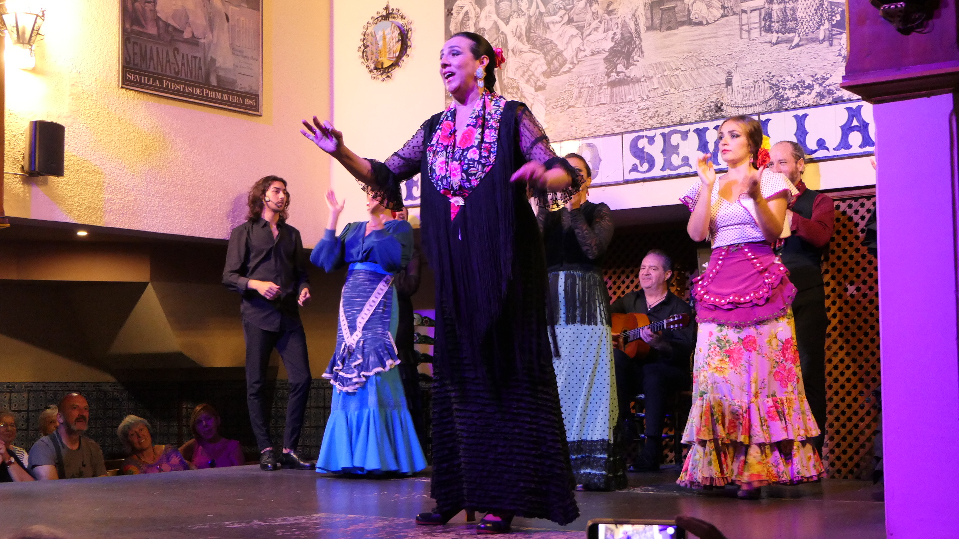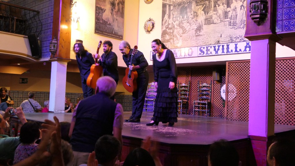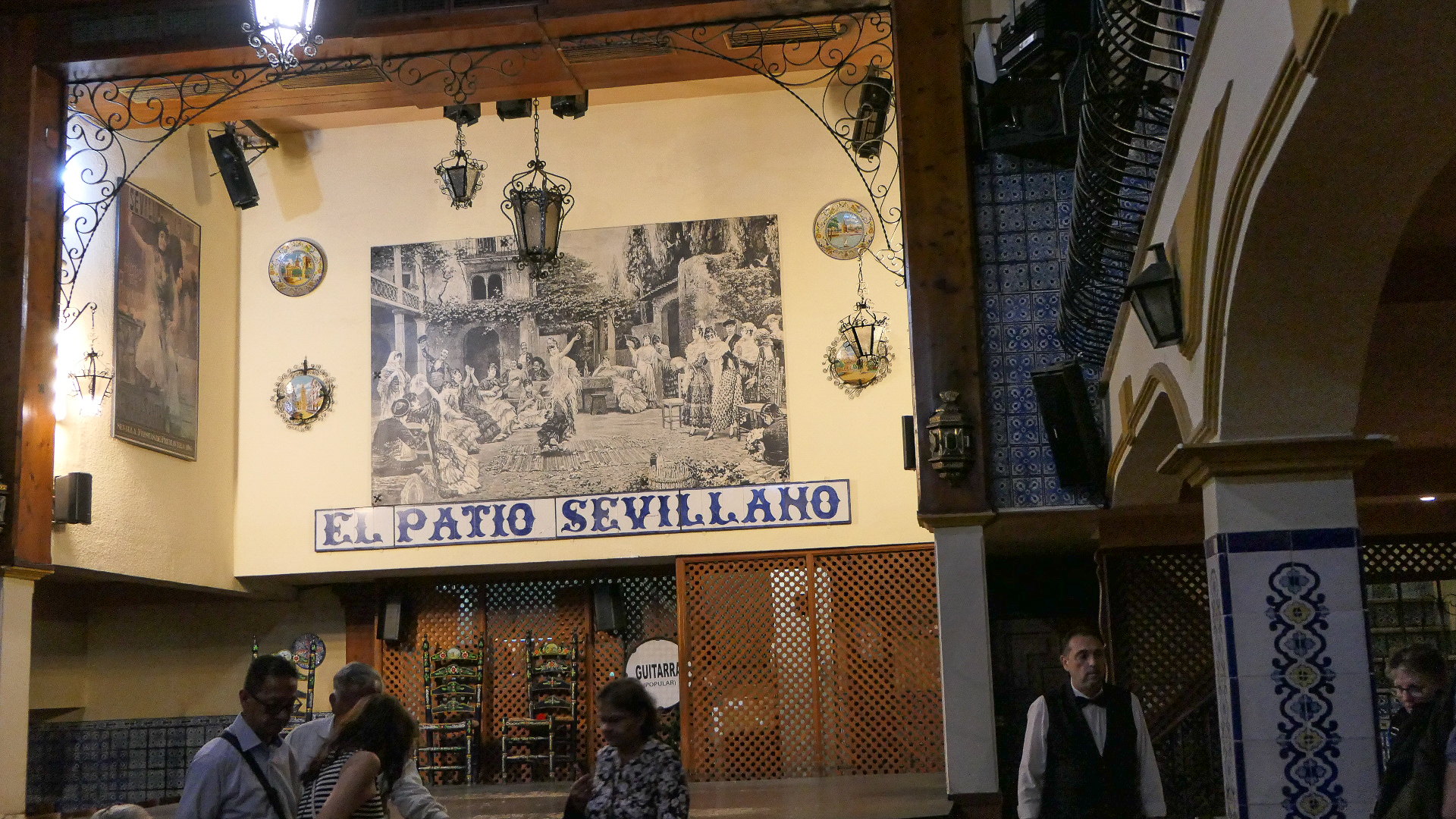 이래서 세빌에 도착한 날 처음 한 일이 플라멩코 공연 관람이었다. 세빌에서 플라멩코 공연장으로는 1952년에 설립되어 가장 오래 되었다는 도심에 있는 El Patio Sevillano라는 Tablao(마루 바닥의 무대가 있는 플라멩코 전문 공연장)에서였다. 이날 공연은 여러 주제로 이루어졌는데, 세빌의 담배공장 집시 여공, 병사, 투우사의 삼각관계를 다룬 비제의 오페라 카르멘을 주제로 한 부분이 단연 압권이었다. 이날 공연 중에 사진촬영이 엄격히 통제되었고 마지막 부분에서만 허용되었다.