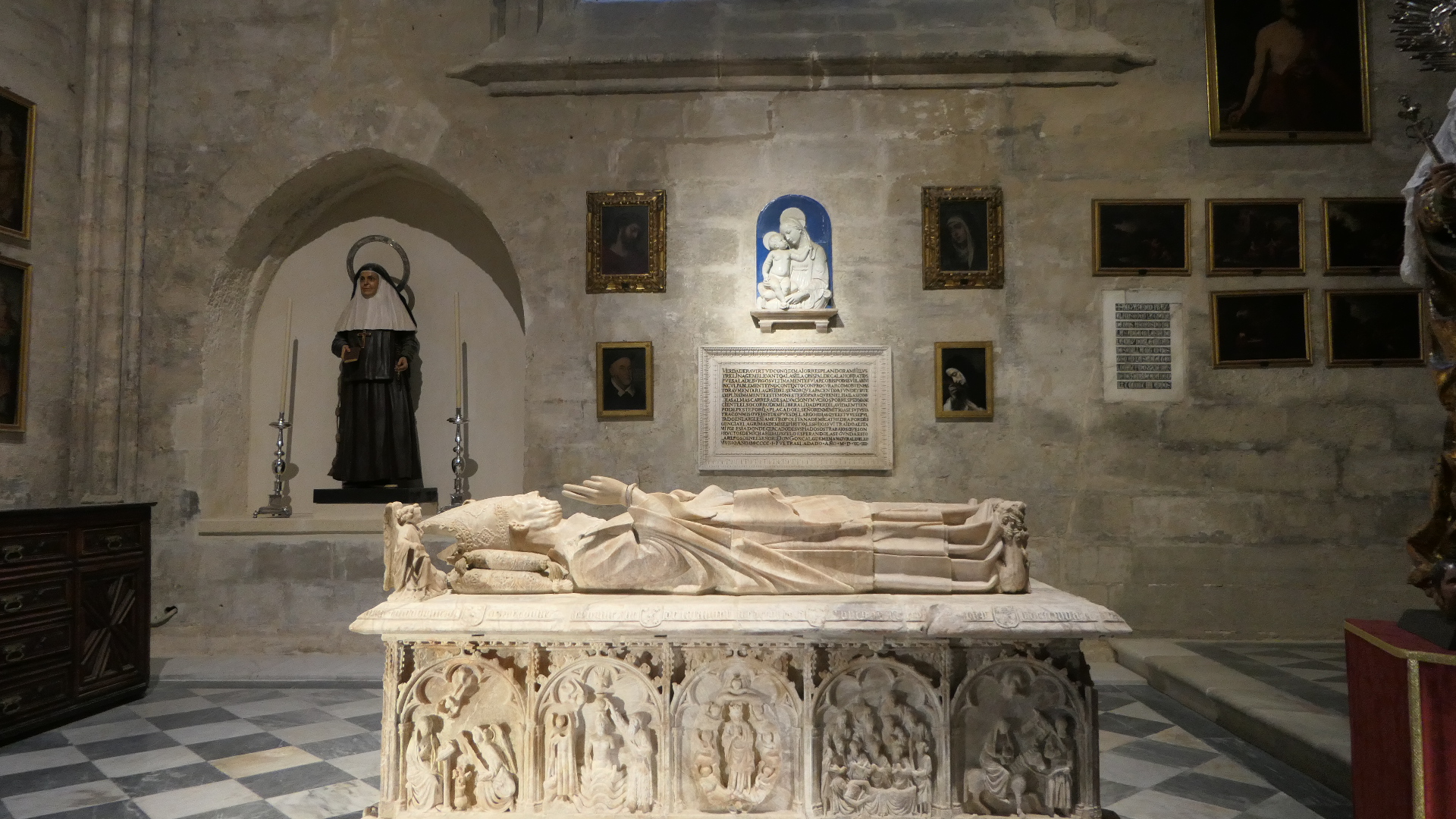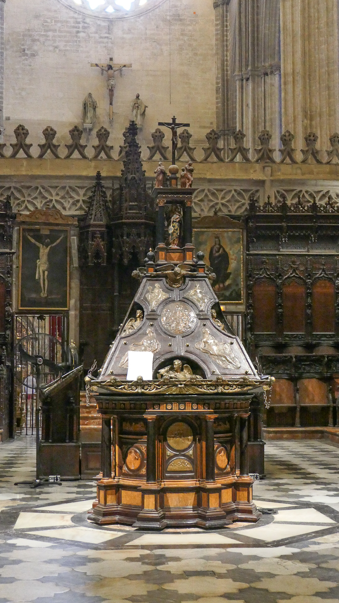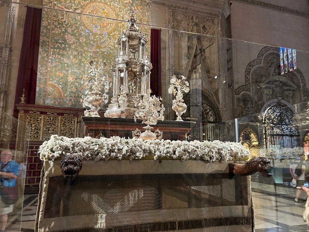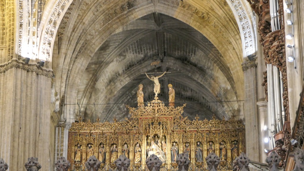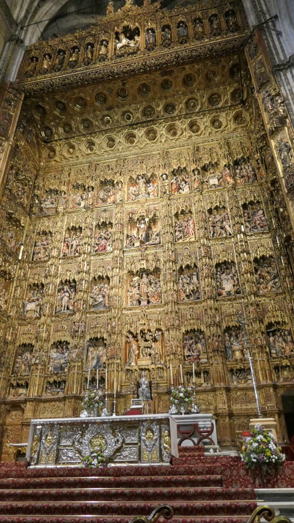 세빌성당 전경 (Source: Thomas Weyrauch)세빌성당 동쪽 광장에 있는 가로등 분수 (Fuente de la Farola)동쪽 광장에서 본 세빌성당 – 종탑 왼쪽에 있는 문이 Door of Sticks세빌성당 – 고딕양식 건물의 특징인 첨탑들과 오른쪽에 보이는 종탑 일부세빌성당 도마뱀의 문 – 단체입장은 이 문을 통해서 하는데 통로 천장에 박제한 악어와 상아가 걸려있다. 중세시대에 북아프리카의 왕이 카스틸 왕국의 공주에게 청혼하며 이국적 선물을 보냈는데 그 중 하나가 악어였다. 그러나 악어는 오래 못 살고 죽었고 이에 박제를 하여 여기에 매달아 놓았다고 한다.세빌성당 오렌지 나무 정원에서 본 종탑세빌성당 종탑 윗부분세빌성당 파이프 오르간세빌성당 은(銀)의 제단세빌성당 성가대석 후면(後面) – Trascoro (Retrochoir 또는 Back Choir)세빌성당 성가대석 후면 십자가의 예수세빌성당 주 예배실 제단세빌성당 주 예배실 천장세빌성당 성가대석 목각 장식세빌성당 성가대 지휘자 용 보면대세빌성당 콜럼버스 묘세빌성당 콜럼버스 묘세빌성당세빌성당 Santiago Chapel – 대주교 Gonzalo de Mena y Roelas의 묘와 그의 치적으로 장식된 벽 및 자기로 된 입체벽화 La Virgen del Cojín (The Virgin of the Cushion, 성모 마리아가 방석 같은데 앉아서 아기 예수를 안고 있는 그림의 일반적 이름)세빌성당 동정녀 마리아 수태의 문 – 오렌지 나무 정원에서세빌성당 동정녀 마리아 수태의 문과 종탑 – 오렌지 나무 정원에서세빌성당 용서의 문 – Calle Alemanes에서빌성당 용서의 문과 오른쪽에 보이는 성막 교회 일부
