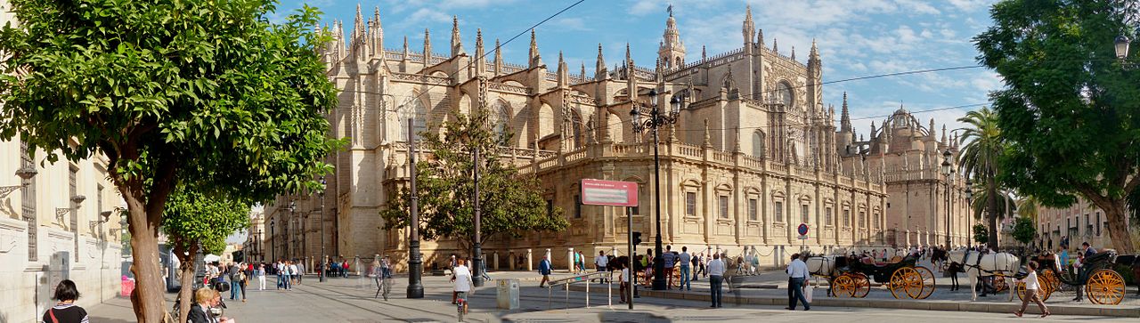 Catedral de Sevilla(Cathedral of Seville, 세빌성당)의 공식이름은 Catedral de Santa Maria de la Sede de Sevilla(Cathedral of Saint Mary of the See of Seville)이다. 참고로 Cathedral of the See는 주교가 주재하고 있는 성당을 뜻한다. 공식 이름이 너무 길어서 확 줄인 Seville Cathedral이라는 별명으로 더 알려져 있다. 1507년에 봉헌된 이 성당은, 이스탄불에 있는 소피아 성당이 천여 년간 유지했던 기록을 깨고, 세계에서 가장 큰 성당이 되었다. 원래 고딕식으로 지어진 성당에 종탑, 르네상스와 바로크 및 신고전 풍의 부분들이 증축되며 길이 443 ft (135 m), 폭 330 ft (100 m), 종탑을 제외한 높이 138 ft (42 m)의 거대한 건물이 되었다. 종탑의 높이는 344 ft (105 m)이다. 성당의 면적은 252,952 ft2(23,500 m2)에 달하며 축구장의 약 3배에 해당한다.