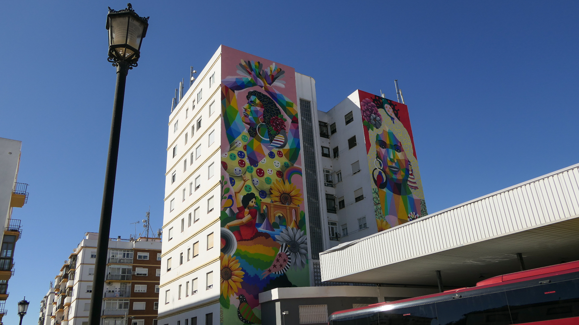 론다에 있는 관광버스 주차장에서 내리니 바로 벽화가 있는 건물이 눈에 들어온다. 스페인의 화가이자 조각가 Óscar San Miguel Erice(예명 Okuda)의 El Nuevo Flamenco(The New Flamingo)라는 작품이다. 여기서부터 론다 관광이 시작되었다.