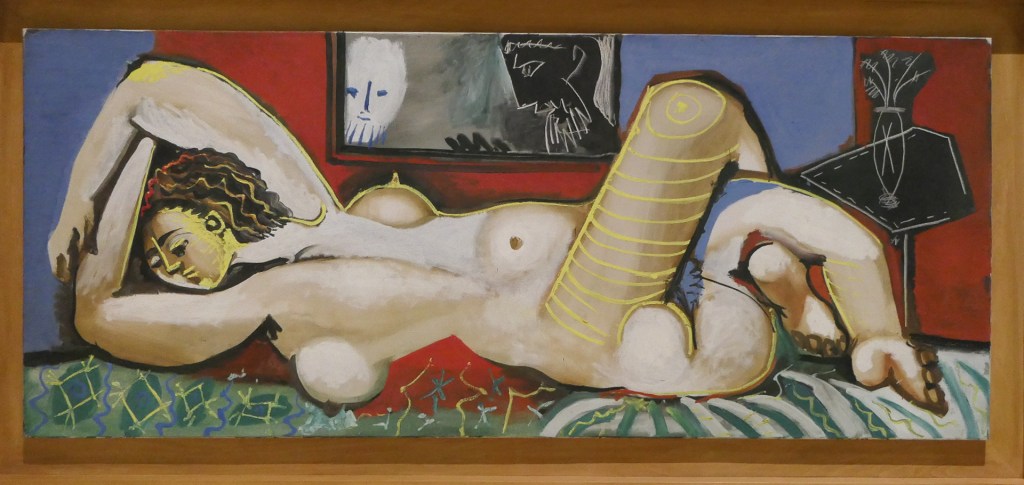피카소 미술관 입구피카소 미술관 안뜰피카소, Retrato de un Hombre Barbudo (Portrait of a Bearded Man), 1895피카소, Fernande con Mantilla (Fernande with Mantilla), 1906피카소, Les Demoiselles d’Avignon (Young Ladies of Avignon), 1907 – Cubism 창시자 피카소의 cubism 대표적인 작품으로 아프리카 풍도 가미되어 또 다른 면을 표출하였다. 원제는 Le Bordel d’Avignon(아비뇽의 매춘굴)이었는데 전시회에 적합치 않아 바뀌었다. 아비뇽은 잘 알려진 불란서의 도시 이름이 아니고 바르셀로나에 있는 홍등가 이름이라고 한다.피카소, Naturaleza Muerta con Guitarra (Still Life with Guitar), 1920피카소, Retrato de Olga (Portrait of Olga), 1923피카소, Niño con Juguete (Child with Toy), 1923미술관 2층미술관 2층 복도 천장의 목각피카소, La Siesta (The Siesta), 1932피카소, Bodegon con Minotauro y Paleta (Still Life with Minotaur and Palette), 1933피카소, Mujer con los Brazos Levantados (Woman with Raised Arms), 1936피카소, Mujer en un Sillón (Woman in an Armchair), 1946François Gilot 사진, Mujer en un Sillón (Woman in an Armchair)의 모티브가 되었던 40년 연하의 제자이자 애인이었던 여인. 1943년부터 1953년까지 동거하였고 둘 사이에 아이 둘이 있다.피카소, François, 1946피카소, Naturaleza Muerta con Cráneo y Tres Erizos (Still Life with Skull and Three Urchins), 1947피카소, Desnudo Acostado con Gato (Reclining Nude with Cat), 1964피카소, Susana y los Ancianos (Susanna and the Elders), 1955피카소, El Pintor y la Modelo (The Painter and the Model), 1963피카소, Nino con una Pala (Child with a Shovel), 1971