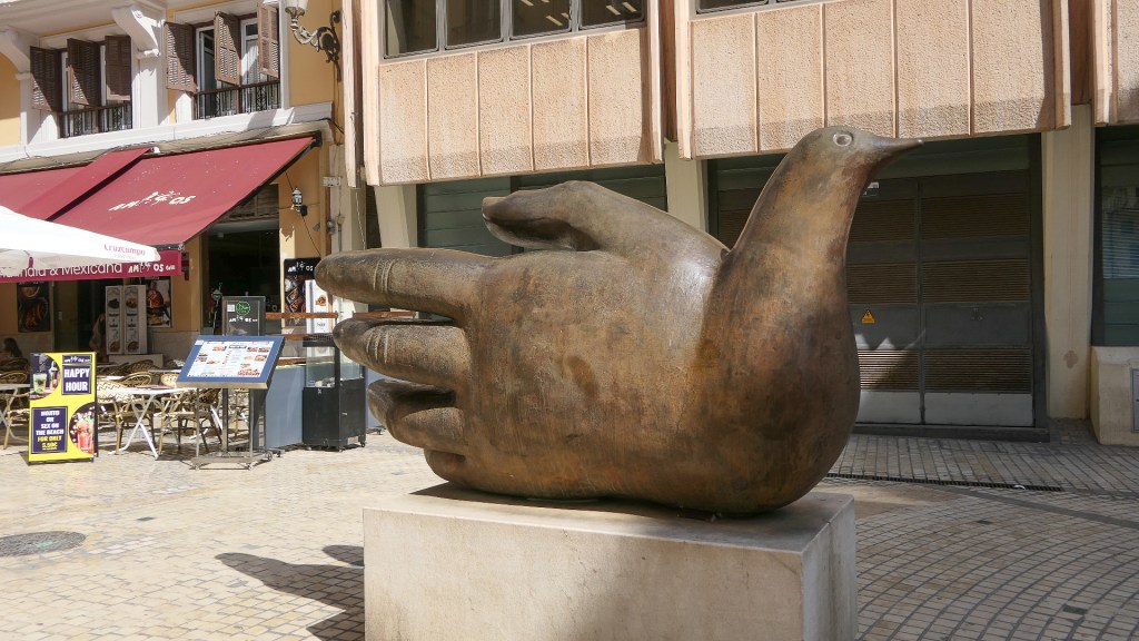 말라가 등대항구 건너편에 보이는 Catedral de la Encarnación de Málaga (성육신 성당)항구에 정박하고 있는 superyacht 넘어 보이는 Alcazaba of Málaga – 11세기부터 14세기 사이에 지어진 무어 풍의 성채항구에서 본 Alcazaba of MálagaPlaza de la Merced – 남부 스페인에 많이 있는 보라색 꽃이 피는 Jacarandas 나무와 오른쪽 앞에 있는 Persian Silk TreeMonumento a Torrijos – Plaza de la Merced 한가운데에 있는 Torrijos 장군 추모비, Ferdinand VII 왕권에 반기를 들었다 재판없이 동료 48명과 함께 1831년에 말라가 해변에서 총살당했다.Plaza de la Merced 피카소 생가 앞에 있는 동상 – 사진찍기 위해 사람들이 줄을 서 있어서 본의 아니게 증명사진을 찍어야만 했다