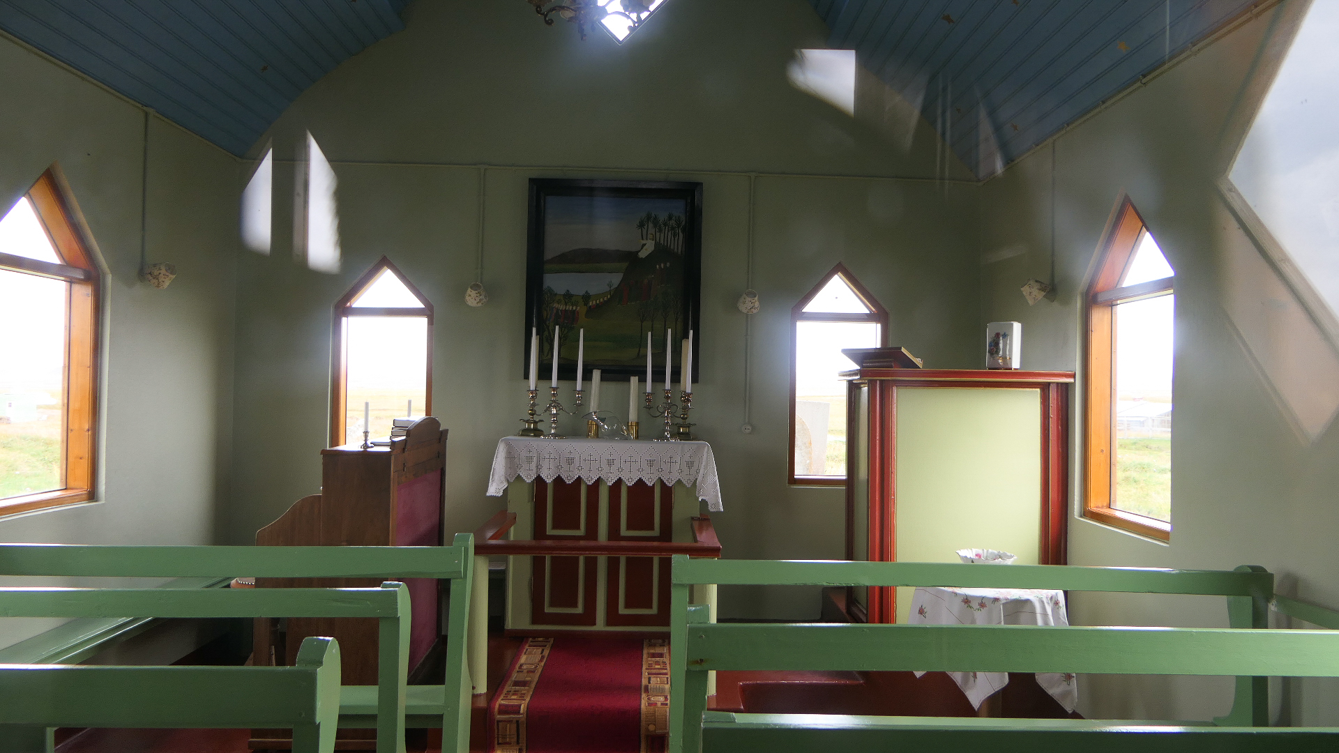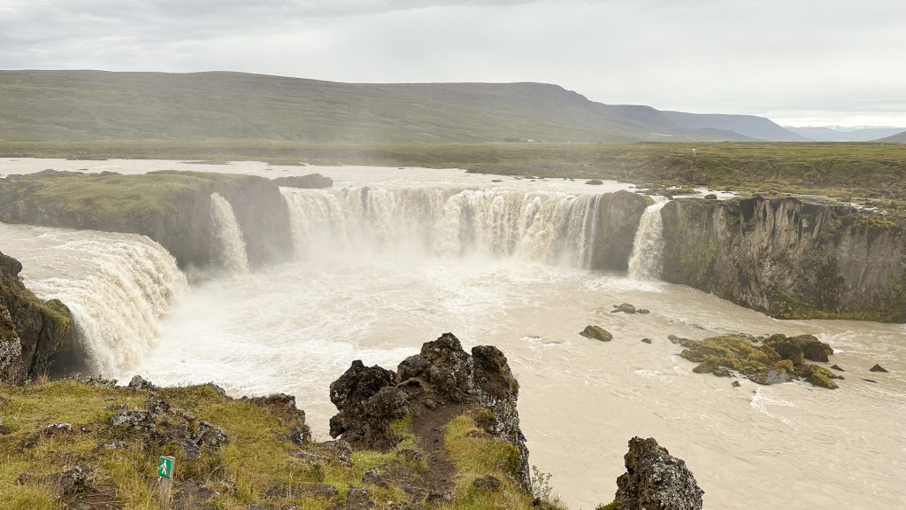 오늘 묵을 Egilsstaðir를 향해 가는 길에 오후 휴식을 위해 들른 곳이 Möðrudalur(Mother Valley)에 있는 Fjallakaffi(Mountain Coffee)였다. 이 지역에는 아이슬란드에서 사람이 상주하는 농장 중 가장 높은 해발 1,539 ft(469 m)에 위치한 농장이 있다. 식당과 카페, 숙박시설 및 교회가 있다. 식당에서는 농장에서 기른 양고기, 염소우유 치즈, 직접 잡은 거위와 arctic char(북극해에 살다가 산란기에 민물로 회귀하는 연어나 숭어와 비슷한 물고기) 등을 재료로 한 아이슬란드 특유의 요리를 판다. 카페에서 커피 한잔과 같이 한 Kleina(아이슬란드 식 꽈배기 도넛 또는 Love Ball이라는 애칭으로 불리는 동그란 도넛)와 Hjónabandssæla(Happy Marriage Cake)은 꿀맛이었다.