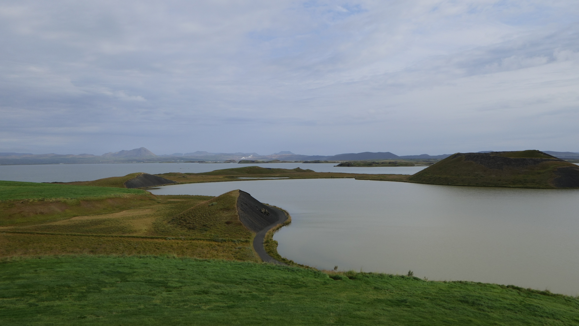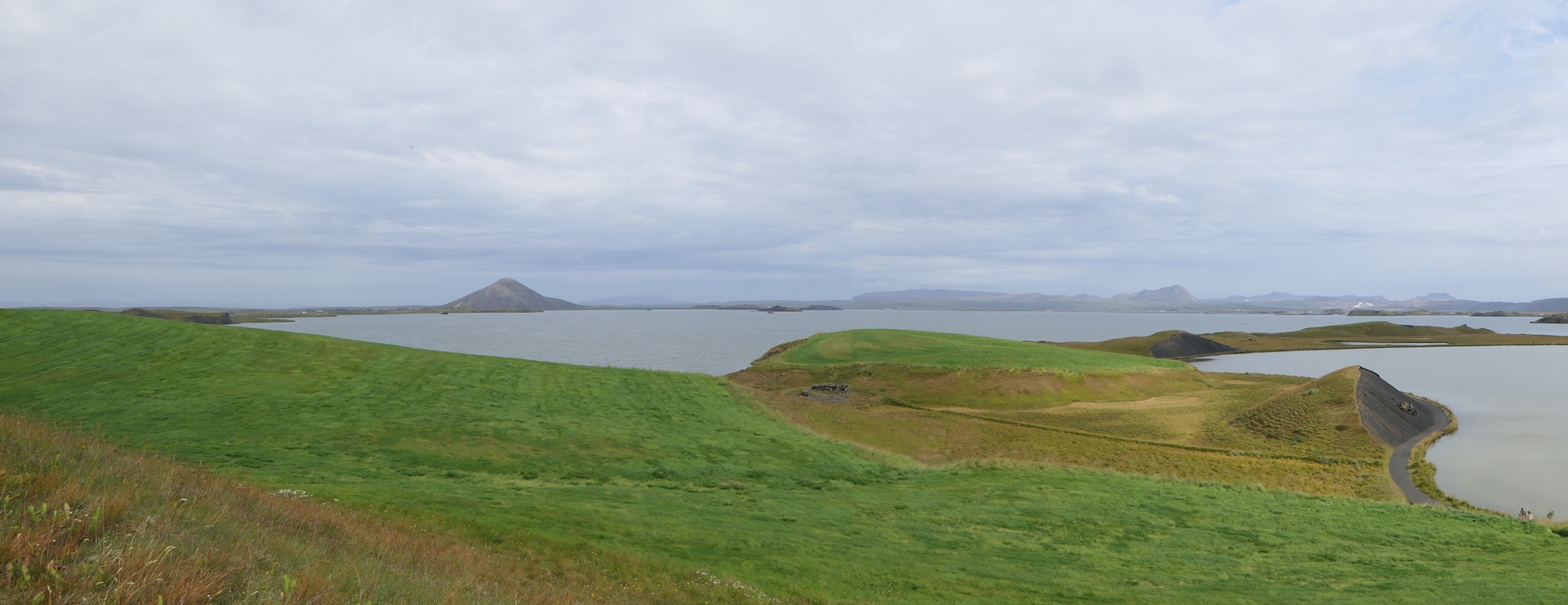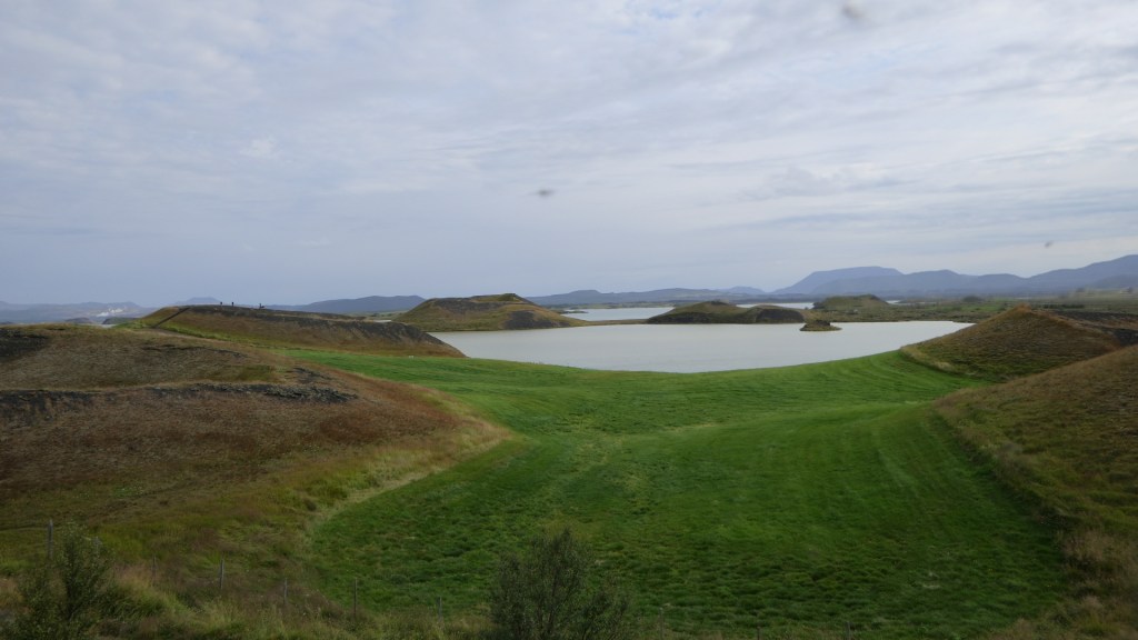 미바튼(Mývatn) 호수는 아이슬란드에서 4번째로 큰 호수이다. 호수 이름은 아이슬란드 어로 날파리를 뜻하는 ‘mý’와 호수를 뜻하는 ‘vatn’의 합성어이다. 실제로 여름에는 날파리가 숨쉴 때 코로, 또한 눈과 입으로 들어갈 정도로 들끓는 곳이다. 그래서 미바튼 호수를 방문할 때는 방충망이 필수이다. 이 호수는 약 2,300년전에 지각의 균열을 뚫고 현무암 성분의 용암이 분출하며 생성되었다. 화산과 지열 작용이 매우 활발한 이 호수 일대에는 그로 인해 형성된 특징적인 지형이 많이 분포되어 있다. 호수 남쪽에 있는 Skútustaðagígar (스쿠투수타다기가르, Ship Position Craters) 일대에는 pseudo-craters(가 분화구)들이 몰려 있다. 가(假) 분화구는 화산폭발이나 용암분출로 생긴 것이 아니고 습지에서 지열과 용암의 작용으로 수증기가 축적되어 증기가 분출되며 형성된 것이다.