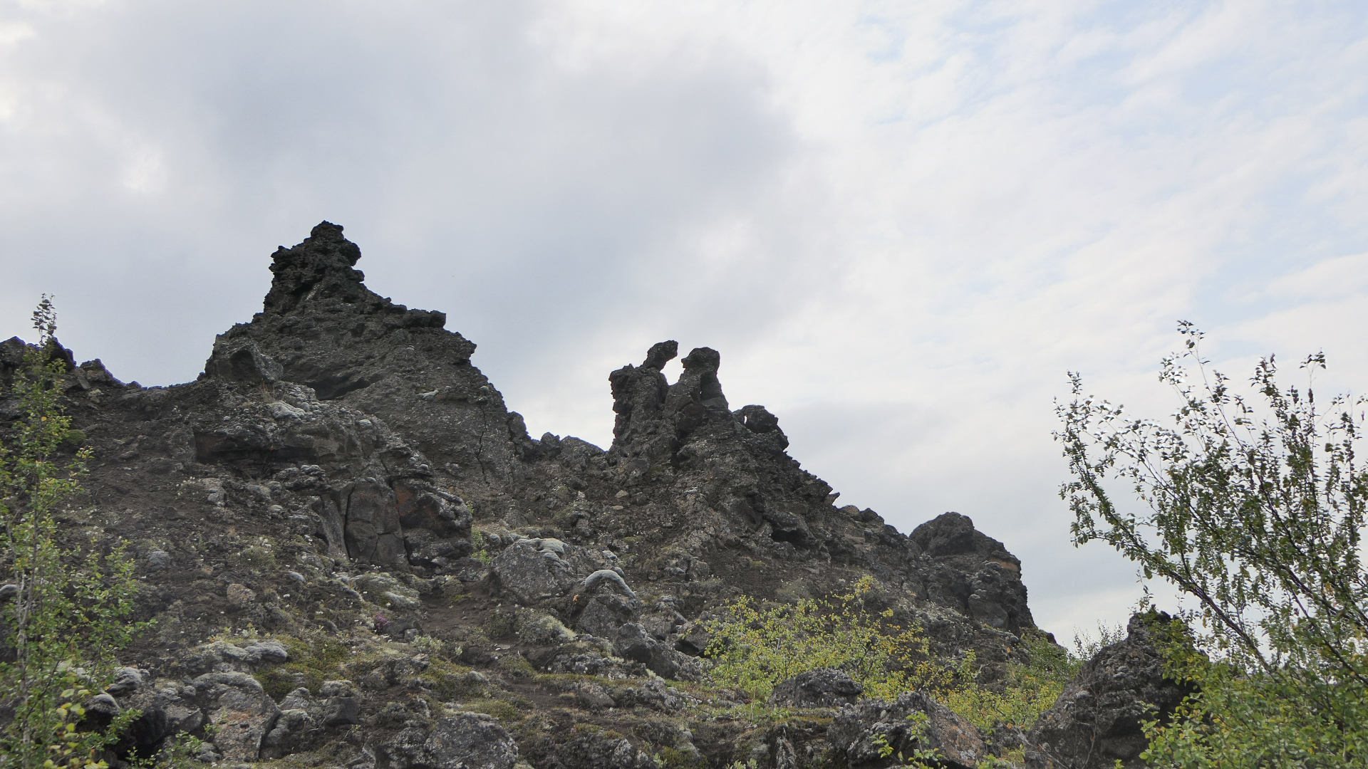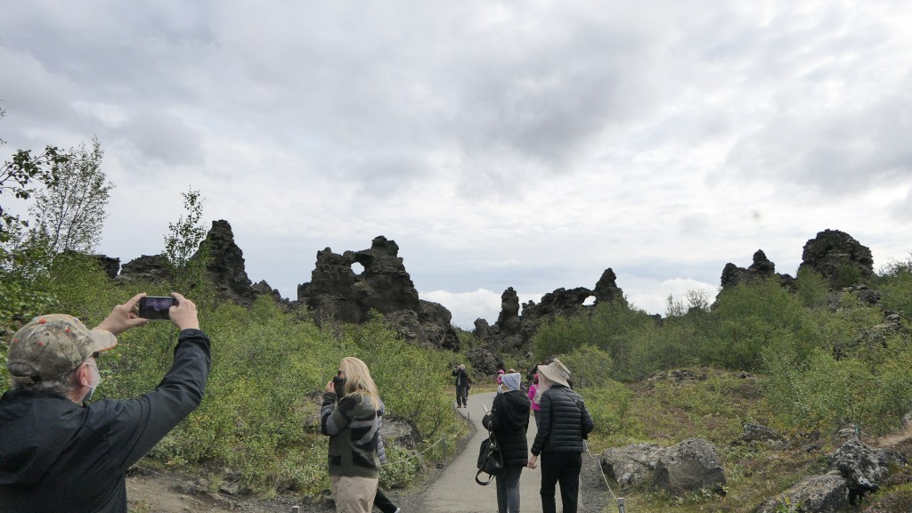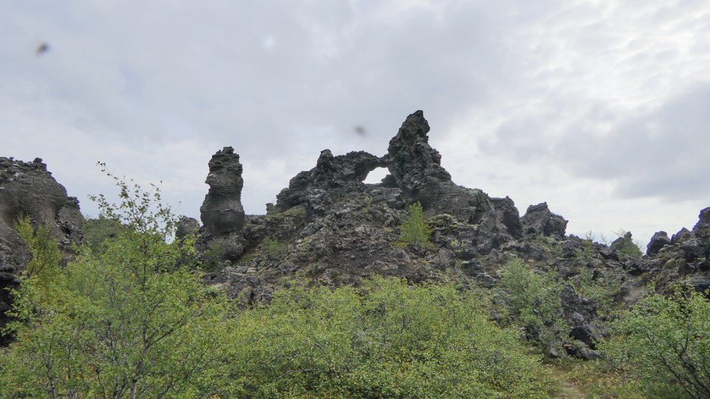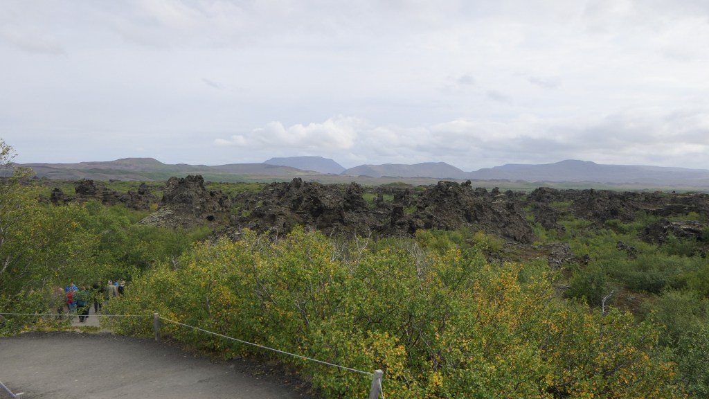 미바튼 호수 동쪽에 기괴하게 생긴 용암들이 모여 있어서 Dimmuborgir(디뮤보르기, Dark Cities/Castles)라는 이름이 붙여진 곳이 있다. 호수가 생길 때 흐르던 용암을 뚫고 수증기가 분출되며 용암기둥이 우선 만들어졌다. 수증기가 분출되고 있는 내부는 비어 있는 상태에서 용암기둥이 겉부터 불규칙하게 식으며 기기묘묘한 모양을 이루기 시작하였다. 이러한 기둥들이 완전히 식은 후에도 약한 겉부분이 떨어져 나가며 지금의 용암밭이 형성되었다. 아이슬란드의 전설에 의하면 이 곳이 지옥으로 통하는 지점이고, 북구의 전설에 의하면 사탄이 하늘로부터 쫓겨난 후에 지옥의 묘지를 만든 곳이라 한다. Dimmuborgir는 Game of Thrones의 촬영지로 더욱 유명해졌다.