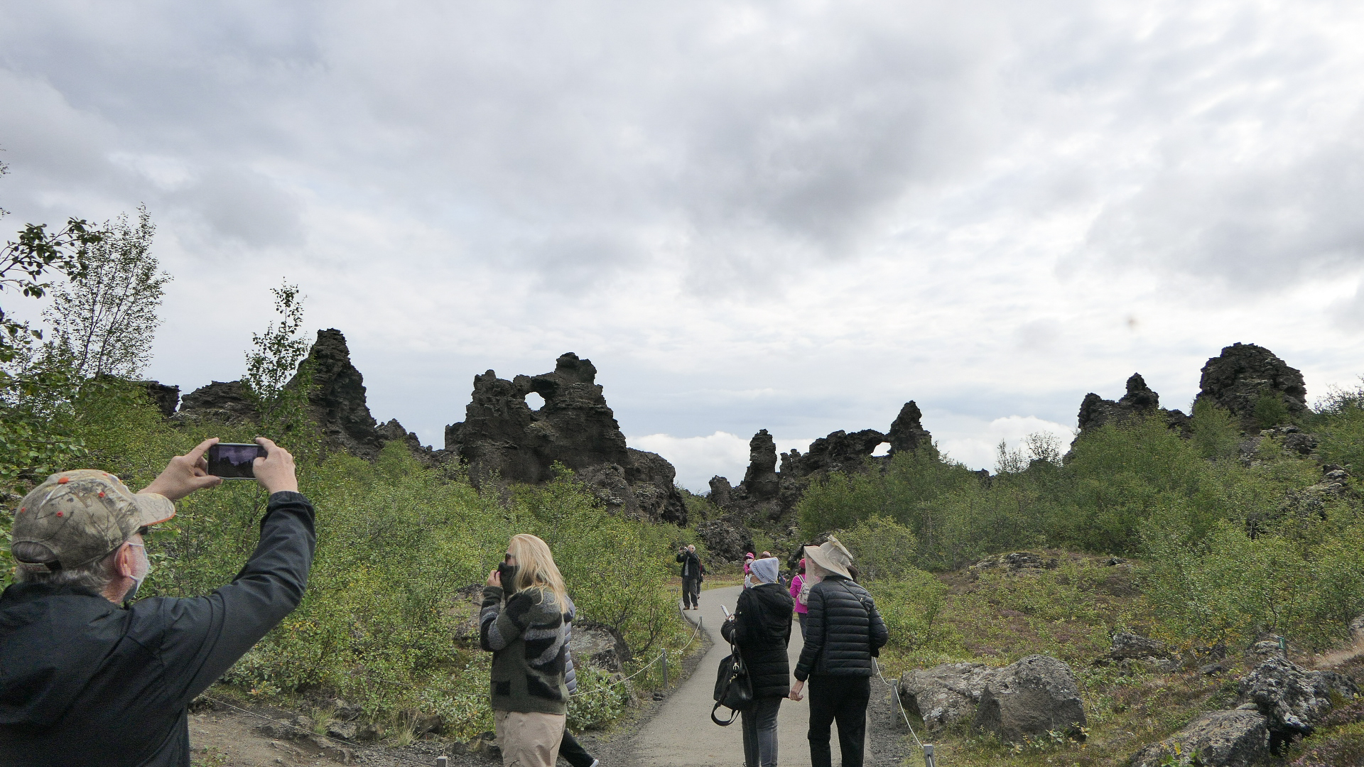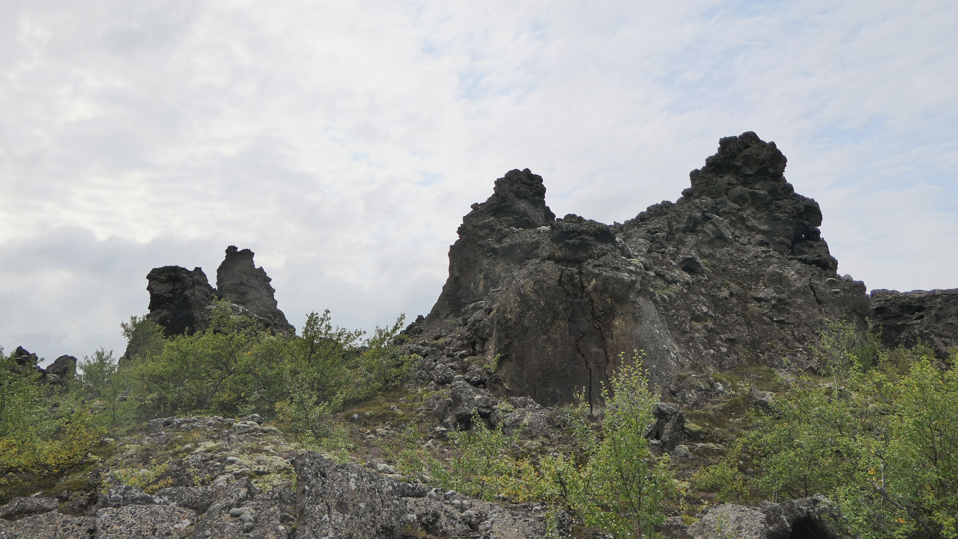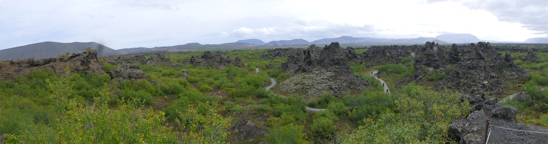 미바튼 호수 동쪽에 기괴하게 생긴 용암들이 모여 있어서 Dimmuborgir(디뮤보르기, Dark Cities/Castles)라는 이름이 붙여진 곳이 있다. 호수가 생길 때 흐르던 용암을 뚫고 수증기가 분출되며 용암기둥이 우선 만들어졌다. 수증기가 분출되고 있는 내부는 비어 있는 상태에서 용암기둥이 겉부터 불규칙하게 식으며 기기묘묘한 모양을 이루기 시작하였다. 이러한 기둥들이 완전히 식은 후에도 약한 겉부분이 떨어져 나가며 지금의 용암밭이 형성되었다. 아이슬란드의 전설에 의하면 이 곳이 지옥으로 통하는 지점이고, 북구의 전설에 의하면 사탄이 하늘로부터 쫓겨난 후에 지옥의 묘지를 만든 곳이라 한다. Dimmuborgir는 Game of Thrones의 촬영지로 더욱 유명해졌다.
