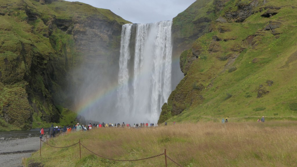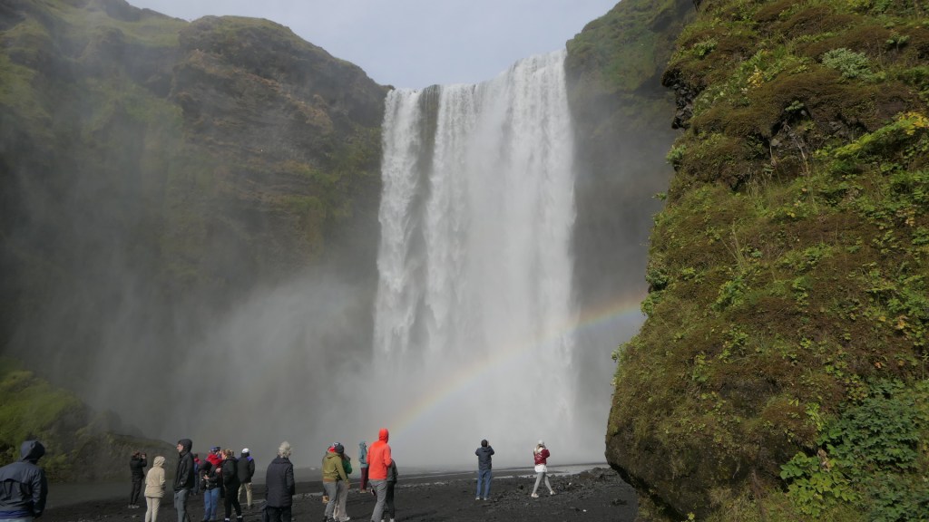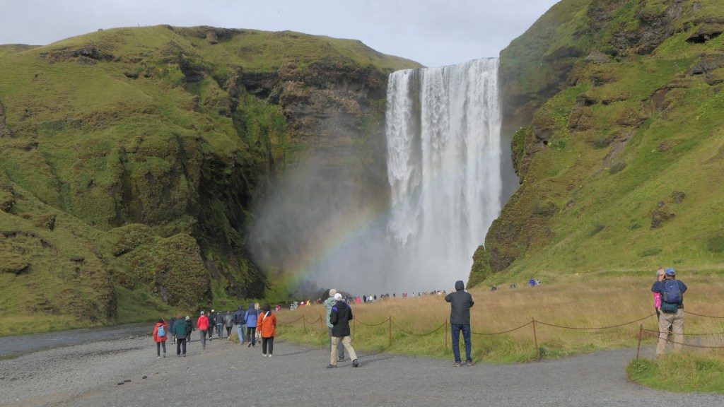 스코가폭포(Skógafoss, Forest Waterfall)는 높이 197 ft (60 m) 폭 82 ft (25 m)의 아이슬란드에서 가장 크고 아름다운 폭포이다. 낙차가 커서 물보라가 일고, 계곡의 위치로 인해 바람이 불어, 해가 떠 있으면 최소 한개의 무지개가 항상 떠있다고 알려져 있다. 스코가 강줄기에 있는 이 폭포의 하류에는 연어의 일종인 Arctic Char가 많이 잡히는 곳이기도 하다.
