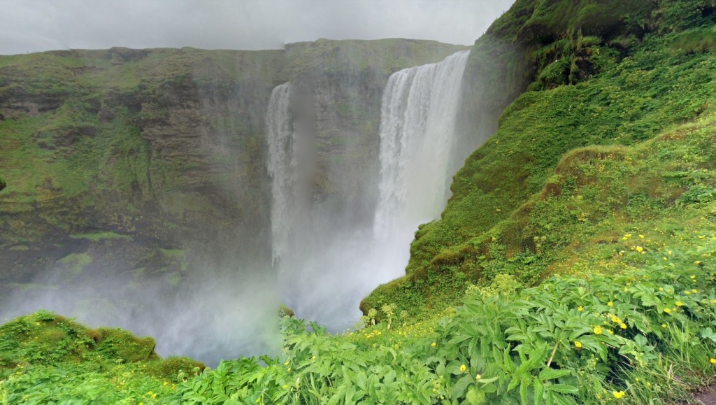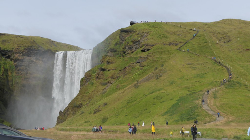 오늘의 하이라이트는 스코가폭포(Skógafoss, Forest Waterfall)와 셀리아란즈폭포(Seljalandsfoss, Seljalands Waterfall)이다. 가는 길에 들른 곳이 스케이다라 다리 유적(Skeiðará Bridge Monument)이다. 이 일대에는 바트나빙하의 outlet glacier에서 흘러내리는 개천과 검은색의 부서진 용암들로 덮여 있었다. Skeiðará 다리는 순환도로 1번에 있었던 다리 중 2,890 ft(880 m)로 가장 긴 다리였으며 홍수에 대비해서 강철로 지어진 다리였다. 그러나 1996년에 바트나빙하 밑에 있는 화산이 폭발하며 홍수가 발생했고 동시에 집채 만한 빙산들이 떠내려 오며 이 다리의 대부분이 유실되고 말았다. 지금은 십자 모양의 강철 골조가 한 조각 남아 있을 뿐이다.