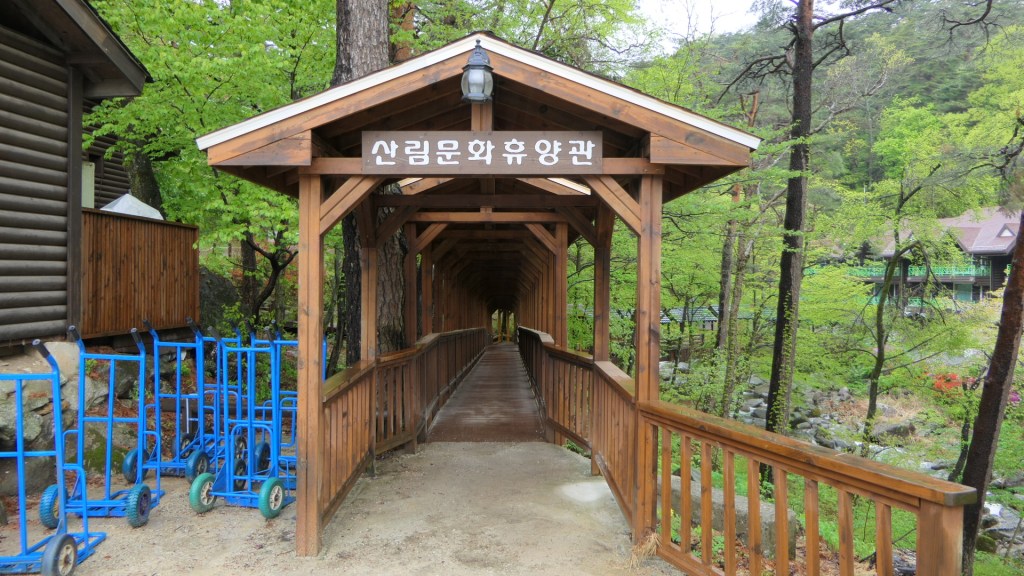 일기예보에 비가 온다지만 계획대로 국립대관령자연휴양림을 방문하기로 하였다. 이곳은 1988년에 한국 최초로 지정된 자연휴양림이다. 대관령 동쪽 중턱 고지대에 있으며 50년내지 200년 가까이 된 아름드리 소나무숲 속에 기암괴석과 폭포가 있어 아름다운 경관을 자랑한다. 자연적으로 자란 소나무숲에 1920년부터 조성된 소나무들이 더해져 전국에서 가장 아름다운 3대미림 중 하나로 꼽힌다. 숙박시설 및 야영장을 비롯한 부대시설을 갖추었으며 다양한 학습 및 체험 프로그램도 있고 계절마다 독특한 풍광이 있기에 언제 찾아도 좋을 듯싶다. 입구에 도착했는데 비가 제법 오기 시작하니 포장 되어있는 산림문화휴양관 앞에 있는 주차장까지 만 갔다 오라며 대신 표는 안 사도 된다고 한다. 수련장 쪽은 좁은 언덕길이니 위험할 수도 있다니 그냥 입구에서 맴돌다 나왔다.