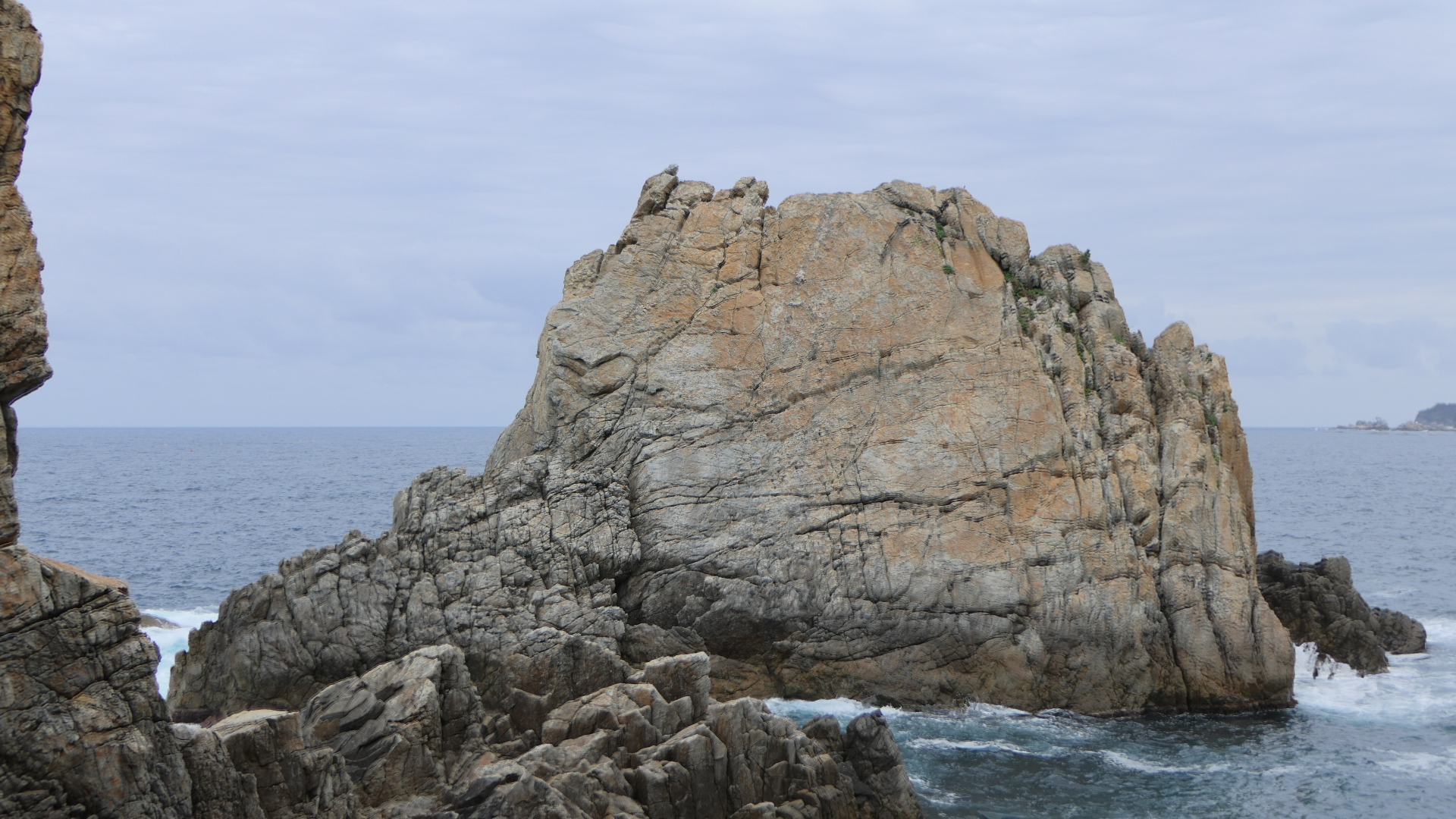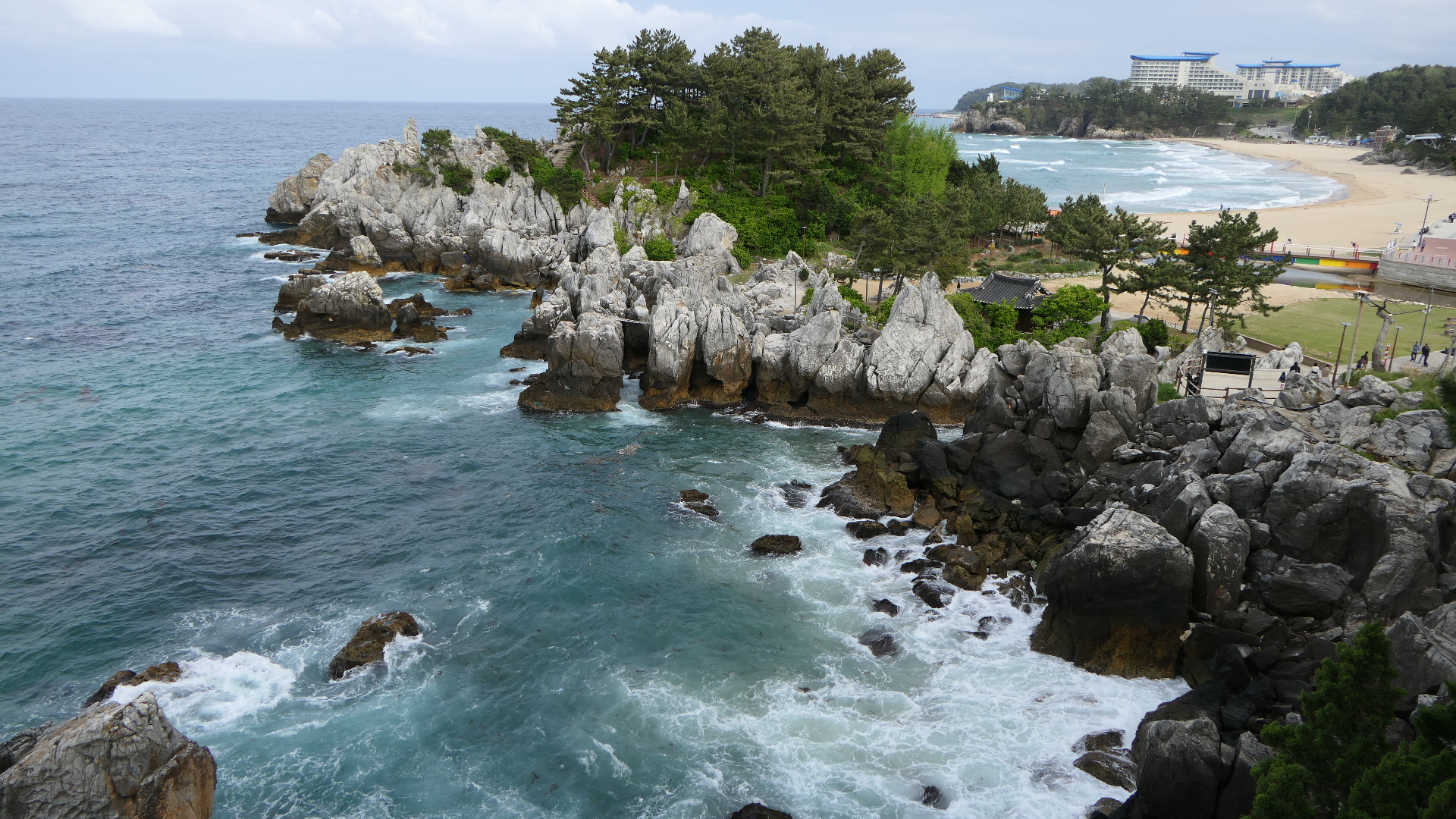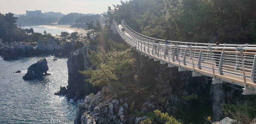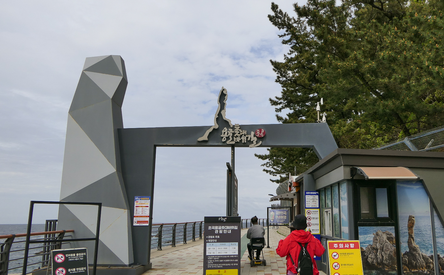 옛날에는 동해 하면 강릉, 강릉 하면 경포대 해수욕장이었다. 그런데 이제는 명소가 너무나 많아서 하루에 다 돌기가 바쁠 지경이다. 우리는 바닷길 몇 군데를 가보기로 하였다. 먼저 들른 곳이 정동심곡 바다부채길이다. 정동진은 강원도 강릉시에 있는 바닷가로 한양의 광화문에서 정동쪽에 있는 나루터라 하여 붙여진 이름이다. 정동진은 신라 때부터 임금이 사해용왕에게 제사를 지내던 곳으로 알려져 있다. 또한 해돋이 명소로 새해 일출을 보러 많은 관광객이 몰리는 곳이다. 정동진항 남쪽에 있는 심곡항은 깊은 골짜기에 있는 곳이라 그런 이름이 지어졌다. 이 두 항구를 연결하는 약 3 Km의 해안 탐방로는 부채 같은 지형을 품고 이어지기에 정동심곡 바다부채길이라는 지명이 선정되었다. 이 일대는 천연기념물 437호로 동해 탄생의 비밀을 간직한 200-250만년 전 지각변동을 관찰할 수 있는 한국 유일의 해안단구이다. 해안단구는 해면과 관련해서 형성된 평탄한 지형면이 해안선을 따라 계단 모양으로 분포하는 지형을 뜻한다. 이 지역은 수십년간 해안경비를 위한 군 경계근무 정찰로로 일반에게 개방되지 않던 곳인데 2017년에 공개되었다. 여러 모양의 바위가 있고 전설이 함께 전해오고 있다. 특히 투구를 쓰고 바다를 지키는 장수의 모습을 닮은 투구바위는 고려시대에 강릉에 부임했던 강감찬 장군의 형상이라고 한다. 설화에 의하면 강릉으로 넘어가는 길인 밤재길에 발가락이 6개인 육발호랑이가 있었는데, 사람이 지나가면 스님으로 변하여 내기바둑을 두자고 하고 이기면 그 사람을 잡아먹었다고 한다. 강감찬 장군이 부임하여 육발호랑이에게 당장 떠나지 않으면 일족을 멸하겠다고 하자 육발호랑이가 두려워 백두산으로 도망하여 더 이상의 피해가 없었다고 한다.