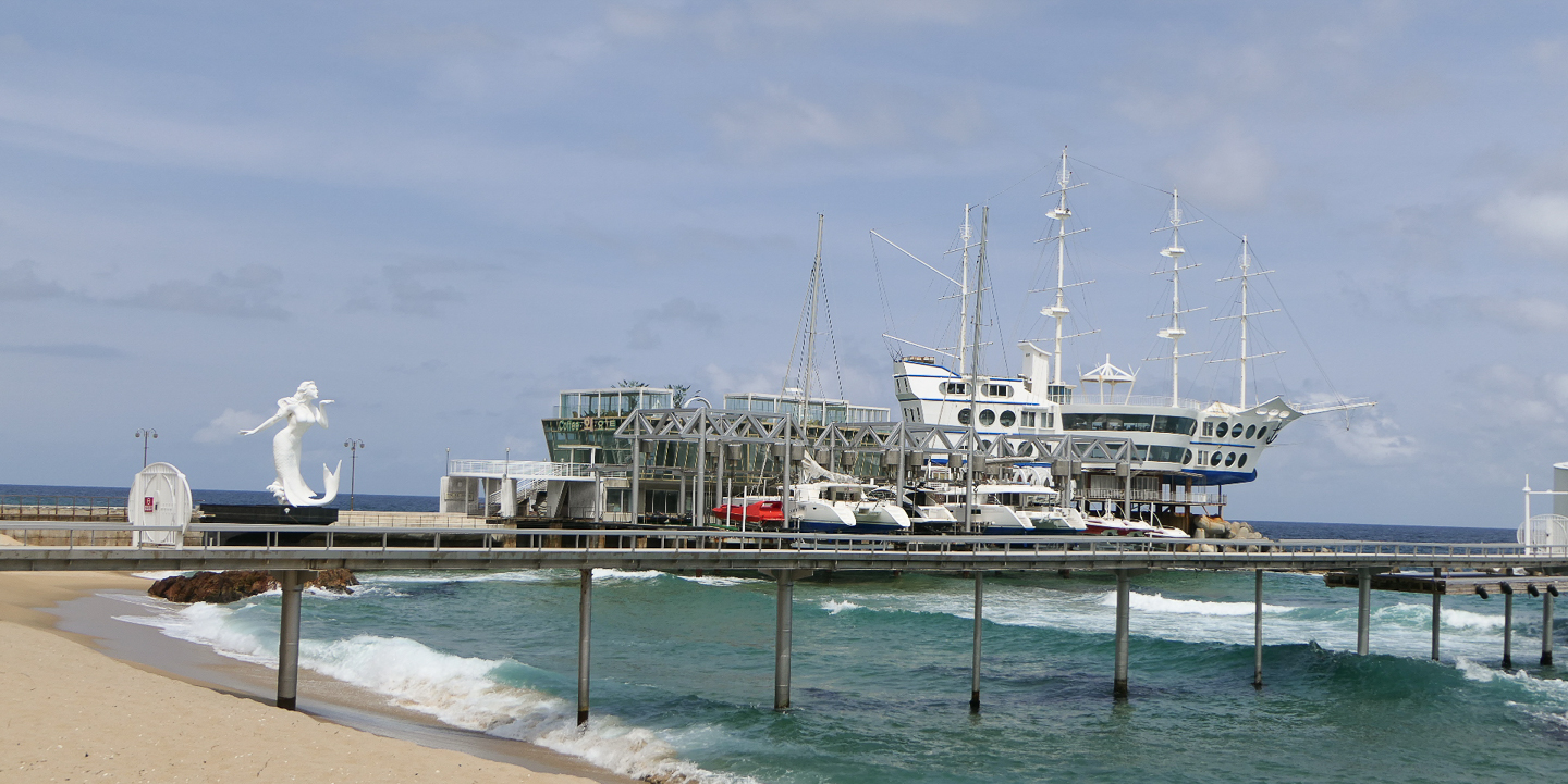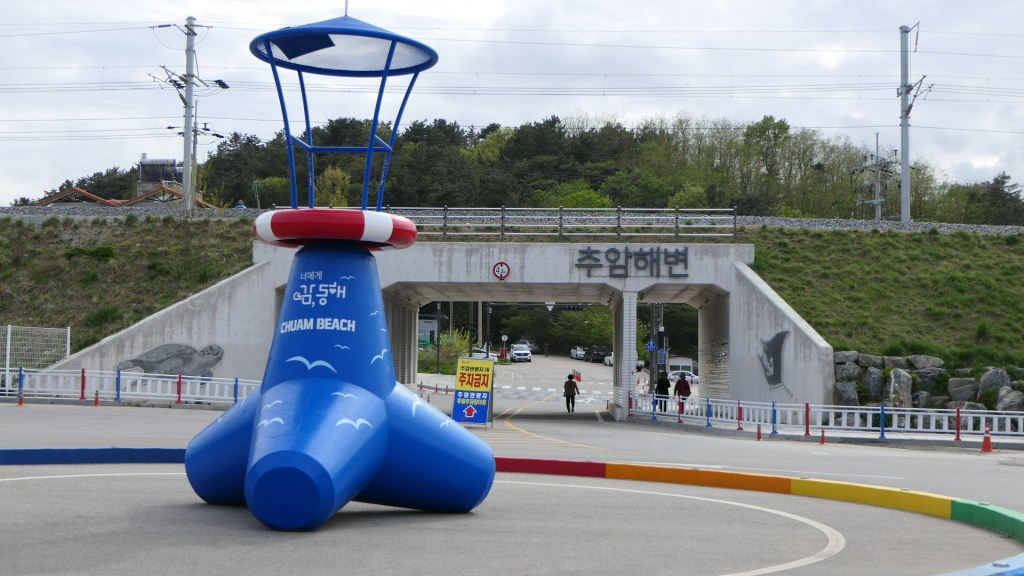 강원도 동해시에 있는 추암해변은 정동진과 더불어 일출명소로 꼽히고 있다. 또한 남한산성으로부터 정동방향에 위치해 있다고 한다. 여기에도 촛대바위가 있는데 애국가 동영상에 등장하는 바로 그 촛대바위이다. 2019년에 개통한 길이 72 m의 출렁다리는 바다위에 있는 국내 유일한 해상 보행교라 한다. 주차장에서 시작해서 능파대, 추암, 추암 촛대바위, 출렁다리를 건너면 조각공원으로 산책로가 이어지며 주차장으로 돌아오게 된다. 능파대는 인근 바다와 하천에서 파도에 의해 운반된 모래가 쌓여 육지와 연결된 부분에 암석기둥들이 모여 있는 지역을 뜻한다.