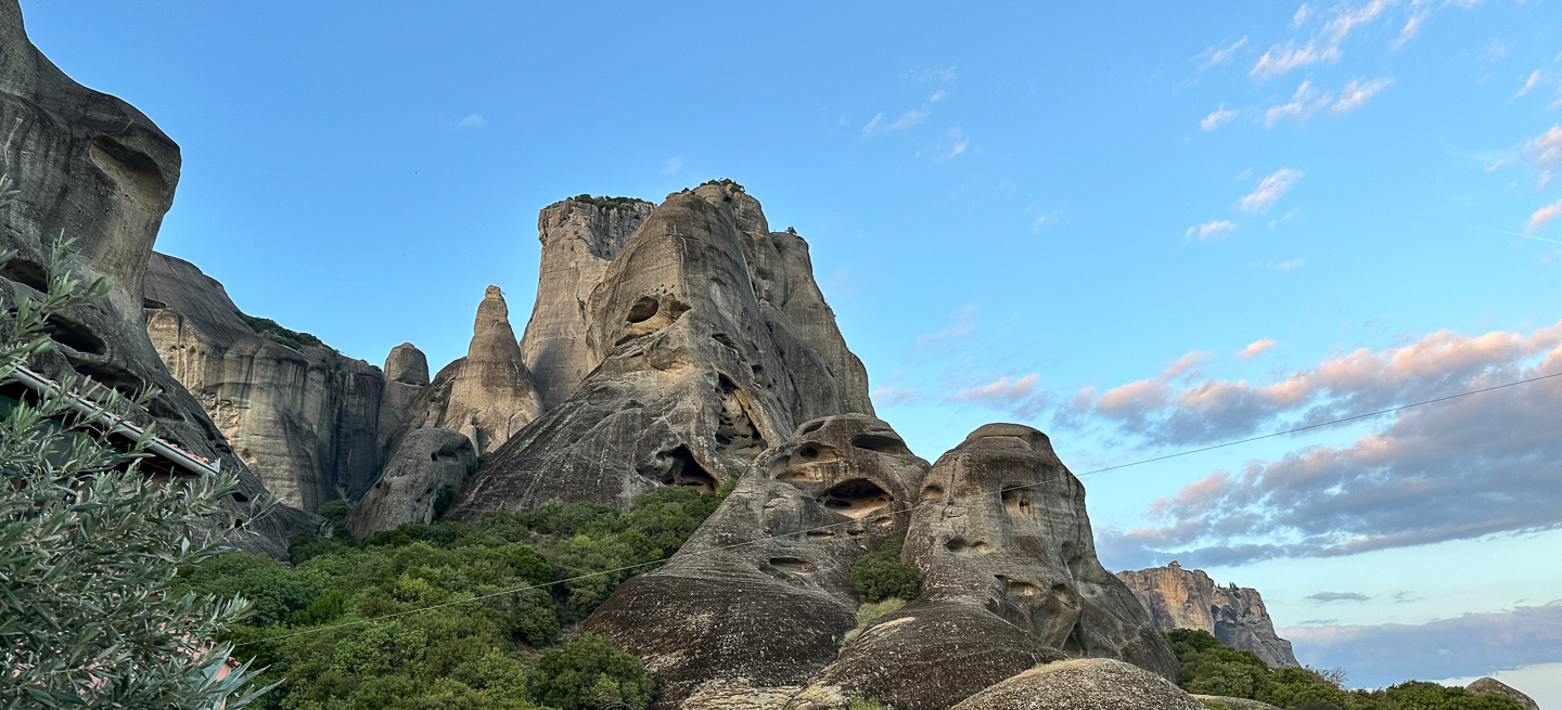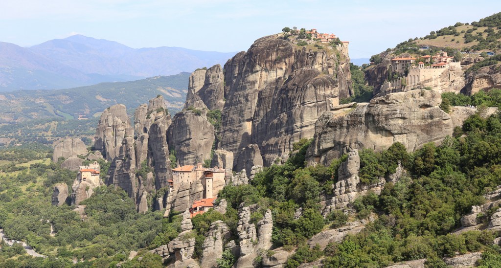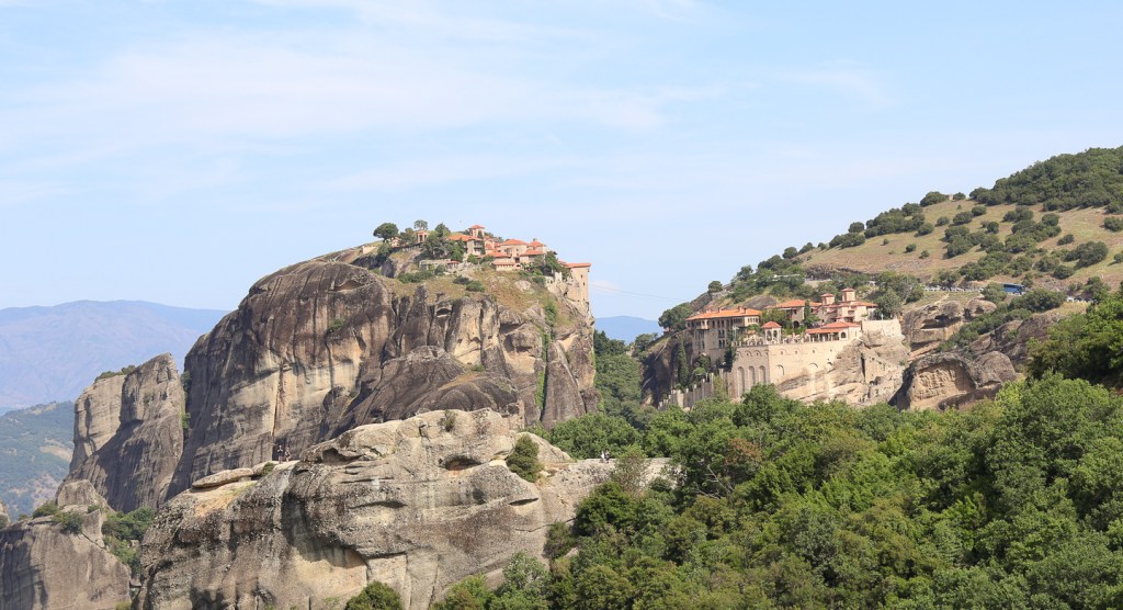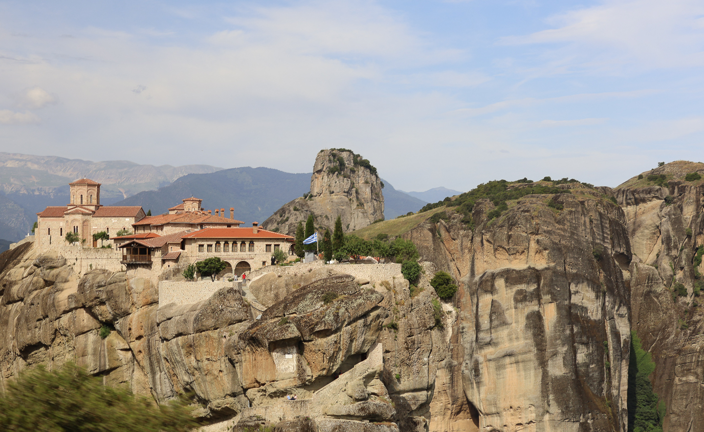 기록에 의하면 9세기경부터 은둔 수도승들이 이 지역으로 이주하여 바위기둥 꼭대기나 절벽에 있는 굴에서 지내기 시작하였는데 속세를 피하기에는 최적의 장소였다. 14세기에 아토스 산지의 수도원으로부터 수도승들이 이주하여 Broad Rock이라는 바위기둥 꼭대기에 수도원 ‘The Great Meteoron Monastery’을 세웠다. 이 수도원으로 올라가는 길은 필요시 위에서 걷어 올릴 수 있는 사다리 뿐이었다. 당시 그리스 북부 지역은 비잔틴 제국의 지배하에 있었지만 터키의 침략이 빈번하였으며 이에 대한 자구책으로 바위기둥 꼭대기의 수도원은 최적의 안전한 곳이었다. 이런 이유들로 24개의 수도원이 지어졌으며 The Great Meteoron Monastery는 메테오라에서 가장 오래되었고 가장 큰 수도원이 되었다. 17세기까지 이 수도원들로 올라가는 길은 여러 개로 연결된 사다리, 밧줄 및 그물 뿐이었다. 1920년대에 비로소 바위를 파서 계단을 만들었고 다리도 놓았다. 현재 남아있는 6개의 수도원은 하이킹을 마다하지 않는 사람들에게 공개되어 있는데 개방 날짜와 시간이 조금씩 다르니 이 website를 참조하면 도움이 되겠다.