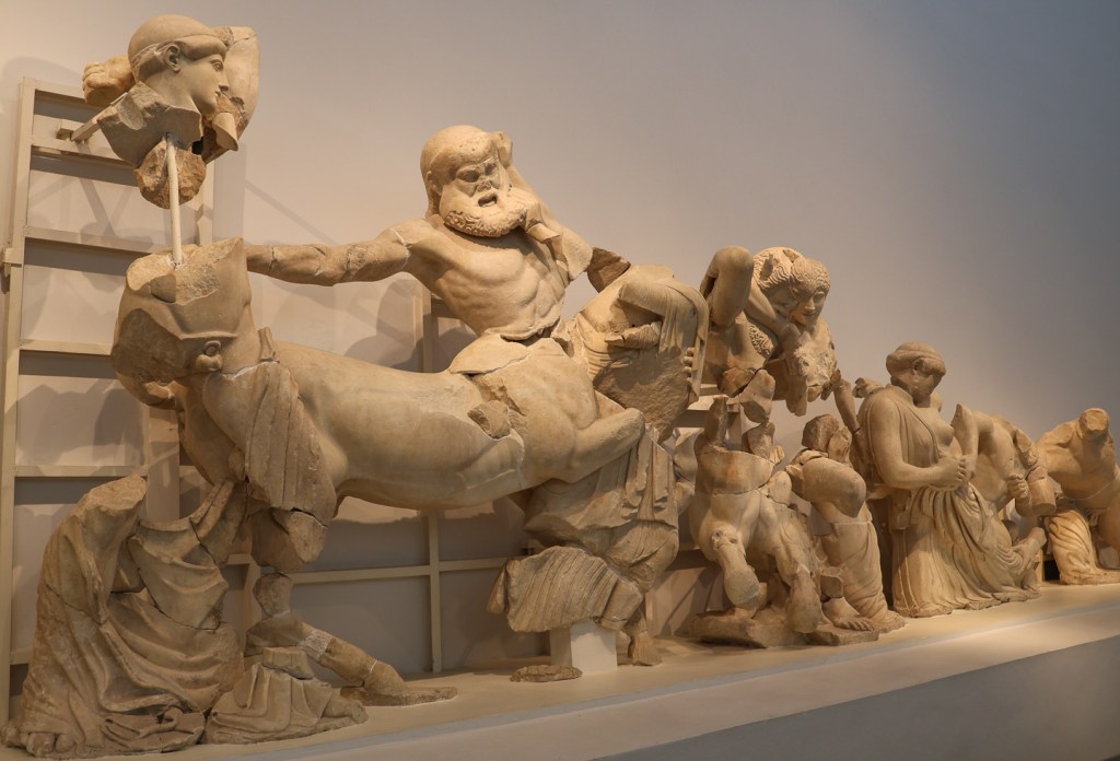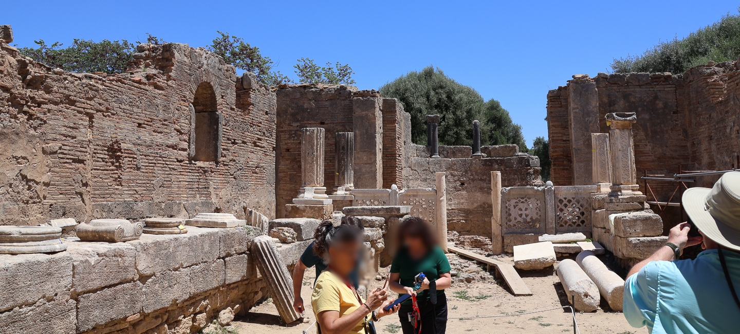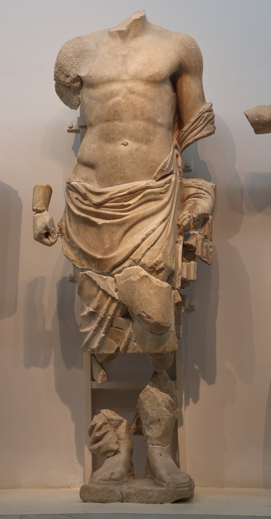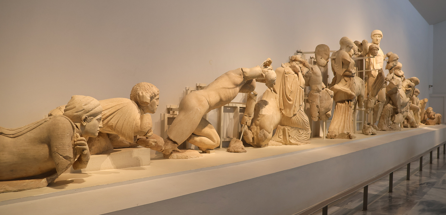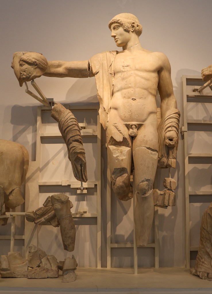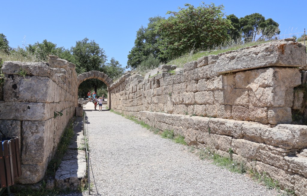 (1) Northwest Propylon, (2) Prytaneion, (3) Philippeion, (4) Temple of Hera, (5) Pelopion, (6) Nymphaeum of Herodes Atticus, (7) Metroon, (8) Treasuries, (9) Crypt – arched way to the stadium, (10) Stadium, (11) Echo Stoa, (12) Building of Ptolemy II and Arsinoe II, (13) Hestia Stoa, (14) Hellenistic building, (15) Temple of Zeus, (16) Altar of Zeus, (17) Ex-voto of Achaeans, (18) Ex-voto of Mikythos, (19) Nike of Paeonius, (20) Gymnasion, (21) Palaestra, (22) Theokoleon, (23) Heroon, (24) Pheidias’ Workshop and Paleochristian Basilica, (25) Baths of Kladeos, (26) Greek Baths, (27) (28) Hostels, (29) Leonidaion, (30) South Baths, (31) Bouleuterion, (32) South Stoa, (33) Villa of Nero, I – XII 보물창고들