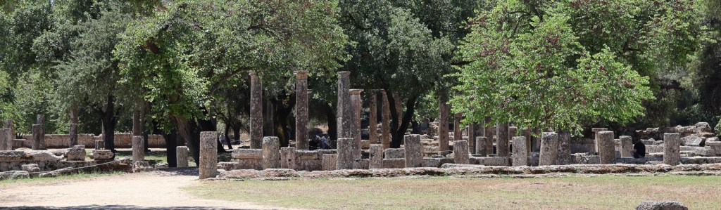 2세기 당시 그리스 여행가 파우사니이스(Pausanias)의 기록에 의하면 올림피아에는, 제우스 신전을 중심으로, 여러 신들을 위한 70여개의 신전이 있었고, 그에 따른 제단, 동상, 보물창고 및 부속시설이 있었다고 되어 있다. 여러 건축물들은 관료들이 올림픽 경기 우승자들을 접견했던 건물, 왕의 업적을 기리기 위한 건물, 공연장 또는 경기장과 스타디움, 관료들이 회의를 위해서 모이던 건물, 체육관, 조각가와 미술가들을 위한 건물, 합숙소, 목욕탕 등등으로 구분되어 있었다. 그 흔적들을 유적지에서 볼 수 있다.