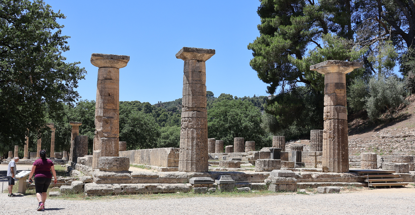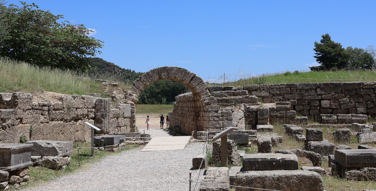 올림피아는 그리스 남쪽의 펠로폰네스(Peloponnese) 반도에 있는 도시이다. ‘반도’하면 흔히 조붓하고 길쭉한 지형을 연상하는데 펠로폰네스 반도는 모양이 넙적하여 섬을 연상하게 된다. 이 지역은 아주 좁은 고린도 지협(Isthmus of Corinth)을 통해 그리스 본토와 연결되어 있었다. 그 지협을 허물어 내고 폭 80 ft (24 m), 길이 3.9 mile(6.3 Km)인 고린도 운하가 1893년에 개통되었다. 그래서 펠로폰네스는 실제로 섬이 되었지만 아직도 반도로 불리고 있다. 고린도 운하는 고린도 만(Gulf of Corinth)과 사로닉 만(Saronic Gulf)의 연결을 430 mile(700 Km) 단축시켰지만 폭이 너무 좁아 큰 선박의 통행에는 제약이 많아 관광선들이 주로 이용하는 형편이다. 고린도 운하는 양옆에 있는 약 300 ft(90 m)에 달하는 직벽으로 유명한데 그로인한 산사태 또한 골치거리이기도 하다.