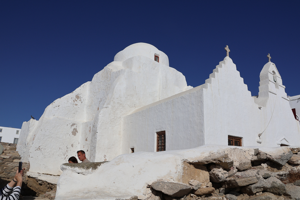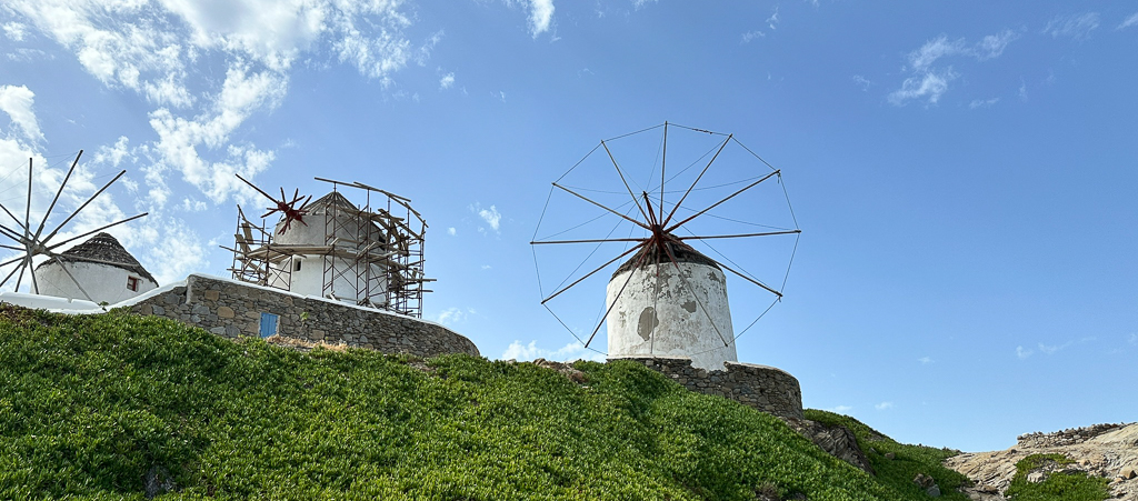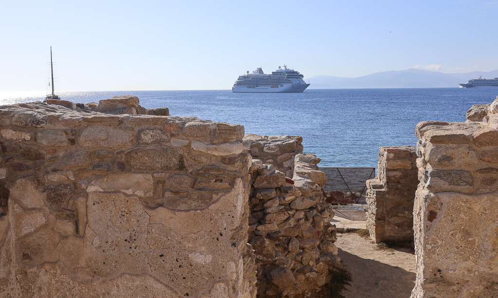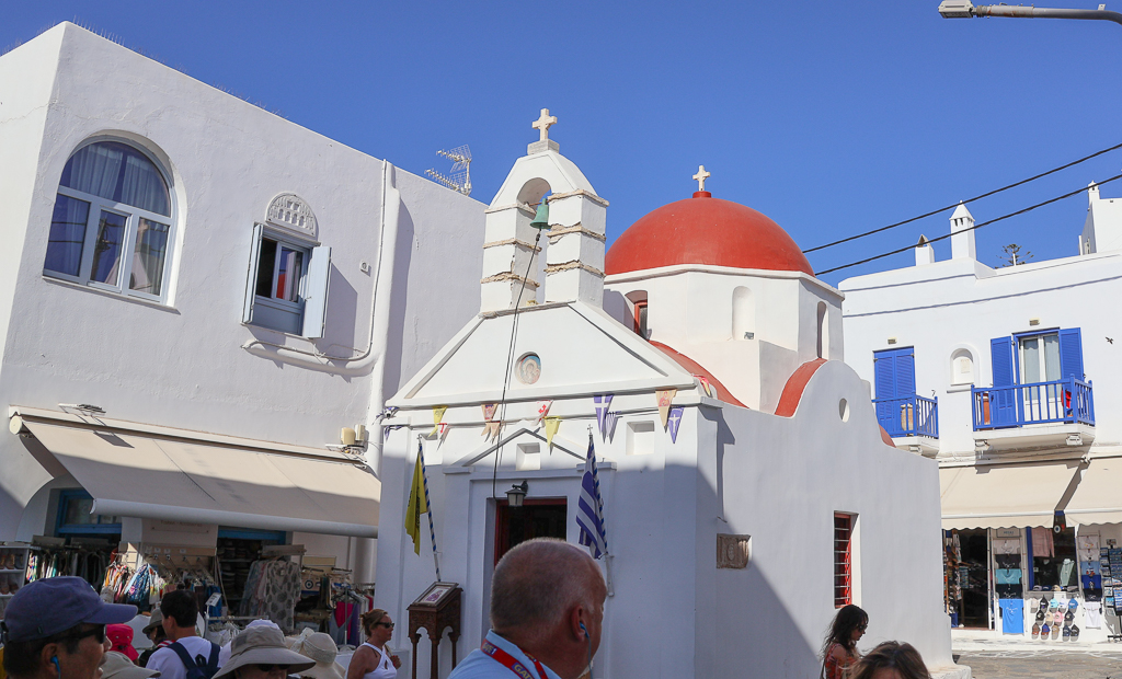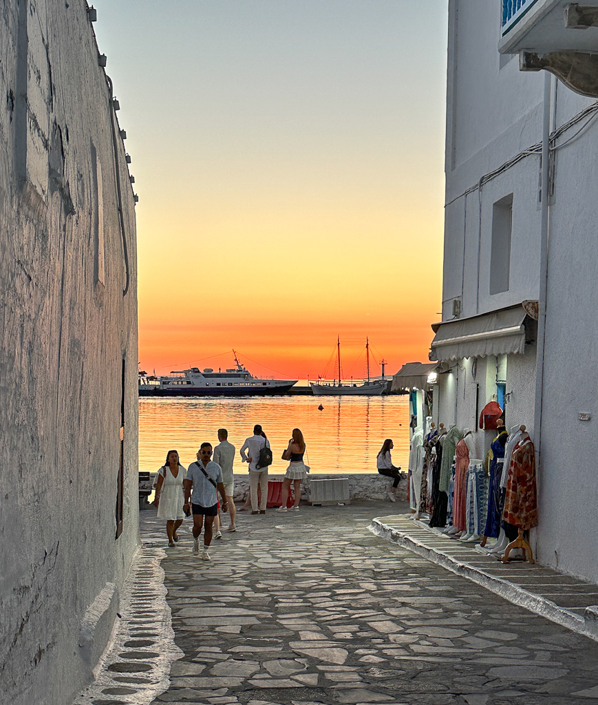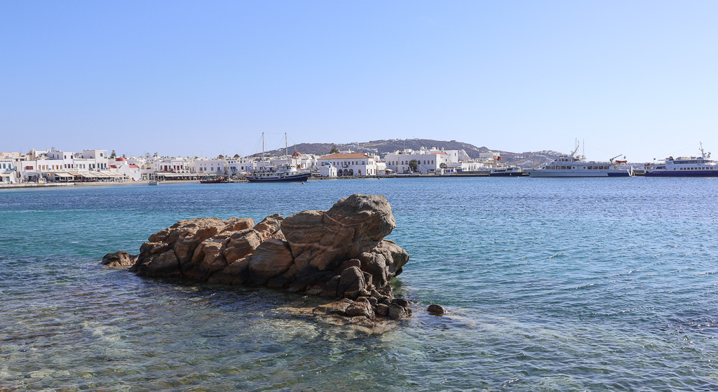 미코노스에는 신, 구 2개의 항구가 있다. 오래전부터 있어온 구 항구는 유람선을 비롯한 소형선박이 사용하고 신 항구는 크루즈 배와 페리들이 사용한다. 구 항구가 도심에서 가까운데 신 항구로부터 무료로 셔틀버스가 다니기에 구경하기에 큰 불편은 없다.