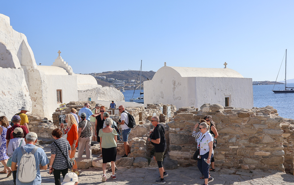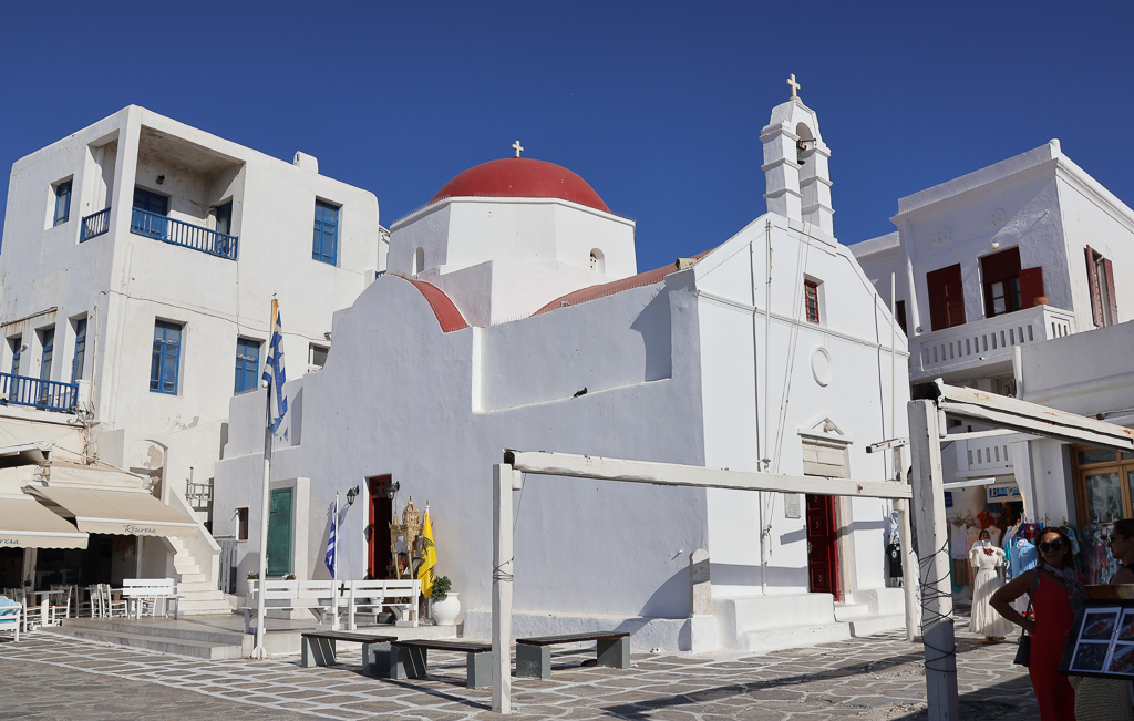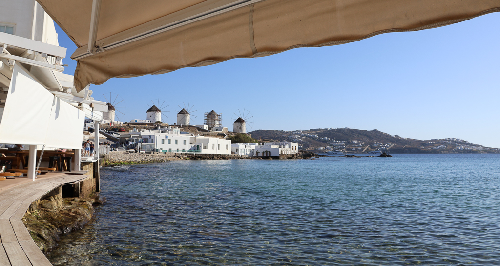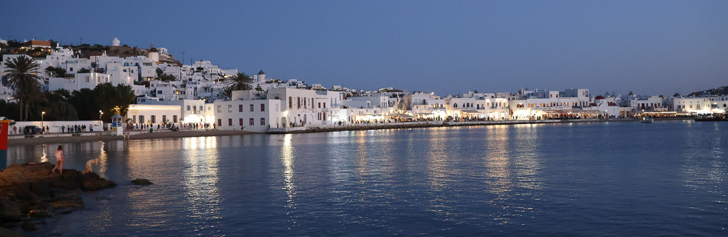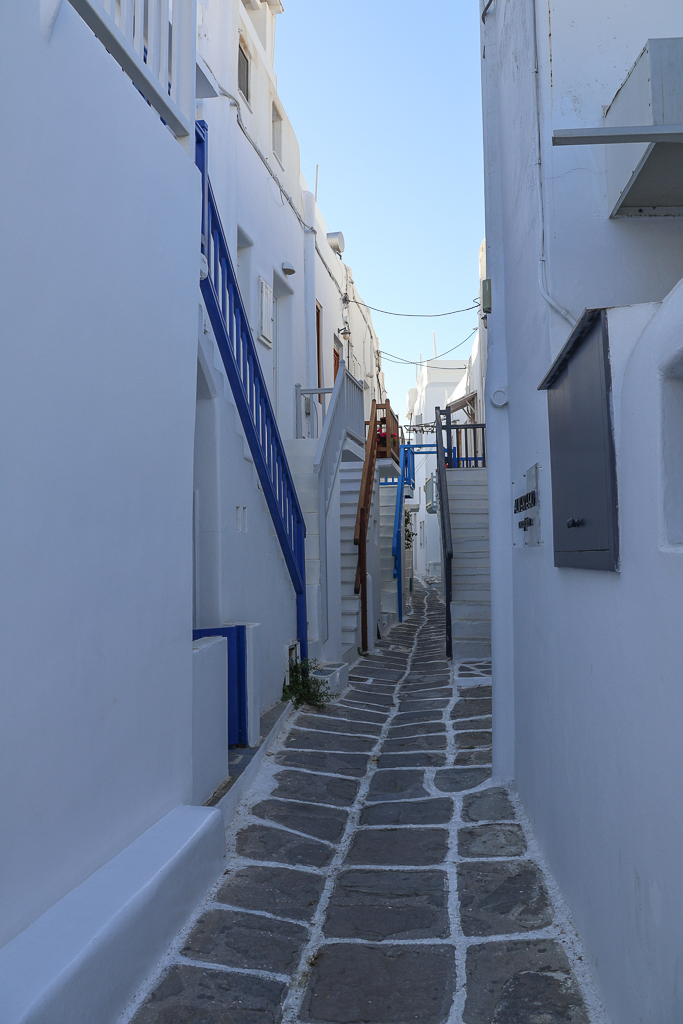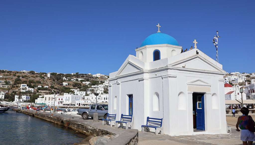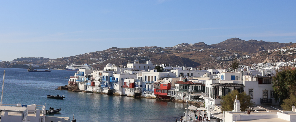 미코노스는 아테네에서 남동쪽으로 약 93 mi (150 Km) 떨어져 있는 섬이며 그 섬에서 가장 큰 도시의 이름이기도 하다. 도시 미코노스를 현지인들은 초라(Chora, 또는 호라 Hora)리고 부르기도 한다. 에게해에 형성된 시클르디즈(Cyclades, 그리스어 Κυκλάδες의 발음은 ‘키클라데스’에 가깝다) 제도에 속하는 섬으로 면적은 33 mi2 (85.5 Km2)로 한국의 완도(90.1 Km2)보다 조금 작다. 그리스 신화에 의하면 아폴로의 아들(또는 손자) 미코노스가 이 섬을 최초로 통치하여 그의 이름을 따서 섬 이름을 붙였다 한다. 또한 미코노스에 있는 바위들은 제우스와 거인들 간의 싸움(Gigantomachy)에서 제우스가 죽인 거인들이 석화된 것이라고 한다. 미코노스에는 기원전 11세기경부터 사람이 살았던 것으로 알려져 있다. 그러나 섬 전체가 화강암으로 이루어져 있고 빗물을 제외하고는 민물의 근원이 전혀 없어 사람이 살기에는 척박한 땅이다. 그럼에도 불구하고 에게해와 지중해를 항해하는 배들이 폭풍을 피하거나 쉬어 가기에 적당한 곳으로 로마, 비잔틴, 베니스, 오토만 등의 영향력과 지배를 받아왔다. 19세기초 오토만 제국에 항거한 그리스 혁명 당시 귀부인 Manto Mavrogenous가 미코노스를 근거지로 사재를 털어 독립군을 지원하였고 그리스가 독립을 쟁취하는데 큰 기여를 하였다. 미코노스 도심에 그의 이름을 딴 광장이 있고 그 곳에 그의 흉상이 있다. 1960년대부터 미코노스는 관광지로 부상하기 시작하였고 이제는 그리스에서 가장 비싼 관광도시가 되었다. 민물공급을 위하여 담수시설을 세웠지만 이번에 써보니 수질이 좋지 않아 양치질 후에도 찝찔한 맛이 입안에 남아 식수로는 전혀 적합하지 않다.