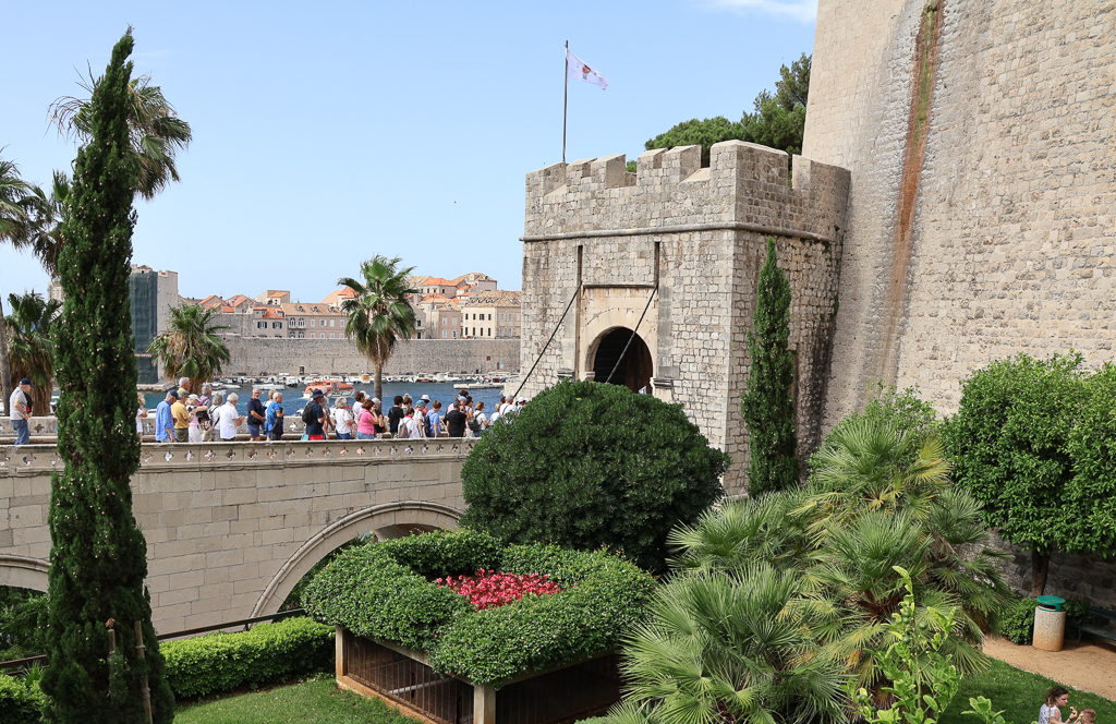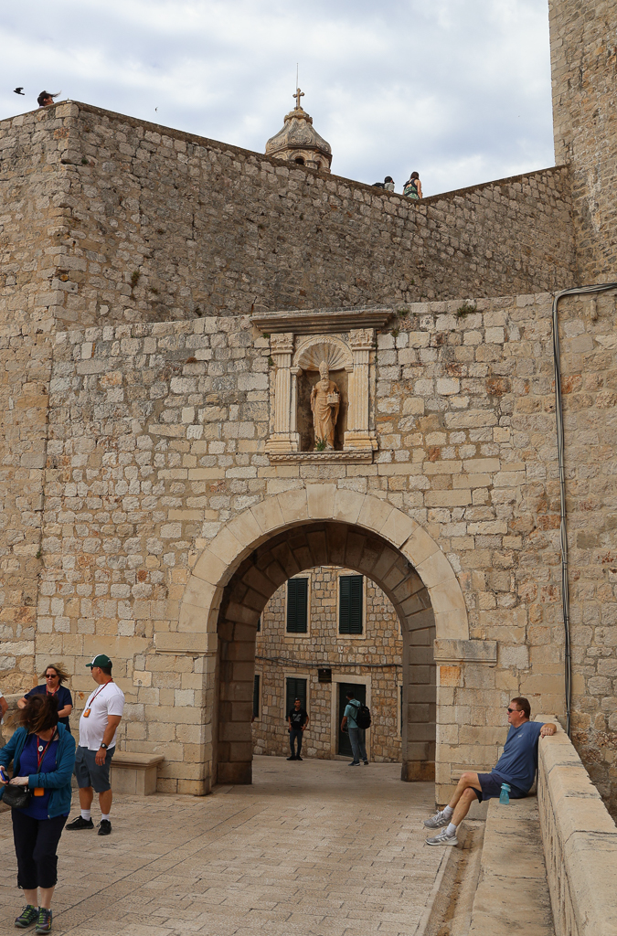 서쪽 성문 Pile Gate로 들어가는 길 – 직진이 아니고 한번 돌아서 들어가게 되어 있다서쪽 성문 Pile GatePile Gate 로 들어가면 있는 광장과 중심거리Velika Onofrijeva Fontana (Large Onofrio’s Fountain) – 15세기에 지은 성밖으로부터 들어오는 수로의 종착점 중 하나로 16면의 물탱크이다. 각 면에는 사람의 얼굴이 조각되어 있고 입에서 물이 흐르도록 되어 있다.두브로브니크 구시가 골목길Orthodox Church of the Holy Annunciation – 19세기에 지어진 세르비아(Serbia) 정교회 박물관을 겸한 교회Ivan Gunduliċ 동상과 배경에 보이는 The Cathedral of the Assumption of the Virgin Mary 돔 – Gunduliċ는 두브로브니크 출신 시인으로 종교적으로 정치적으로 존경받는 인물이었다Jesuit Stairs – Jesuit Church of St. Ignatius of Loyola로 올라가는 바로크 풍의 계단으로 로마의 Spanish Steps와 흡사하다. Games of Thrones 촬영지로도 유명하다.Gate of Ponte – 두브로브니크 구 항구로 나가는 성문밖에서 본 Gate of PonteThe Cathedral of the Assumption of the Virgin MaryRector’s Palace – 원래 두브로브니크 방어시설 화약고로 지어졌는데 화재로 소실되었다. 재건축할 때 두브로브니크가 라구사 공화국 행정수반의 위치에 추대되며 바로크 풍의 궁전으로 지어졌다.Rector’s Palace 기둥 위의 조각Marin Držič 동상 – 두브로브니크의 셰익스피어라는 애칭으로 불리는 작가. 16세기 당시 서민들의 생활상을 담은 희극으로 유명하다. 코를 문지르고 무릎에 앉아서 사진을 찍으면 행운이 온다는 전설이 있다. 동상을 자세히 보면 알 수 없는 이유로 목에 총알자국 같은 구멍이 있다.두브로브니크 시계탑Luza 광장에서 본 중심거리 Stradun – 왼쪽에 보수공사 중인 Orlando Column, 멀리 Franciscan Church and Monastery 종탑이 보인다.두브로브니크 구 항구 전경 – 오른쪽이 Luka TowerPloče Gate로 가는 길목에 있는 Revelin 요새의 일부Ploče Gate로 가는 관문을 지나 다리위에서 본 두브로브니크 구 항구 전경 – 오른쪽에 Luka Tower와 St. John 요새가 보인다Ploče Gate로 가는 길과 관문Ploče Gate로 가는 길 관문 아치에 새겨진 두브로브니크 수호성인 BlaiseHarbor Viewpoint 구석에 있는 대포 – 여기는 Revelin 요새의 항구 쪽 일부Ploče GatePloče Gate 밖에서 본 도개교(跳開橋, drawbridge)Ploče Gate 밖 길에서 본 성문과 Revelin 요새Ploče Gate 밖 길에서 본 중간 관문과 다리두브로브니크 북쪽 성 바깥 모습두브로브니크 전망대에서 본 성곽과 그 안의 구시가지두브로브니크 전망대에서 본 성 안과 바깥두브로브니크 전망대에 있는 십자가두브로브니크 전망대에서 본 전경두브로브니크 구시가지 바다 쪽 성벽 (Source: Wikimedia.org, Author: JSB)