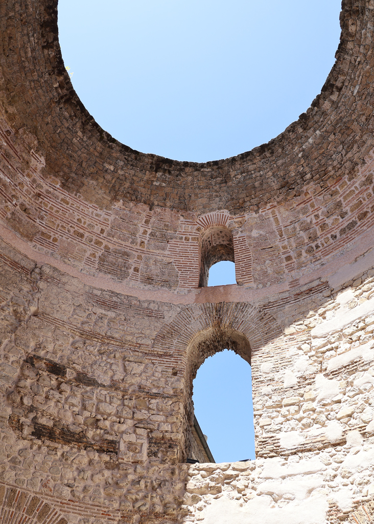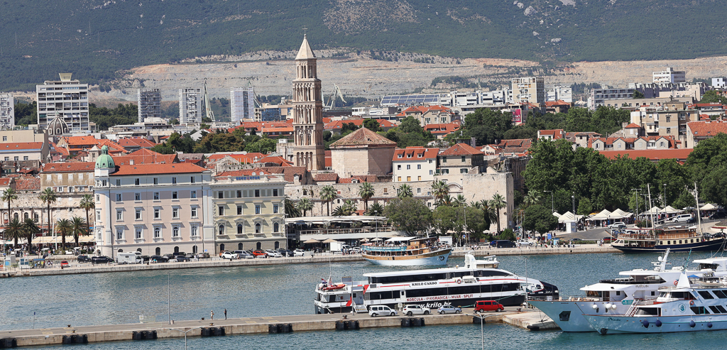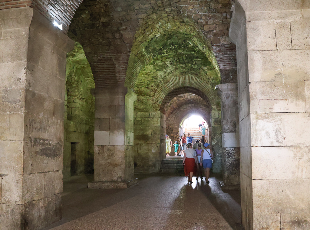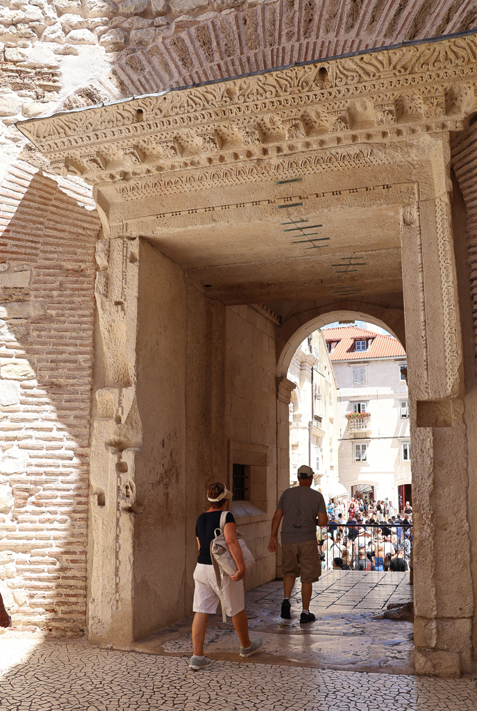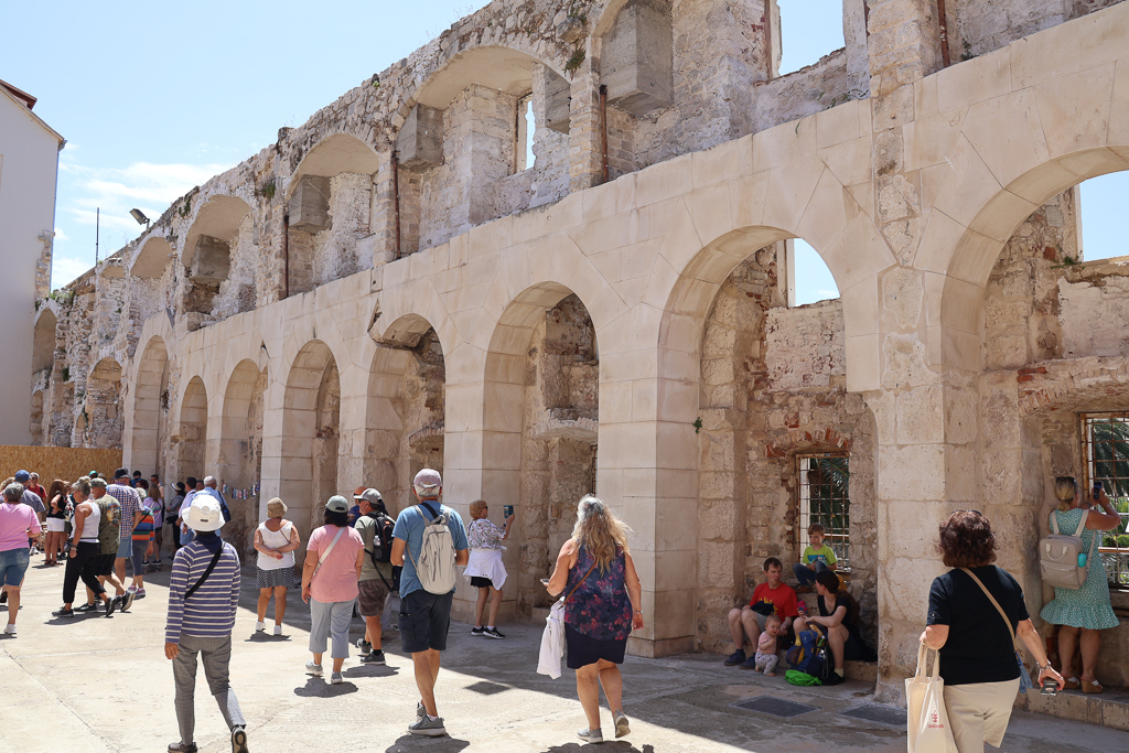 스플맅 항구는 Diocletian’s Palace를 가까이하고 식당과 가게들이 많아 상당히 북적거린다. 스플맅에 크루즈로 오면 따로 교통편이 필요 없으니 100% 이곳을 들른다고 보아도 무방하다. Diocletian’s Palace는 3세기 당시 로마의 황제 디오클레티아누스(Diocletianus)를 위해서 4세기초에 완공된 궁전이다. 디오클레티아누스는 로마의 속국이었던 달마티아에서 태어나 로마군 장교로 승진하며 황제까지 된 인물이다. 그는 동료 장군인 Maximianus(막시미아누스)와 동, 서로마 제국으로 분권 통치를 하여 위기에 빠진 로마제국의 혼란을 수습하고 황제 중심의 통치체제를 회복하였다. Diocletian’s Palace는 궁전과 병력이 주둔할 수 있는 요새를 복합적으로 지은 4각형 형태의 건축물이다 – 전형적인 요새와 같이 각 면에 성문이 있고 각 모퉁이에 탑이 있다. 동문과 서문을 잇는 중앙도로는 성채를 남북으로 나누고 있다. 남쪽은 황제의 처소로 종교적 건축물이 있고 화려하며 북쪽은 군인과 하인의 거주처로 실용적으로 설계되었다.
